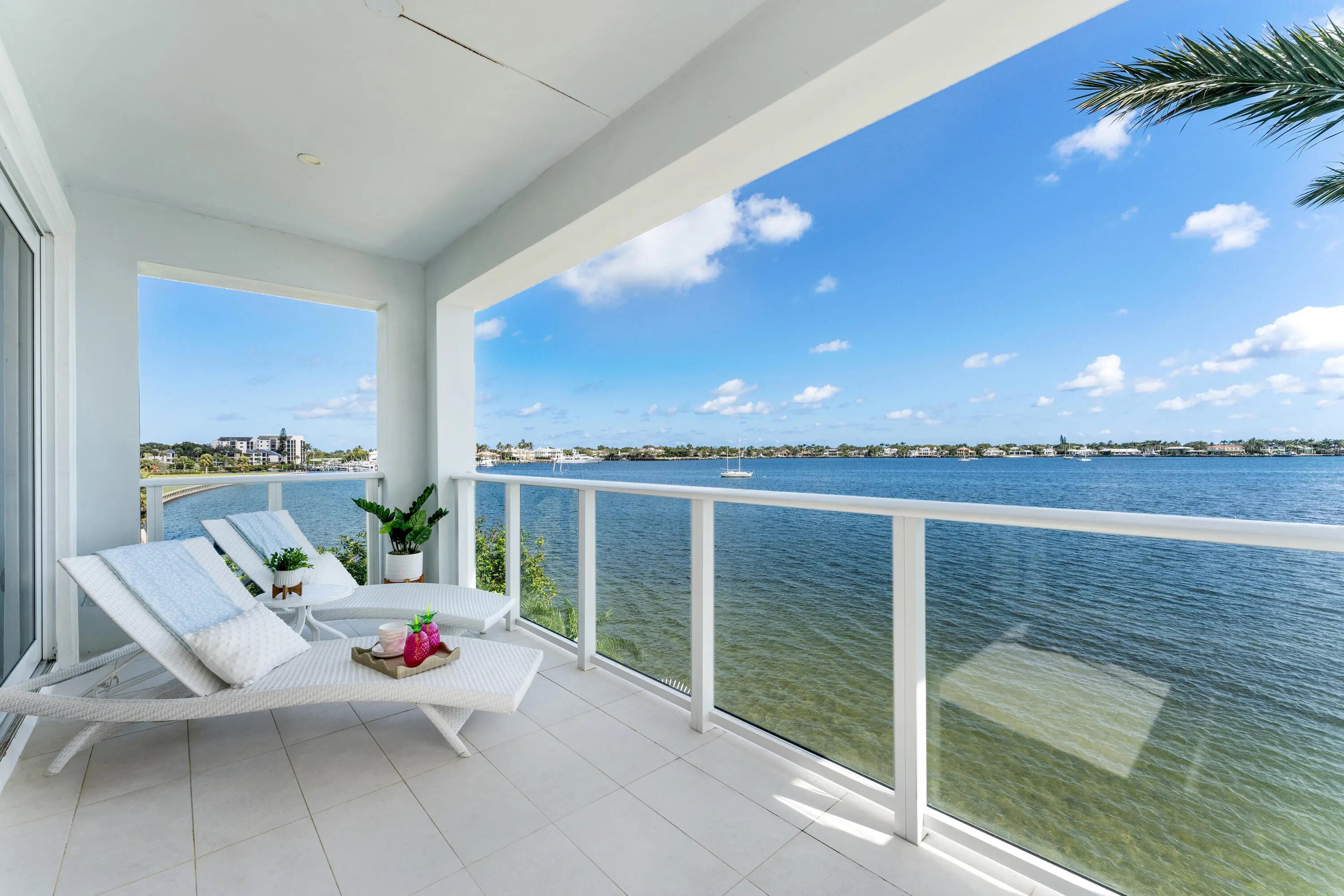 Available for rent w/ quick move-in! BRAND NEW outdoor kitchen. This waterfront corner villa offers VIEWS, PRIVACY and AMENITIES that will always remain unmatched. Stunning vista of Lake Worth Lagoon and steps away from resort-style and lap pools, beach cabanas, expansive fitness centers, steam, sauna, PICKLEBALL, PRIVATE MARINA, and more. 3 spacious bedrooms, 3.5 baths, and a 2 car garage harmoniously blend luxury and convenience. Corner location guarantees tremendous privacy and unobstructed views. Pet-friendly community located minutes from the area's best restaurants, GOLF and shopping. Easy access to I-95 and FL Trnpk, PBIA, Palm Beach, West Palm and Jupiter. TRULY SPECTACULAR VIEWS from upstairs and down.