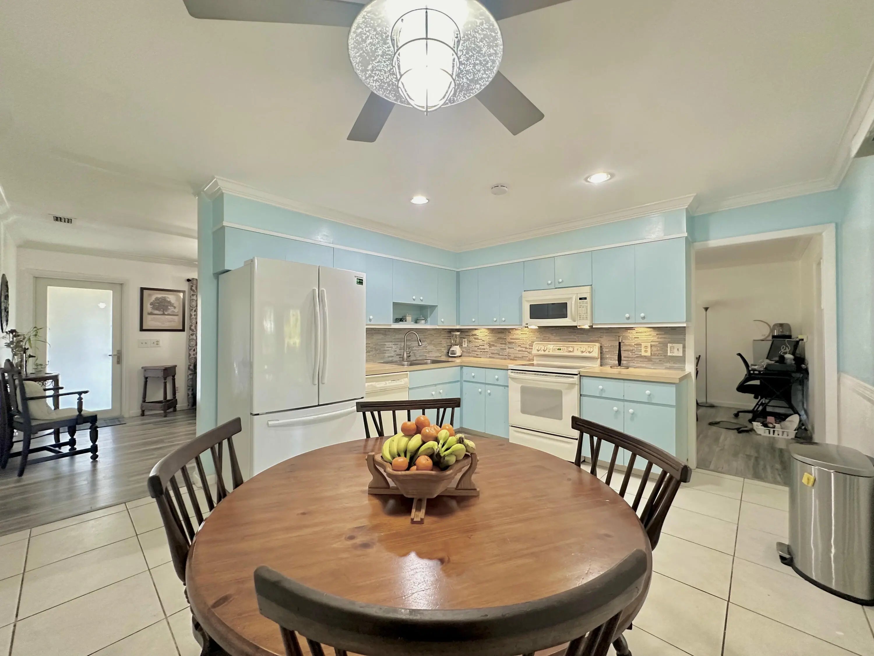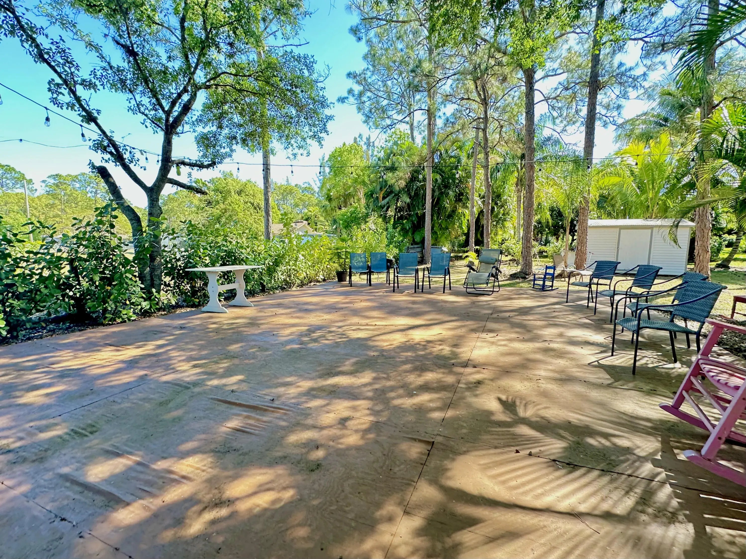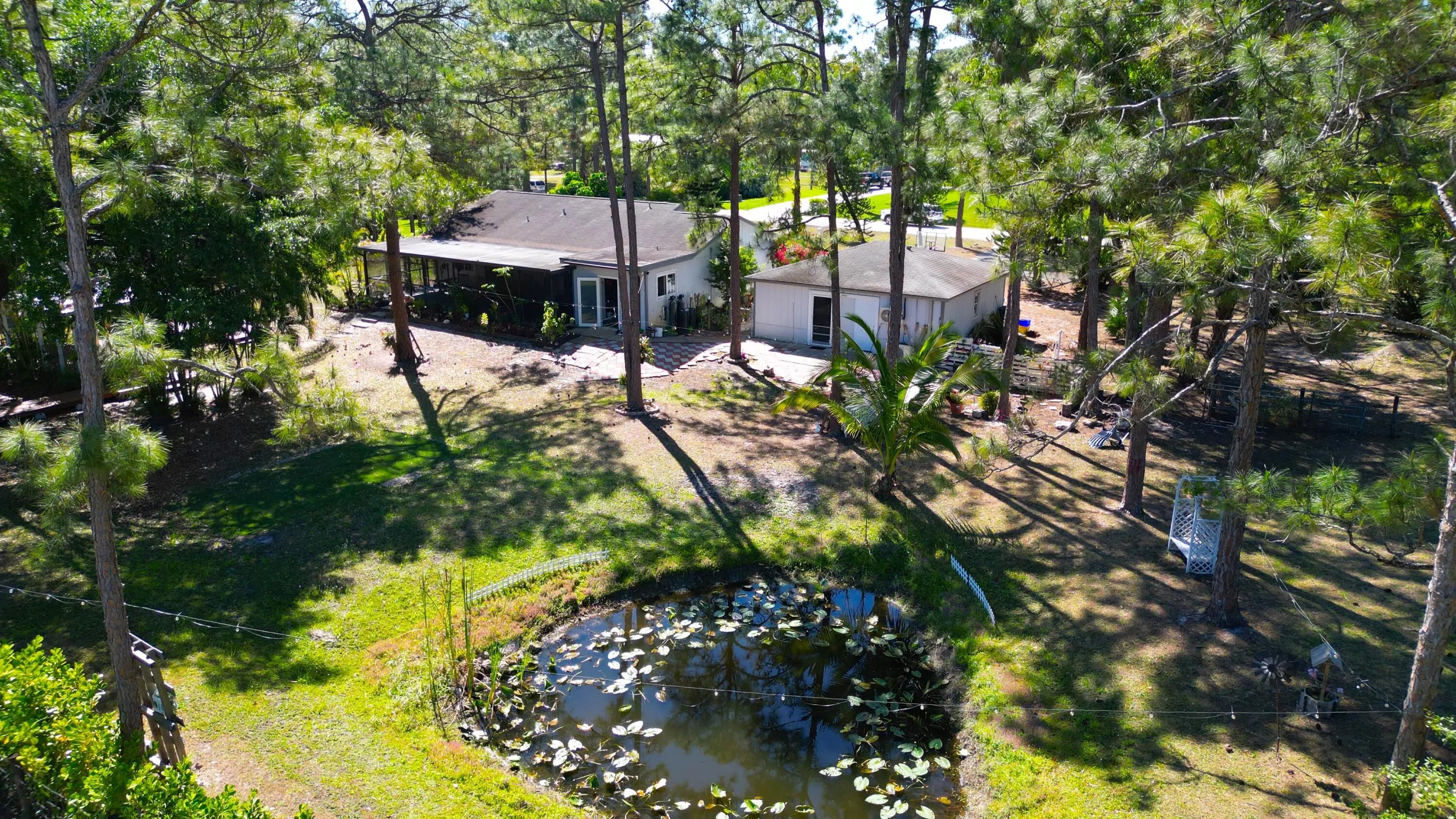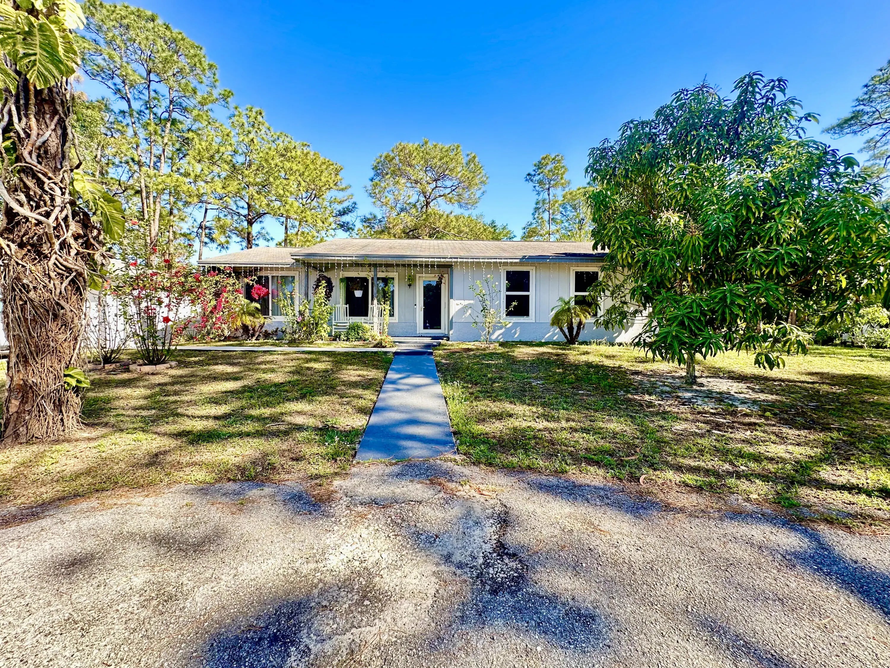 Escape to your private oasis on 1.32 acres at the end of a peaceful road! NO HOA! This stunning 3-bedroom, 2-bath home also features a separate 1-bedroom, 1-bath in-law suite/efficiency in a converted garage—perfect for guests or rental income. Impact windows throughout provide security and energy efficiency, while the charming country-style front porch welcomes you home. Step out back to a massive screened-in porch with a wood deck, ideal for entertaining or relaxing while overlooking the fully fenced backyard. Inside, the home boasts a beautifully updated eat-in kitchen with newer stainless steel appliances, a spacious formal living room, and a split-bedroom floor plan for added privacy. The circular driveway offers ample parking, and additional features include gutters, an alarm system, and modern upgrades throughout. Located near top-rated schools, parks, and just minutes from shopping, dining, and major highways, this home offers the best of both worldsseclusion and convenience. Don't miss this rare opportunity for acreage living in West Palm Beach!