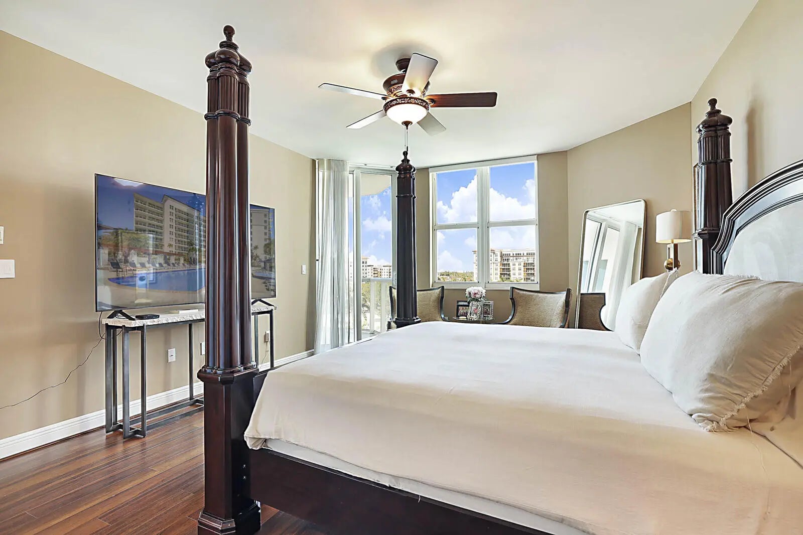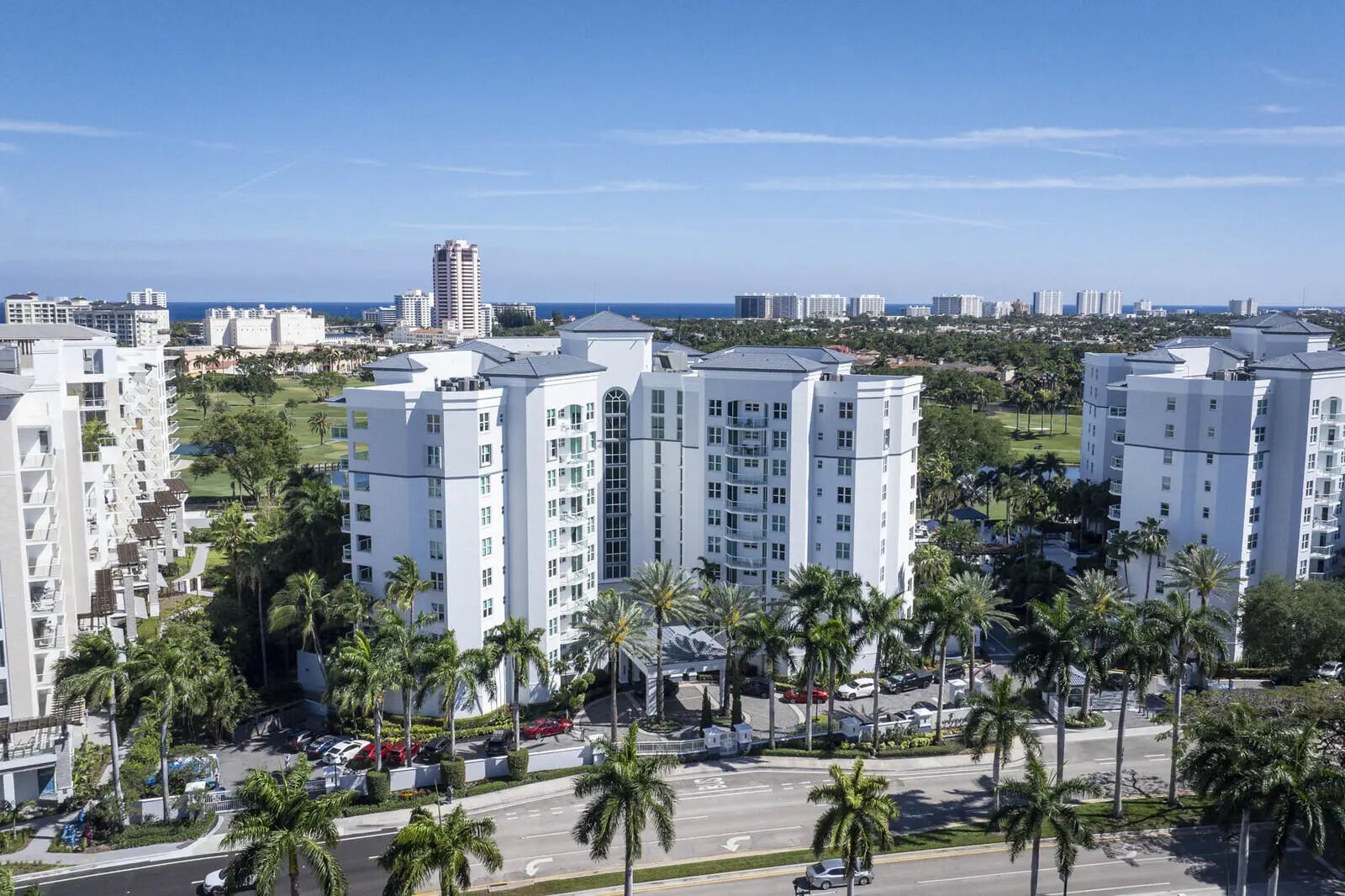 Live in the heart of Downtown Boca Raton in the prestigious Townsend Place, where luxury, location, and lifestyle come together! This spacious SE-facing 6th-floor corner unit offers breathtaking golf course, city, and sunset views. Boasting 3 bedrooms, 3 bathrooms, and 2,254 sq. ft. under air (2,702 total sq. ft.), this exceptional residence features a wraparound patio overlooking the Boca Raton Resort & Club golf course, resort-style pool, and vibrant cityscape. The master bedroom and one guest suite share a private balcony, offering stunning sunset views. Designed with sophistication and comfort in mind, this home features 9-ft volume ceilings with floor-to-ceiling impact-resistant glass that flood the space with natural light while providing spectacular views. The upgraded kitchen boasts granite countertops, a stylish European tile backsplash, and KitchenAid appliances, with custom cabinetry featuring convenient pull-out shelves. The grand entrance hallway is enhanced with custom lighting, perfect for showcasing an art collection. The elegant master suite is a retreat of its own, complete with his-and-hers walk-in closets and a spa-like bath featuring dual vanities, a soaking tub, and a marble shower. The third bedroom offers versatility with large glass pocket doors, making it ideal as a guest room, office, or media space. A dedicated laundry room with a sink adds to the convenience. Townsend Place offers an unparalleled resort-style lifestyle with 24-hour security, gated entrance, concierge service, valet parking, and on-site management. Residents enjoy access to state-of-the-art fitness centers, sauna and steam rooms, two social lounges with card tables, a catering kitchen, and billiards. The magnificent saltwater pool features a sundeck with lounge chairs and a Jacuzzi, all overlooking the golf course. Additional amenities include secure covered parking and private storage lockers. The location is truly unbeatable, just steps from Mizner Park, Royal Palm Plaza, world-class dining, and luxury shopping. Boca Raton's beautiful beaches are within walking distance, and the property offers easy access to three airports, including Boca Raton Executive Airport. This is 5-star luxury living at its finest! Don't miss this rare opportunity. SELLER FINANCING AVAILABLE.