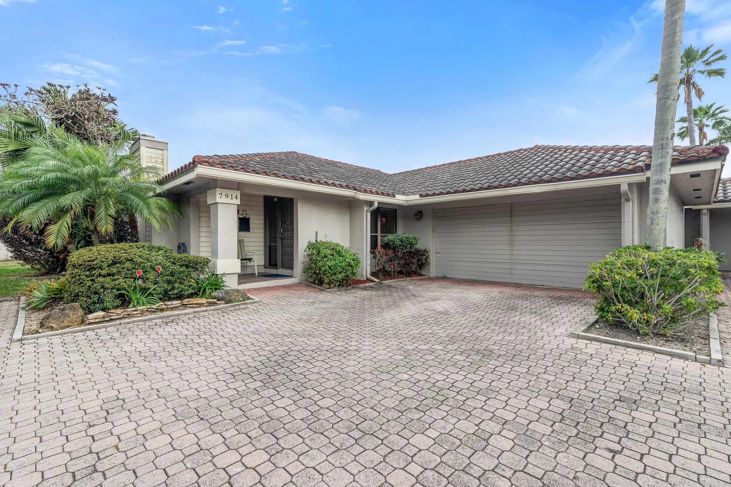 Palacios Del Mar - Rarely Available 3-Bedroom Home! Move-in ready and beautifully maintained, this spacious 3-bedroom residence offers stone countertops, a convenient kosher kitchen with 2 separate sinks, and an extended living area for added comfort. Enjoy one of the largest private pools in the community, perfect for relaxation and entertaining. Additional features include an enclosed garage and the peace of mind of a roof maintained by the association. Nestled in a secure, gated community, across the street from house of worship, this home is a rare find—don't miss out!