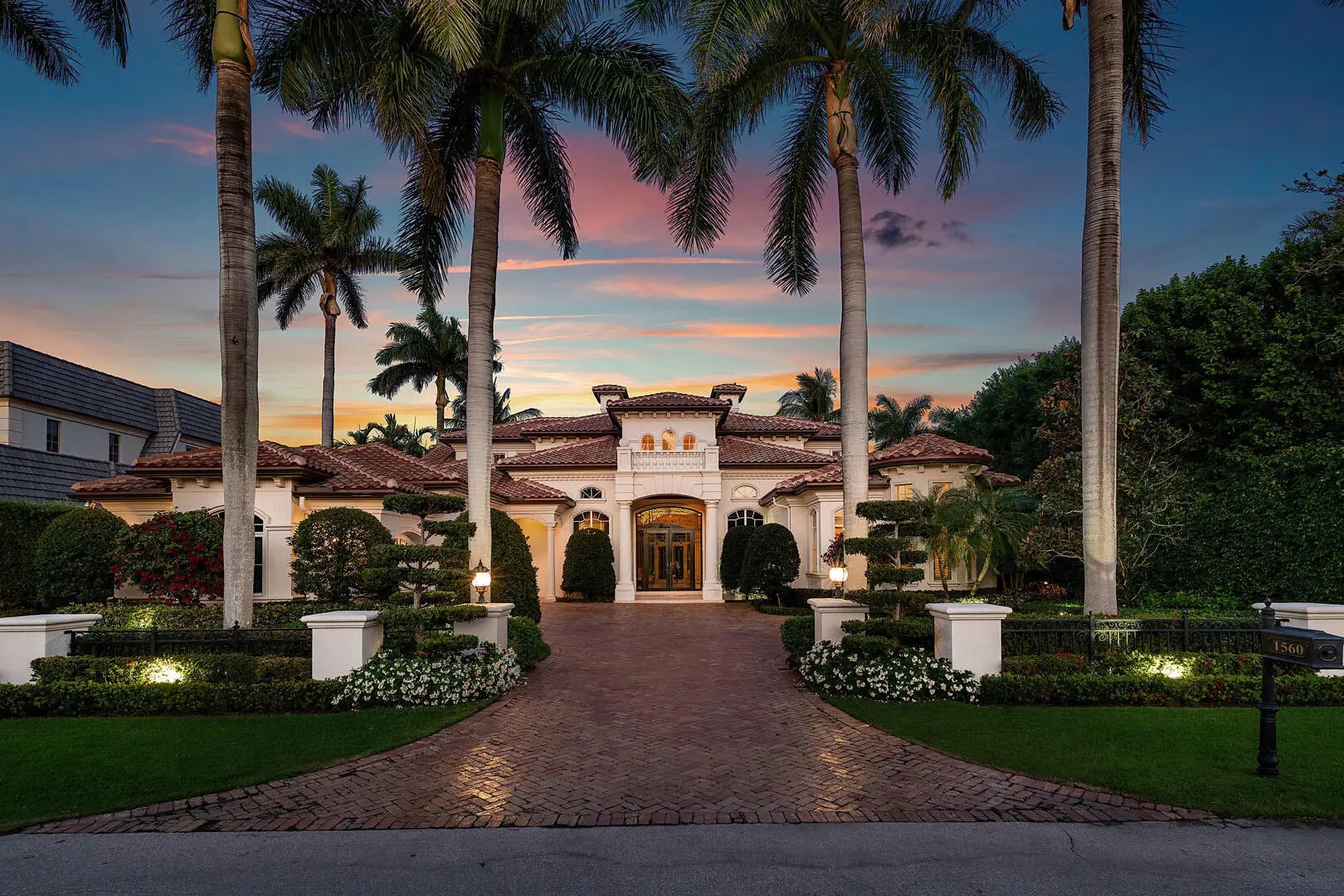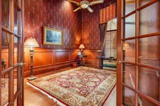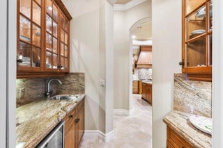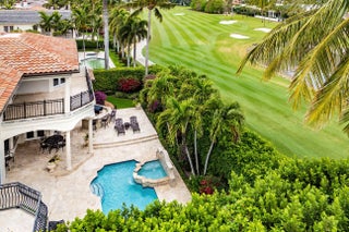 This exceptional residence boasts a coveted eastern exposure, bathing the interiors in morning sunlight while offering stunning views of the 15th fairway. Designed for both grand entertaining and private relaxation, the outdoor sanctuary features a custom-heated pool with a raised spa, a marble-clad deck, and a covered patio complete with a built-in grill for effortless al fresco dining wrapped in lush tropical landscaping. Inside, soaring ceilings with floor-to-ceiling windows create a dramatic ambiance in the formal living room, anchored by a striking statement gas fireplace. The formal dining room is complemented by a well-appointed butler's pantry and an expertly equipped wet bar, perfect for hosting with ease. A gourmet kitchen outfitted with a center island and premium appliances caters to culinary enthusiasts, while a richly appointed study with custom wood built-ins and trim offers a distinguished workspace. The first-floor primary suite is a serene retreat featuring a spa-inspired bath, His & Her walk-in closets, and a private exercise room. Thoughtful luxury extends throughout with natural gas, a whole-house generator, and impact glass windows and doors, ensuring comfort and peace of mind. EXCLUSIONS: DINING ROOM AND BREAKFAST ROOM CHANDELIERS. DRAPES IN FAMILY ROOM AND MASTER BEDROOM.