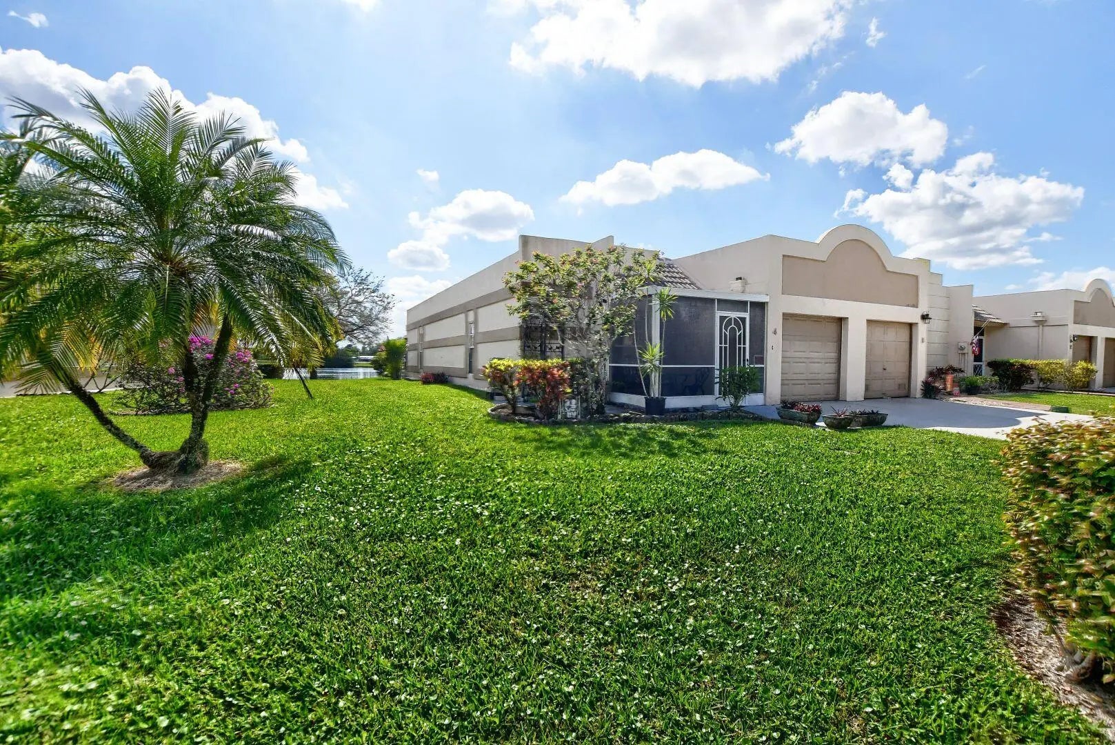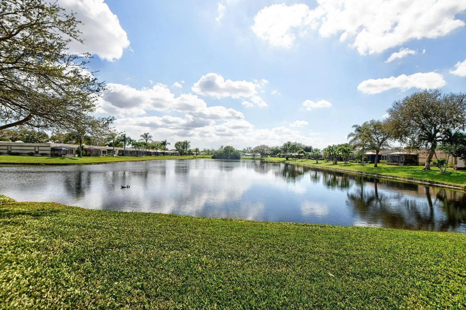 Discover serene lakefront living in this spacious 2/2 corner villa, boasting a long driveway, 1-car garage, front & rear patios perfect for relaxing, a delightful eat-in kitchen, and truly magnificent water views. Short walk to active clubhouse with heated pool, tennis and bocce courts, game and exercise rooms,etc.. Close to shopping,restaurants,and entertainment. This magnificent home is a must see !!!