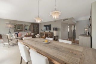 Discover the epitome of upscale living in this beautifully updated residence, echoing the sophisticated style of Restoration Hardware. The home features a reimagined gourmet kitchen that maximizes space and opens to the dining room, for flow & connnectivity. Daylight fills the space through a continuous wall of impact windows, creating a luminous environment throughout. Floors are luxuriously appointed with 24x24 porcelain tiles, macadamia flooring, and plush carpeting. Enjoy the convenience of new roller blinds throughout, including extra blackout blinds in bedrooms for serene sleep. The laundry area is equipped with high-capacity appliances and wine refrigeration. Privacy is unparalleled with only two units per floor. The building boasts a unique pool and deck area on the sand,