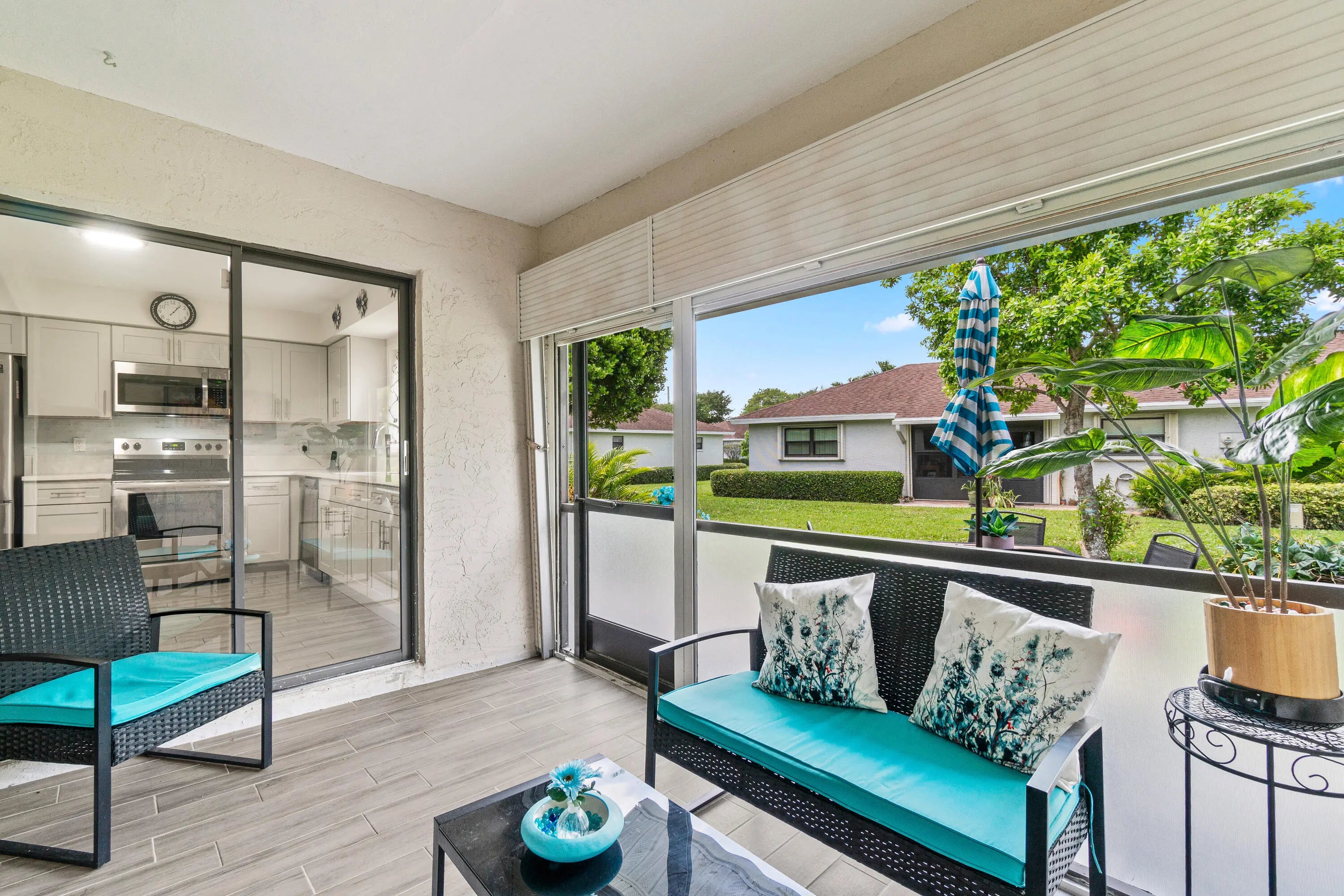 Coming Jan 2026 NEW ROOFS. HOT WIRE CABLE that includes INTERNET Welcome Home! This stunning, move-in ready villa has it all! Step inside to discover numerous updates including a modern kitchen, beautifully renovated bathrooms, no more popcorn ceilings, 5-inch baseboards, elegant 6-panel doors, and a charming stained glass window in the bathroom. Enjoy outdoor living on your spacious paver patio. Located in a vibrant community offering a saltwater pool, clubhouse, library, and a variety of social clubs to enjoy. The association fee covers cable, water, sewer, trash, roof and gutter maintenance, landscaping, and exterior building care—giving you peace of mind and convenience. Conveniently close to shopping, dining, movie theaters, and hospitals. One pet is welcome.