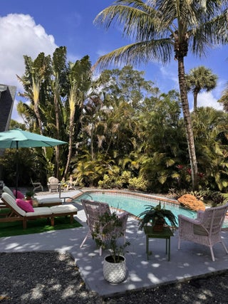 This fully furnished remodeled 4-bed, 3-bath pool home is offered as a furnished Rental. The house blends modern elegance with tropical charm, perfect for a family retreat or work getaway. Relax in the spacious, private backyard with lush greenery and comfortable outdoor seating. The total monthly rent is $6,500 for an annual lease.