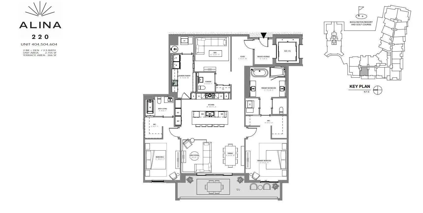 Discover the pinnacle of luxury living in the heart of downtown Boca Raton at ALINA Residences. This brand-new, move-in ready 4th-floor condo combines sophisticated design with modern comforts, offering two bedrooms, a versatile den, and two-and-a-half baths. Private elevator entry welcomes you into a bright, open space framed by floor-to-ceiling windows that capture breathtaking city views. A west-facing terrace provides the perfect setting for golden-hour sunsets and al fresco dining. Every element has been thoughtfully designed, featuring custom electric shades throughout, custom closets, Italian finishes and a cutting-edge Gaggenau kitchen with an induction cooktop, wine refrigerator, and the added convenience of an oversized walk-in pantry—an exceptional feature in condo living. ALINA offers a lifestyle that redefines convenience and indulgence. Residents enjoy 24-hour security and valet service, a 75-foot lap pool, a cutting-edge fitness center with yoga and Pilates studios, a golf simulator, and spa facilities including sauna, steam, and salt rooms. Outdoor BBQ areas and an elegant lounge provide spaces to relax and connect.