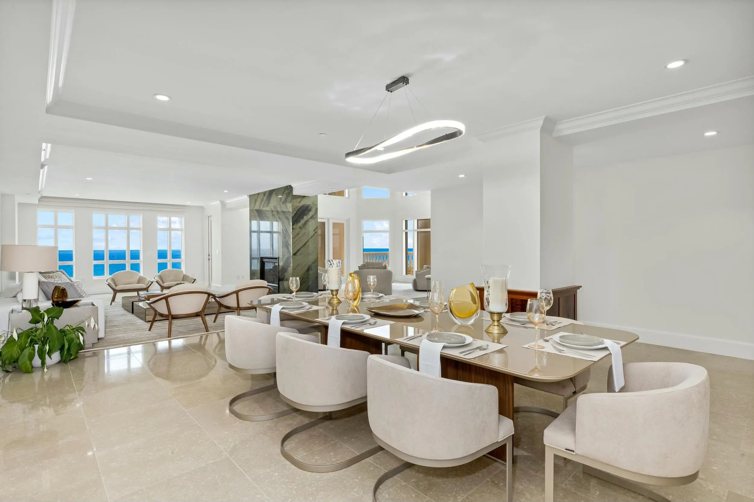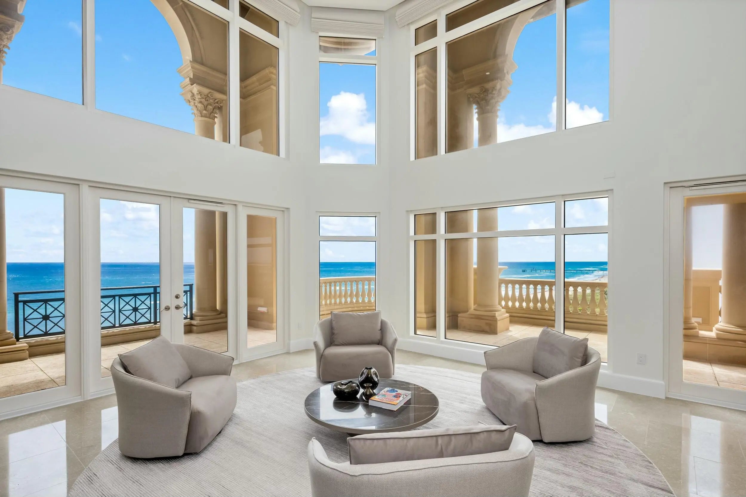 Welcome to Penthouse 903 at Luxuria—an iconic, two-story sky residence that offers nearly 8,000 square feet of refined interiors and endless ocean views. As the largest available condominium in Boca Raton, this once-in-a-generation offering is a rare chance to own a home of unprecedented scale and distinction in one of South Florida's most exclusive beachfront addresses. Elevated above the Atlantic on the 9th and 10th floors, this six-bedroom, seven-bathroom plus powder room penthouse boasts panoramic vistas of both the ocean and Intracoastal, visible from nearly every room. A private elevator opens into your own entry foyer, revealing expansive living and entertaining spaces bathed in natural light. The oversized living room stuns with soaring double height ceilings and dramatic walls of glass framing the endless blue horizon. The newly refreshed residence features gleaming wood floors on the upper level and freshly painted interiors throughout. A chef's kitchen is outfitted with top tier appliances, custom cabinetry, and a generous island, making it ideal for entertaining and daily luxury. Multiple office spaces support a modern work from home lifestyle. The grand primary suite is a private retreat unto itself, offering direct access to a spacious ocean facing balcony with its own private hot tub perfect for sunset soaks. Inside, the suite is complete with dual spa inspired bathrooms, dual custom walk in closets, a wet bar, and a personal refrigerator for elevated convenience and comfort. An in unit gym and sauna create a complete wellness experience, bringing the spa home. The residence also includes a private elevator connecting both levels seamlessly for ease and elegance. For added exclusivity and convenience, the penthouse comes with its own private three car garage, an exceedingly rare amenity in oceanfront living. Luxuria is an ultra luxury, full service building offering 24 hour concierge, valet, beachfront service, oceanfront pool, fitness center, and world class privacy, all moments from the finest dining, golf, and culture in Boca Raton. A trophy residence of this caliber is rarely available. Penthouse 903 at Luxuria is not just a home, it's a legacy.