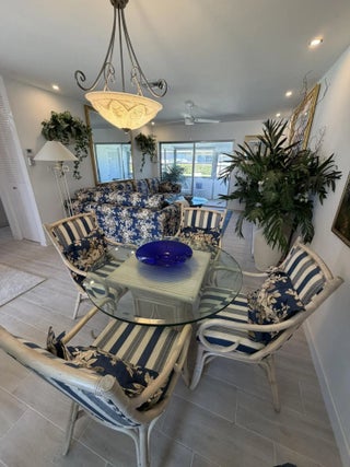 STUNNING! For the refined buyer this is A Must See!! With or Without Furniture. ALL NEW! This unit is bright, fresh and clean. NEWLY remodeled, never lived in, just staged with lovely furniture its move in ready, Spacious 1 /1 unit with NEW KITCHEN with New Appliances, INCLUDING DISHWASHER, Many upgrades include GLASS SHOWER DOOR, NEW TILE FLOORING, RECESS LIGHTING, NEW ELECTRIC PANEL, all new bathroom. Spacious living area, Storage closet in back room. Active 55+ community with great amenities! A lovely community is located minutes to the area beaches and airports. Well maintained community offers its residents resort style amenities. Condo fees include water, cable and internet. Clubhouse, pool, sauna, fitness, auditorium, shuffleboard, petanque, horseshoe courts, billiards and workshop.