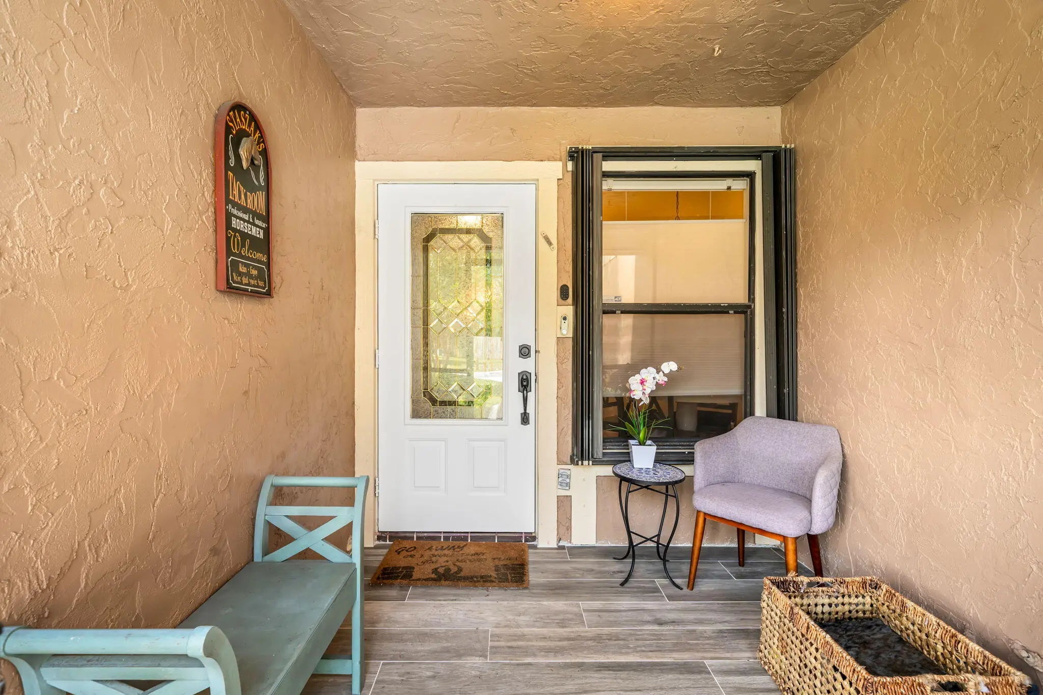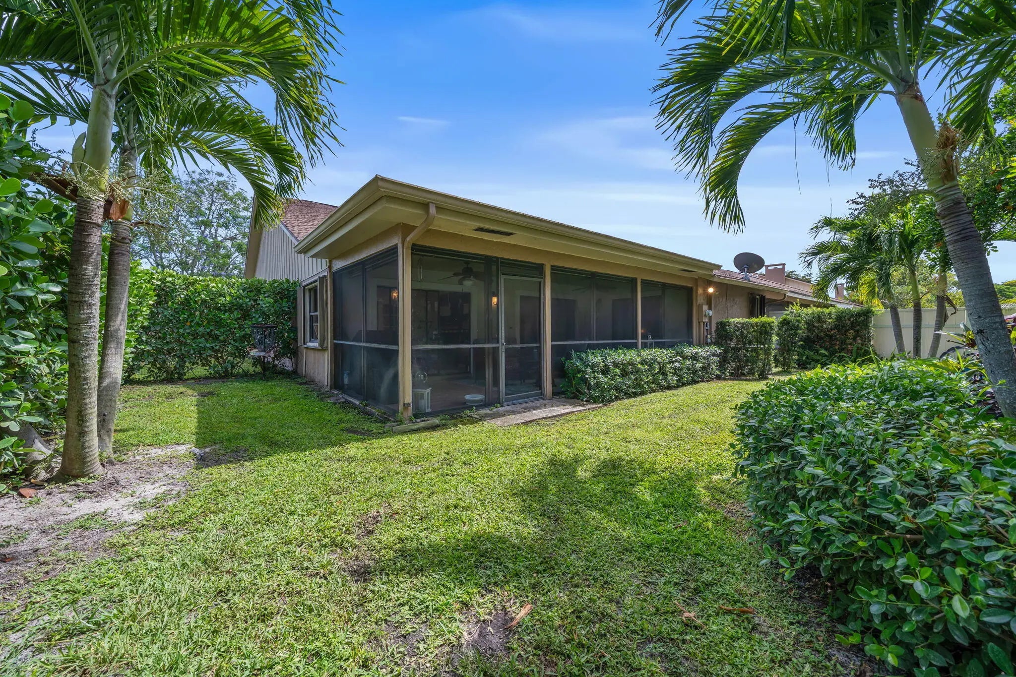Rare opportunity to own a prime equestrian end-unit townhome in Wellington for under $450,000! Ideally located just minutes from the world-renowned Winter Equestrian Festival, this property includes a generous seller concession of up to $10,000 toward an interest rate buy-down or closing costs; adding even more value to an already exceptional opportunity in today's market. This single-story residence combines comfort, privacy, and convenience in a highly desirable equestrian-friendly setting. Featuring 2 bedrooms PLUS a den and 2 bathrooms, the thoughtfully designed layout offers effortless indoor/outdoor living. The oversized primary bedroom provides a spacious retreat, while the versatile den overlooks the tiled porch and a beautifully landscaped, large fenced private yard. As an end-unit with no directly shared neighbor on one side, you'll enjoy enhanced privacy and natural light - perfect for relaxing or entertaining. The tastefully remodeled kitchen showcases stainless steel appliances, granite countertops, and ample cabinetry, while faux wood tile flooring runs throughout the entire home, creating a cohesive and low-maintenance finish. The front porch and patio have both been recently updated with new tile/flooring, adding to the home's polished feel and inviting outdoor spaces. Additional highlights include a garage, oversized driveway, indoor laundry room, newer AC unit, accordion shutters, and plentiful guest parking. Pet and truck friendly, this well-maintained and intimate community offers low-maintenance living with the HOA covering lawn care, community pool, irrigation, exterior painting, and exterior structural insurance which are all included in the monthly dues. Move-in ready and full of character, this home delivers exceptional value, privacy, and proximity to all Wellington has to offer.