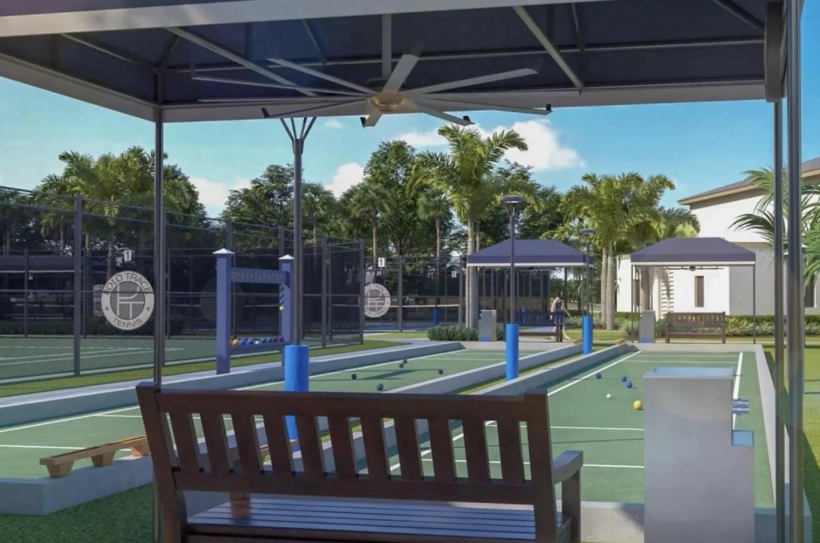 Basketball Court, Cabana, Clubhouse, Fitness Center, Game Room, Playground, Pool, Spa/Hot Tub, Tennis Court(s), Trail(s), Manager On Site, Bocce Ball, Business Center, Cafe/Restaurant, Pickleball Court(s)