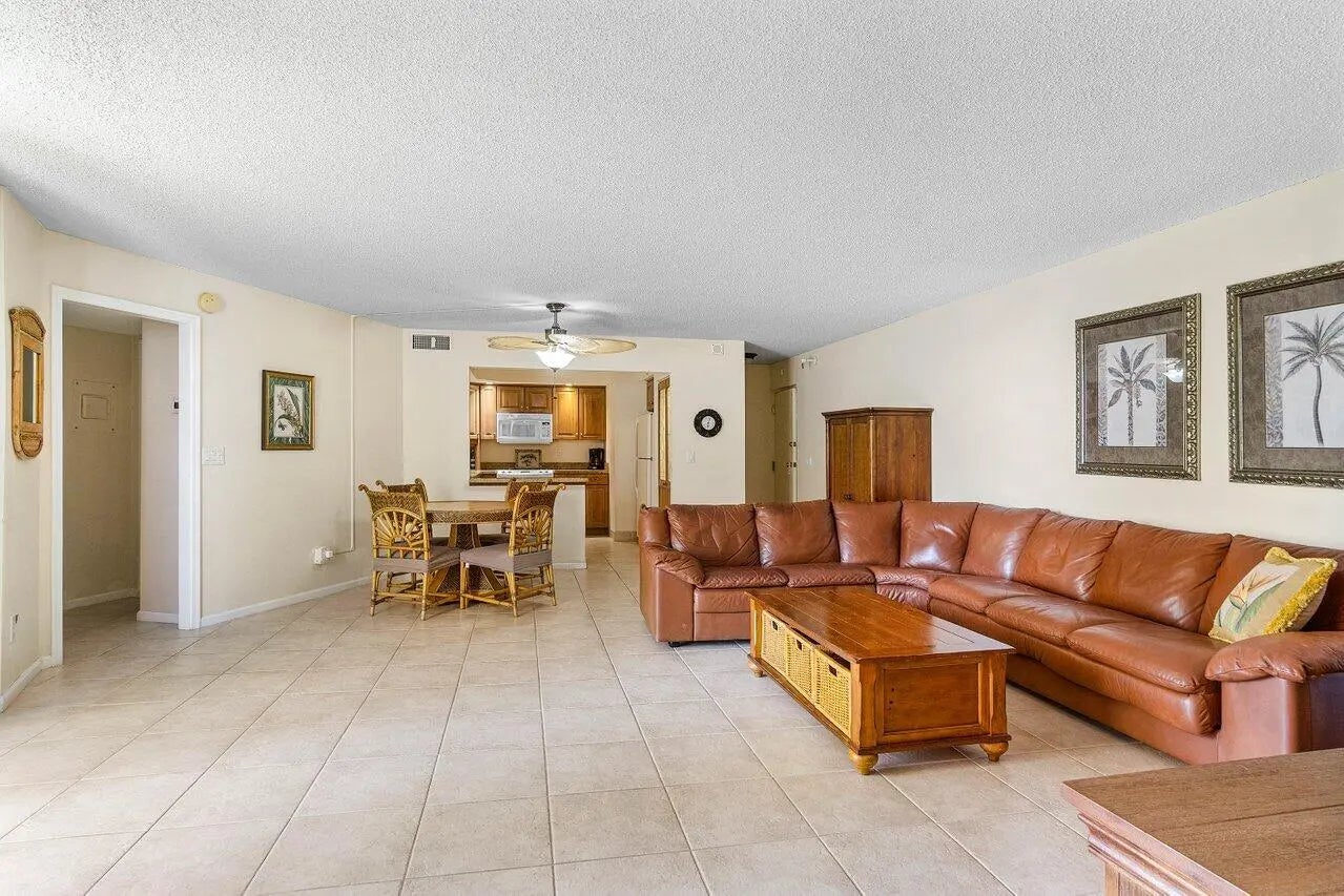 2 BR 2 BA furnished rental in Tower B on the sunny south side of building. All ceramic tile floors. Laundry on FL right outside unit - no extra charge. Kitchen opened to living area. Light wood cabinets & granite counters. Leather sectional in LR. King Bed in Tommy Bahama Style Master BR w/ceiling fan. Guest bedroom- twin beds. Gated community. Open Assigned Parking Space. Non-smoking unit. Phoenix Towers features poolside clubhouse w catering kitchen & dining area, 3 gas BBQs poolside w picnic area, TVs, library, showers & sauna. Exercise Room. circular heated pool + beach access.. Best beaches on island - walk to area restaurants. Great opportunity to live on the ocean on beautiful Singer Island. 3 Month Minimum Lease required.