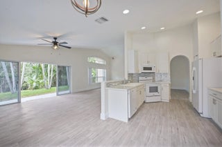 Located in the heart of Jupiter, 3 bedroom, 2 bathroom, single-family home in beautiful Maple Island Community. A safe, gated family orientated community. Freshly painted and renovated with wood grain ceramic tile throughout home. New appliances, new water heater, and A/C. Accordion hurricane shutters on all windows. Beautiful low maintenance, well stocked back yard garden, backing on to a preserve and canal. Community pool. Central to EVERYTHING. Walking distance to top rated schools & parks! Less than 10 minutes to the Beaches, DuBois park, Harborside, top restaurants, cinema and shopping. 2 miles to I-95 and Turnpike.