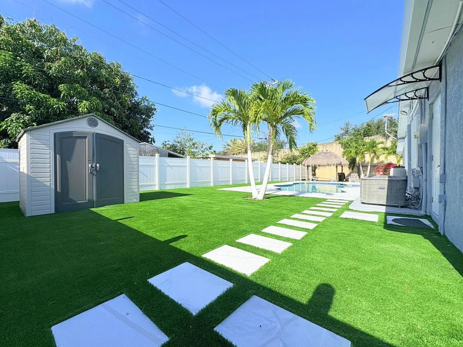 Absolutely stunning ranch-style home featuring 3 bedrooms and 2 bathrooms. Step inside to a bright, open layout with elegant tile flooring throughout and a cozy fireplace anchoring the spacious living and dining area. The remodeled kitchen is a chef's dream, boasting granite-slab countertops, decorative tile backsplash, and stainless-steel appliances. Step outside to your tropical paradise—relax under swaying palm trees beside the sparkling in-ground pool, ideal for entertaining or unwinding. A paver driveway and covered carport add both style and convenience. Seller Financing with 8% Interest & 20% Down or Rent to Own Options Available. This one is a true gem—don't miss it!