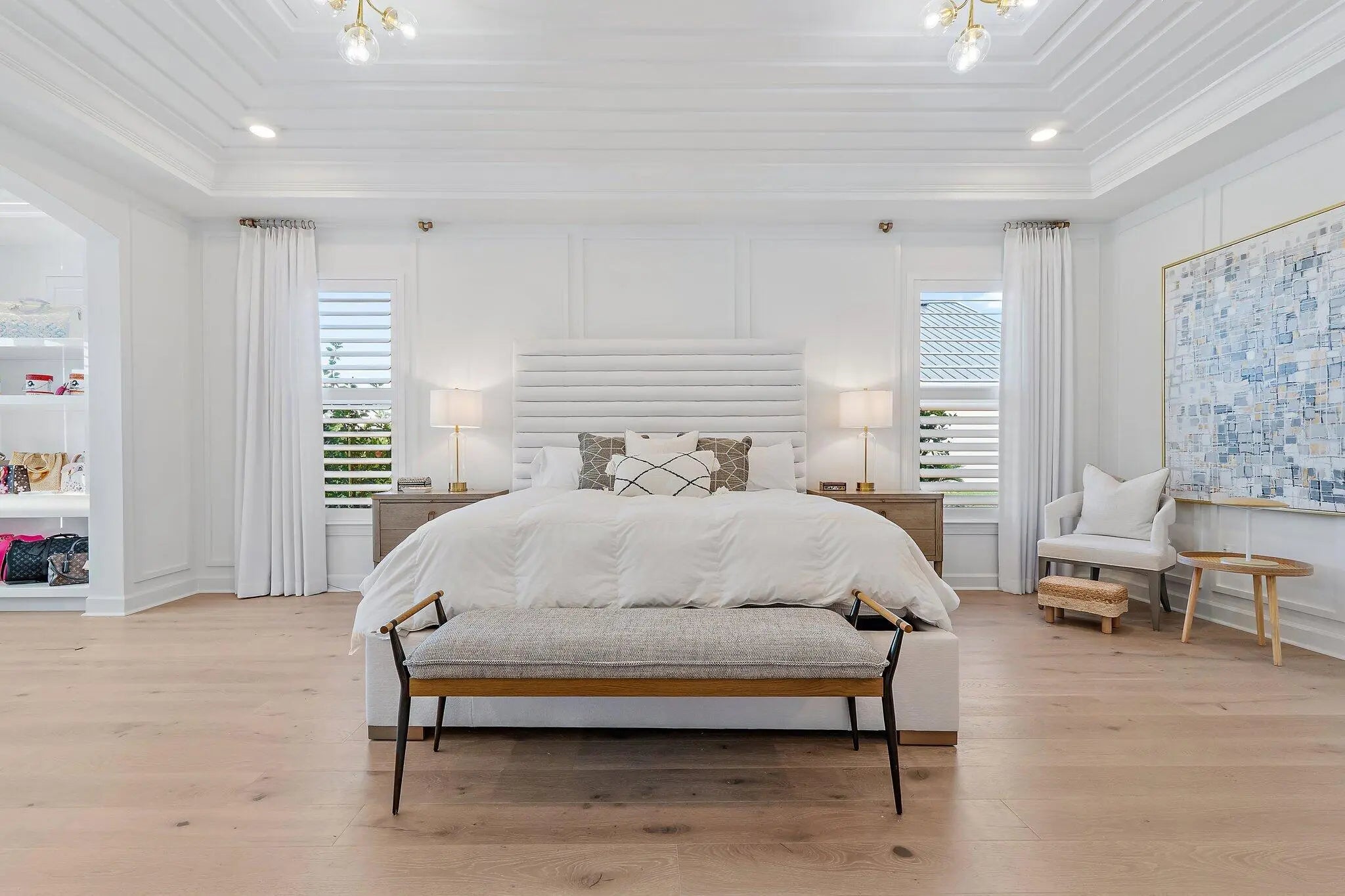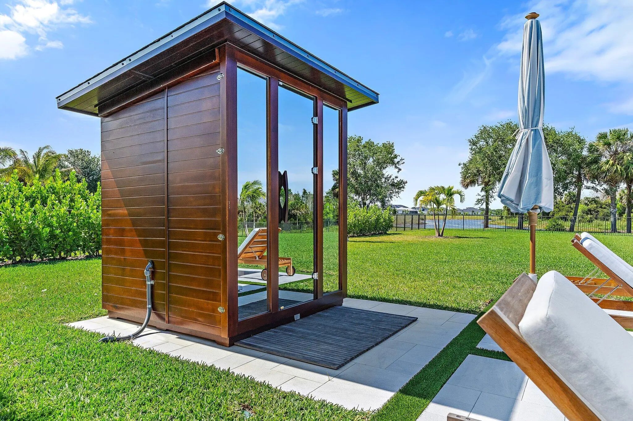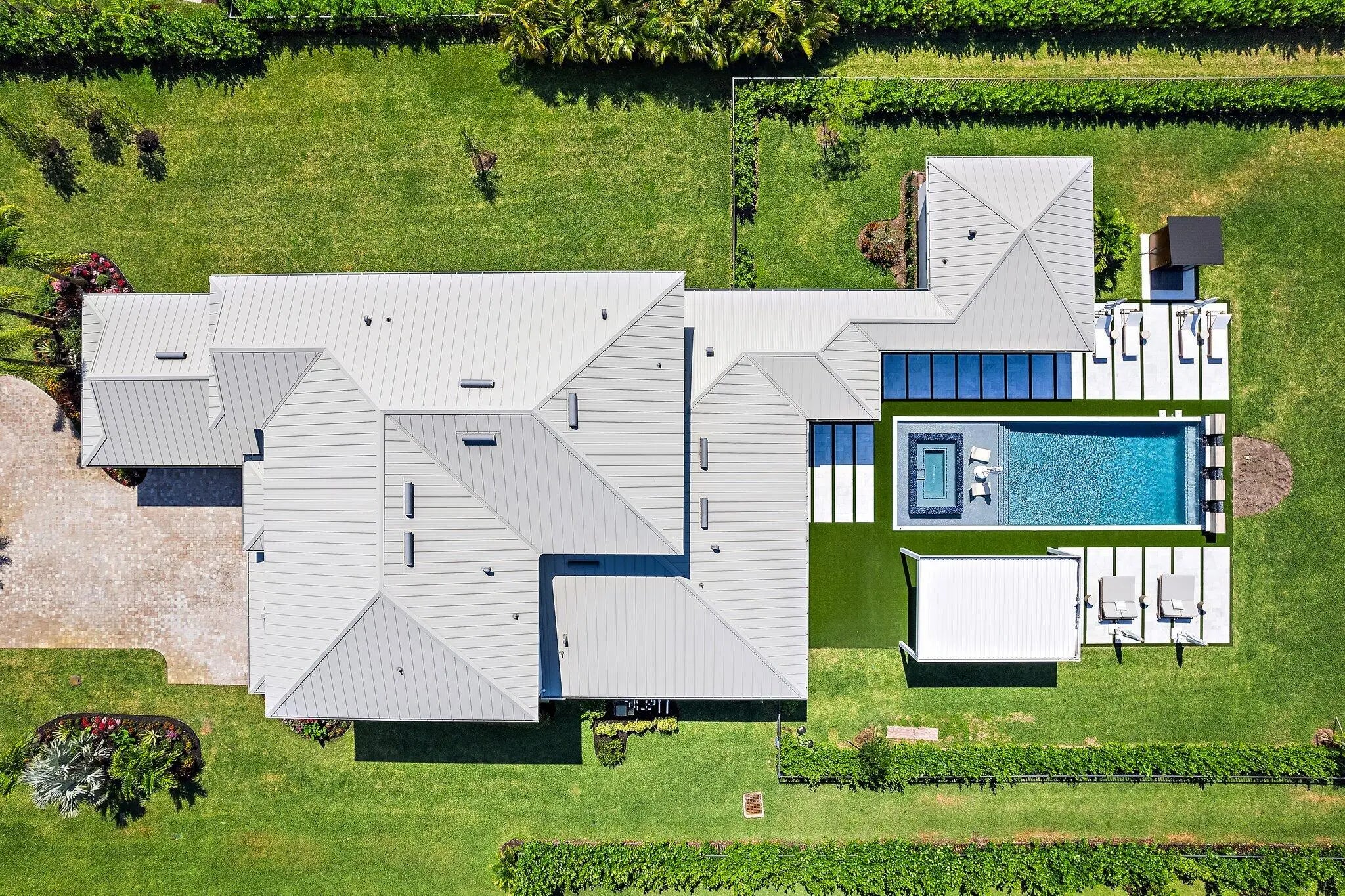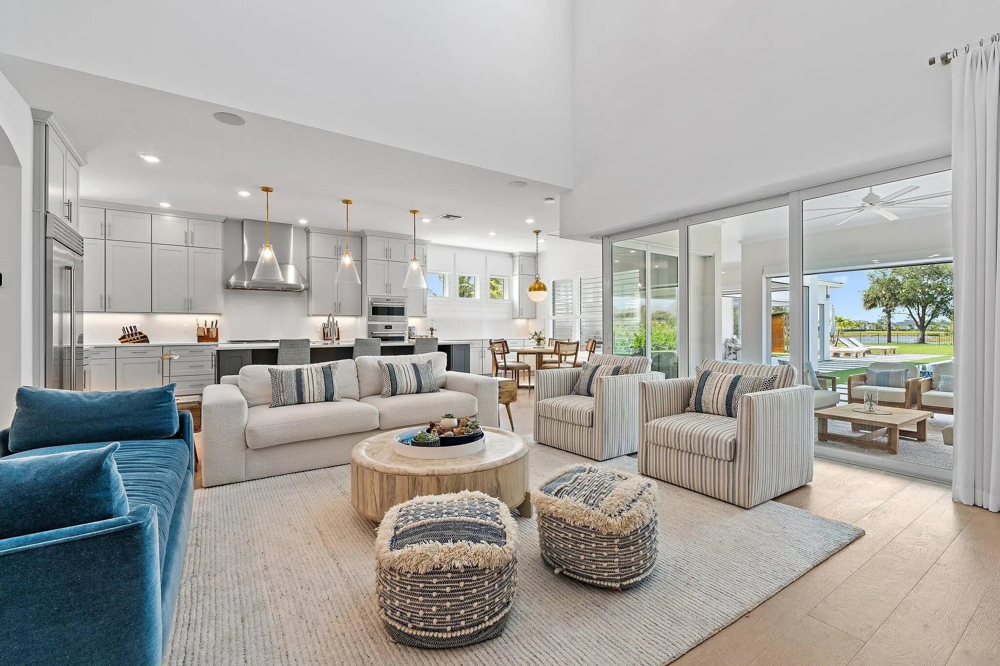 Enjoy the best of Bridgewater in this expanded ''Livingston'' model home with long water views. This seven bedroom home, the largest model offered in Bridgewater, with an office and home theater, creates multiple options of useful space with the finest in luxury appointments. The first floor has the primary suite with bath, one guest bedroom with bath, and an office in the main house, powder room, 4 car garage, and a one bedroom Casita with full bath just off the kitchen. The second floor has four additional bedrooms, a loft, media room, and three full baths. The back yard has special features like artifical turf, electic screens, a summer kitchen, pool with spa, sauna, and best of all, a custom pergola with a louvered ceiling that has slats that electronically open and close.