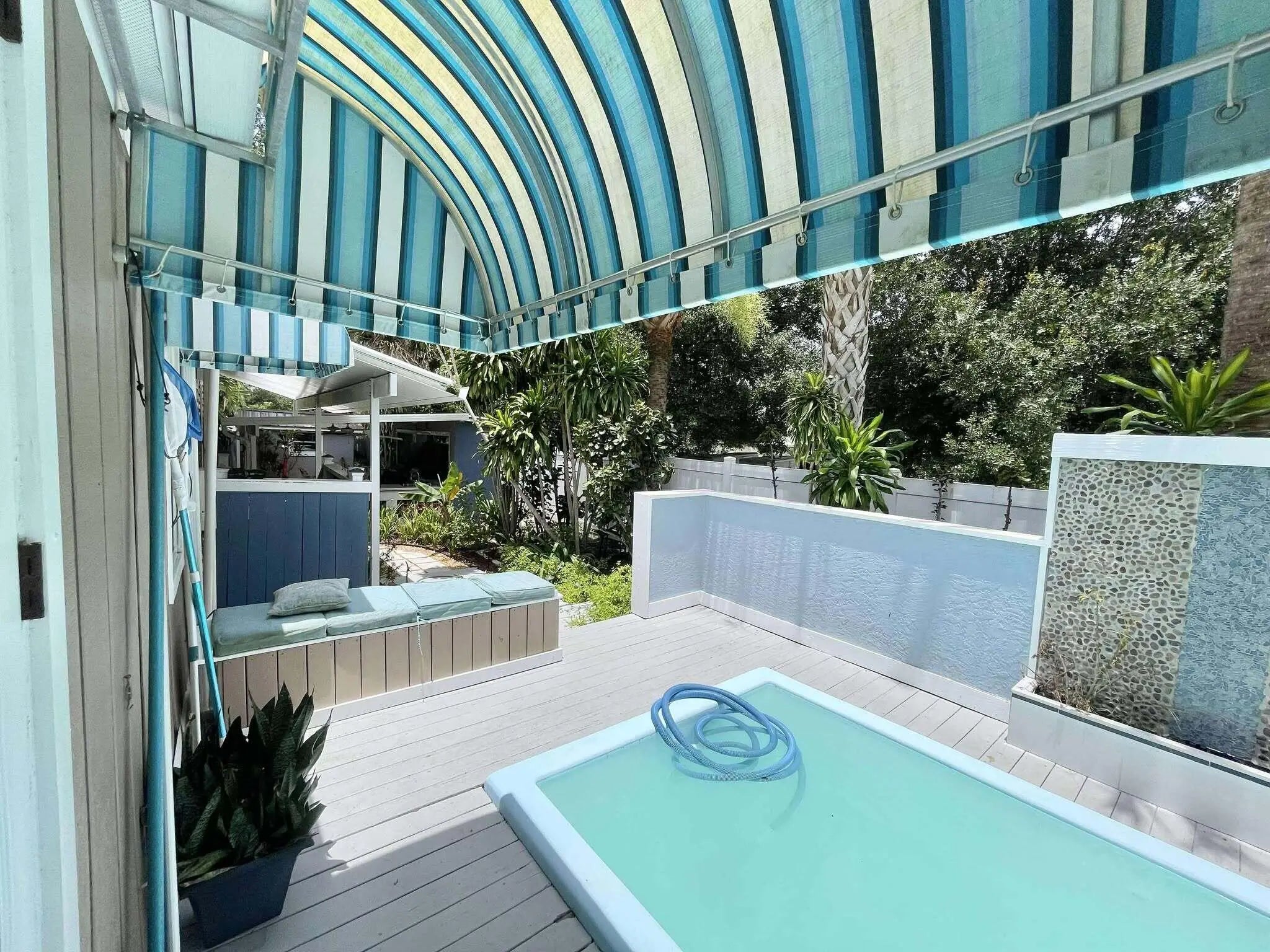 Escape to your own Florida retreat! This beautifully maintained completely remodeled w/ detached bunkhouse w/brand new interior, & your own private soaking pool with a tranquil waterfall—perfect for cooling off on hot summer days. Enjoy the ultimate outdoor living with a full summer kitchen and bar, complete with a smoker and grill ideal for entertaining. Include: Fully furnished and move-in ready. Modern tile flooring throughout main living areas, carpet in bedrooms. New SS appliances. Dedicated laundry room Formal dining area. Master suite with walk-in closet, dual sinks, standalone shower, and Jacuzzi tub. Outdoor summer kitchen with bar, grill, and smoker. RV pad with 50-amp hookup. Come check out this piece of paradise!