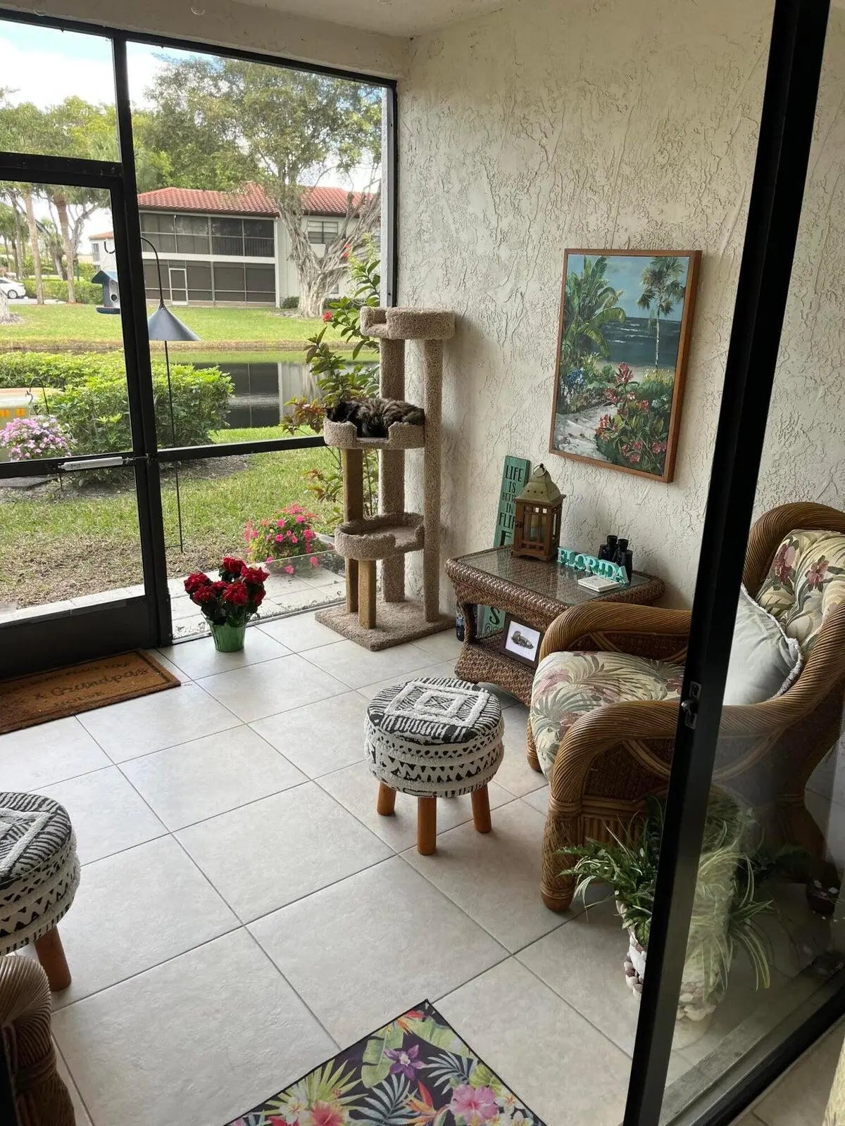 Short Term Rental Available May 15, 2026 to October 15, 2026. Beautifully decorated and fully furnished ground level condo with water view in the gated community of The Cypresses of Boca Lago in Boca Raton, FL. Updated kitchen & bathrooms. Washer & Dryer in unit. Beautiful lake view from the screened in patio/lanai. Boca Lago offers optional Seasonal & Summer memberships for their golf country club. 2 community pools nearby. Centrally located in the heart of Boca Raton. ALL utilities/cable/wifi/garbage included in the rent. 55+ community.