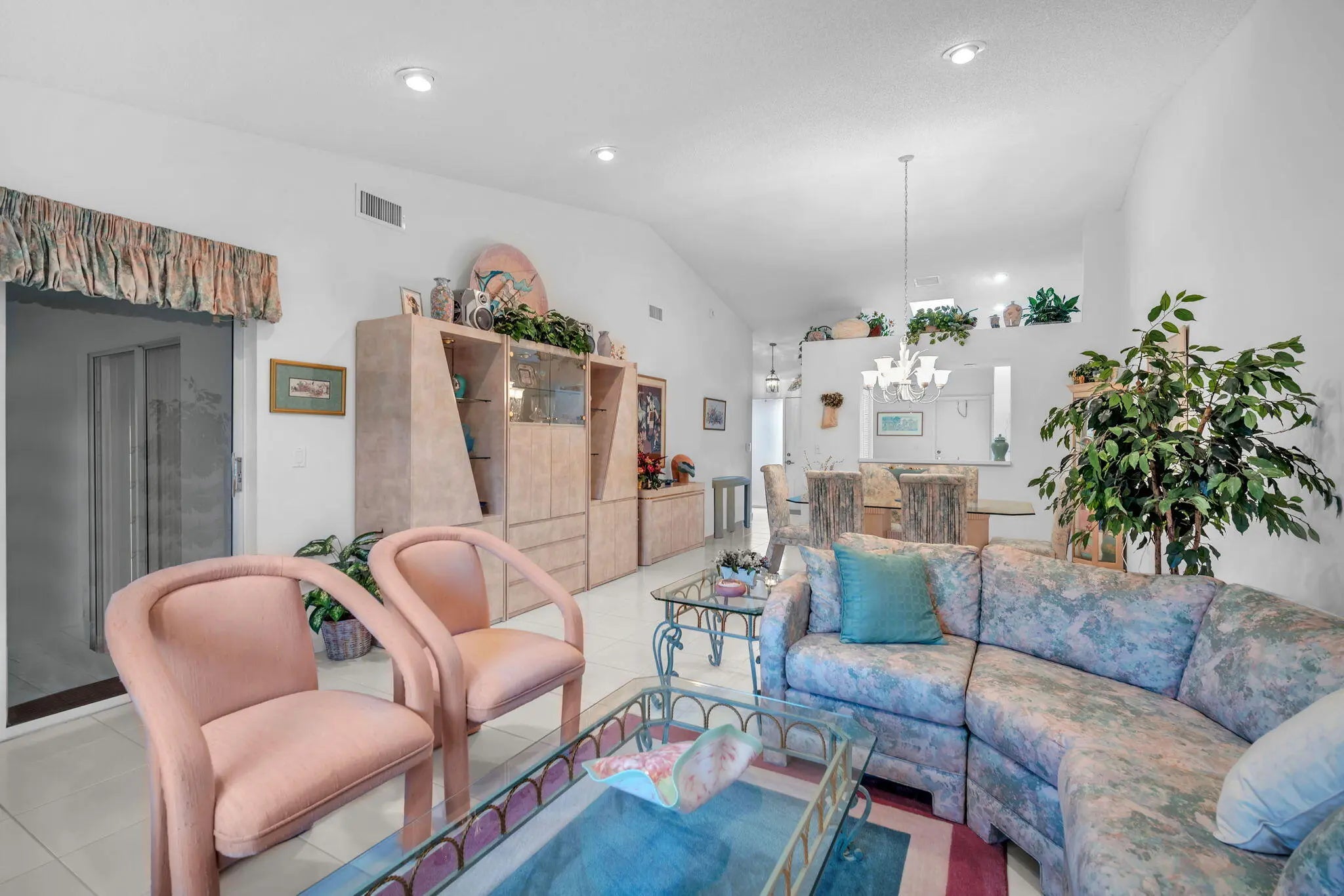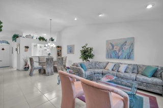 Experience light, space, & serenity in this beautifully maintained 2/2 end unit w/soaring ceilings & kitchen skylight that fills the home with natural sunshine. This is your chance to create your very own retreat, offering the perfect blend of comfort & potential. Enjoy the convenience of a one-car garage, tile & carpet flooring throughout, an exterior freshly painted & inside washer & dryer. The A/C was replaced in 2023, & the roof (believed 2008) Home is situated close to several community pools. Palm Isles a 55+ man-gated community offering tennis, pickleball, an on-site cafe, a stunning new clubhouse debuting in March & more! Located near the Turnpike, shopping, dining, & entertainment. Seller to pay the assessments at closing for new clubhouse