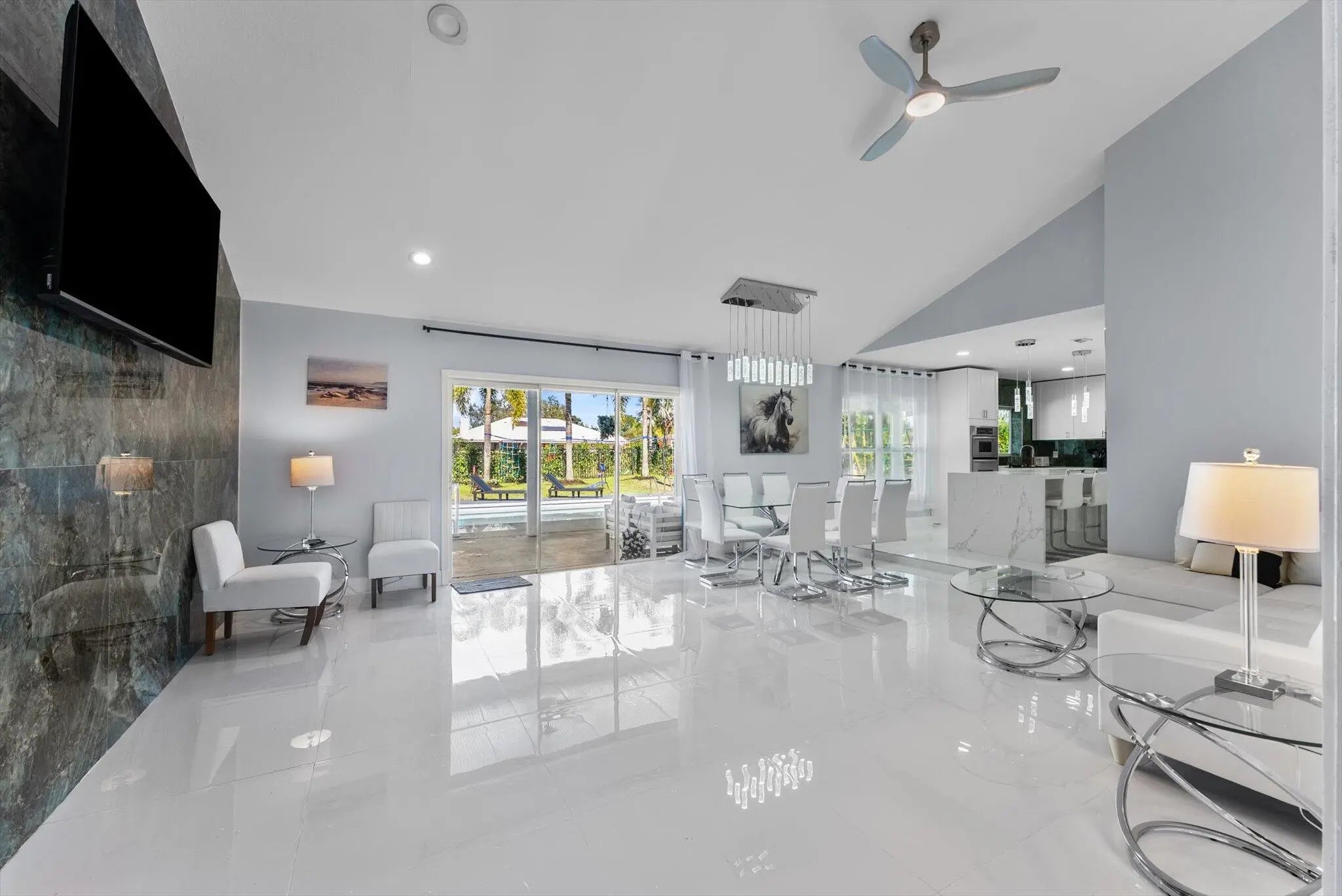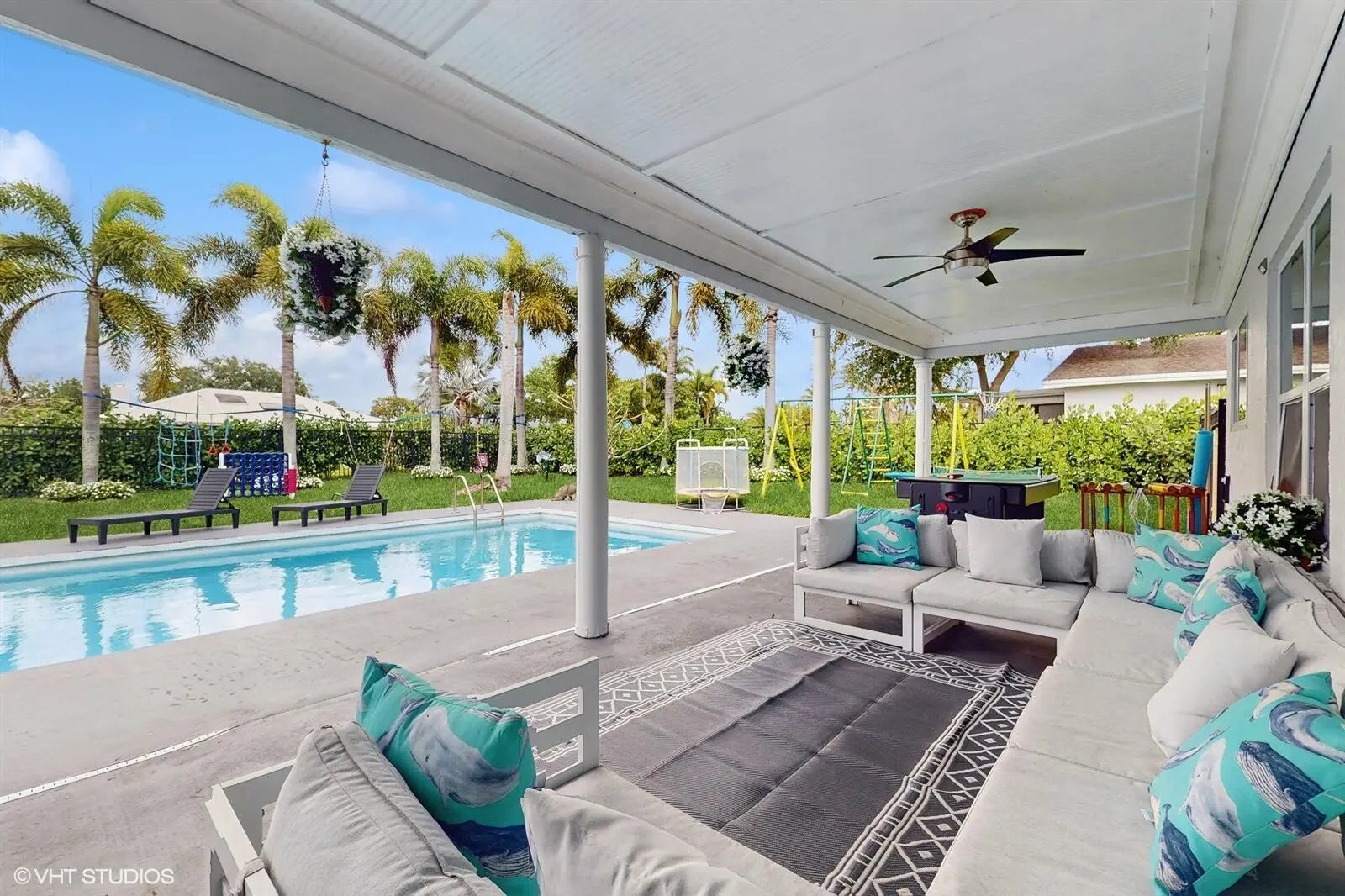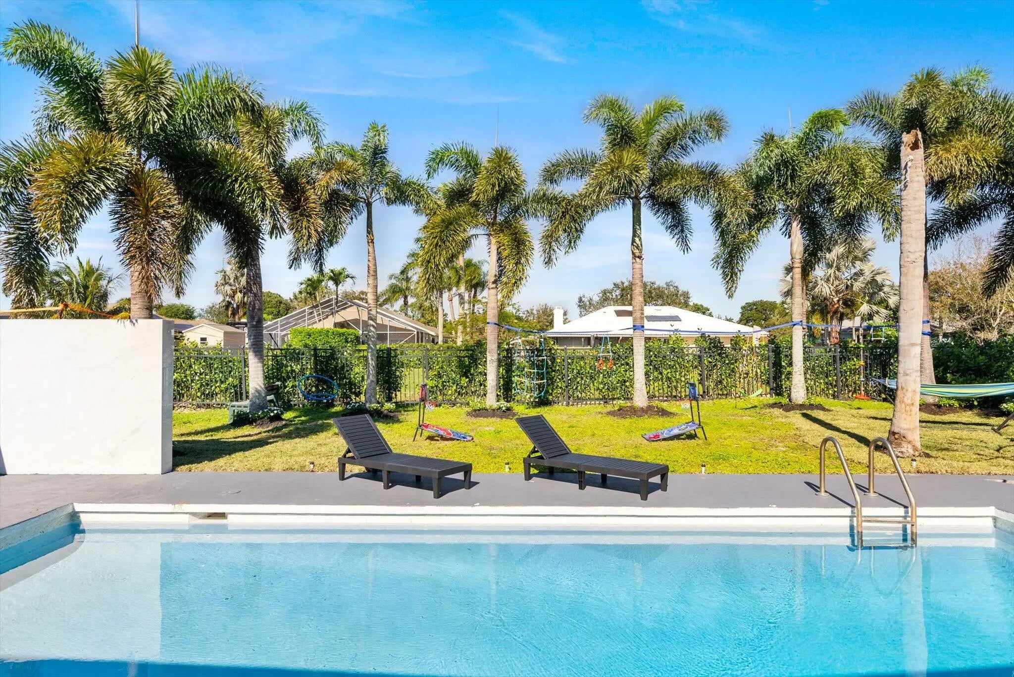 Beautifully renovated 5/3 residence with big pool and huge yard with an extensive range of amenities for kids and adults. Outside fireplace and hot tub give you relax after busy day. The large, covered porch provides an optimal outdoor relaxation space. The pool adds an extra layer of luxury and entertainment potential. Overlooking a canal, the house enjoys serene views and privacy.