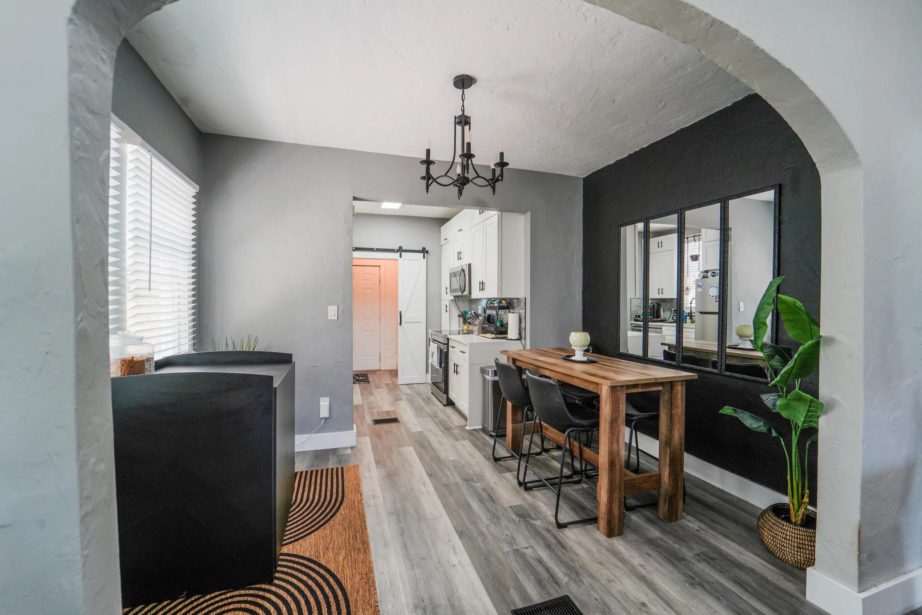 Updated cozy historic gem in the heart of Northwood Hills, one of West Palm Beach's most charming and fastest-growing neighborhoods. The open floor plan flows seamlessly from the living room to dining room to the kitchen, leading to a private enclosed patio and fully fenced backyard with string lights, tiki accents, and a mature mango tree. The detached studio with electricity can be converted into an income producer by adding plumbing; while a full-size shed offers extra storage. Enjoy a beautiful historic archway entrance, lush landscaping with solar lighting, and move-in ease with furniture negotiable. Just minutes from the vibrant Northwood Village Arts District, and steps from the soon-to-launch District at Northwood and Currie Park's $86M transformation. Ask agent for showing.