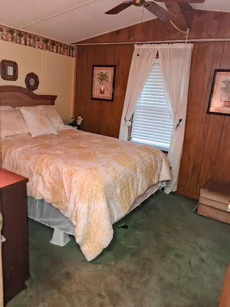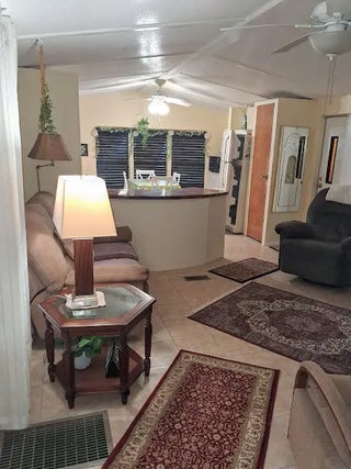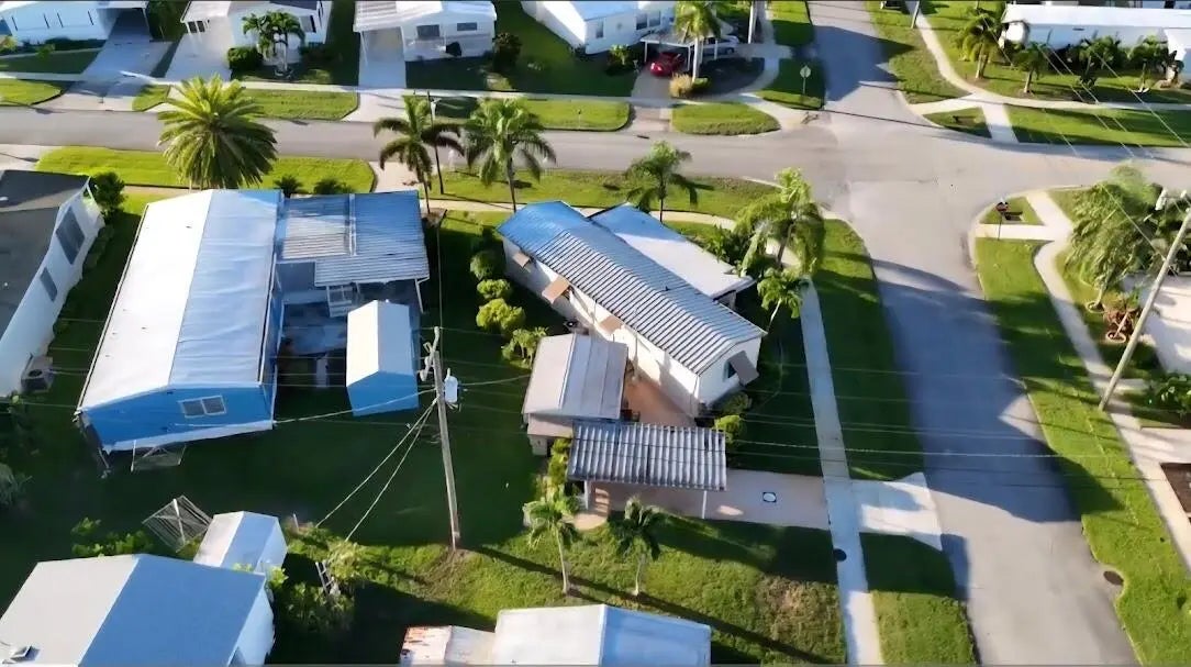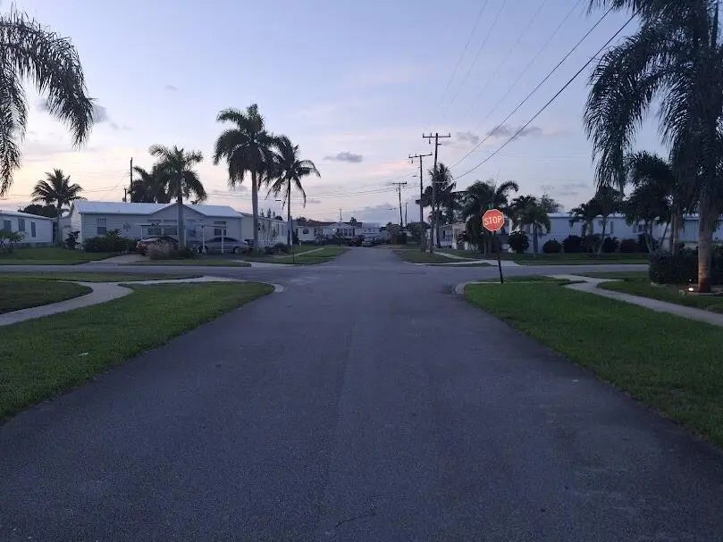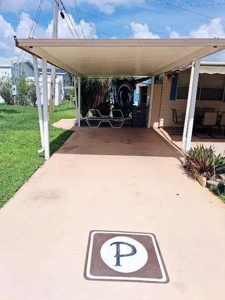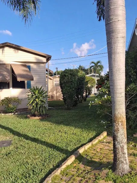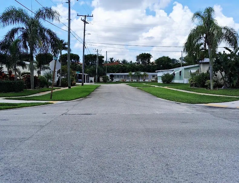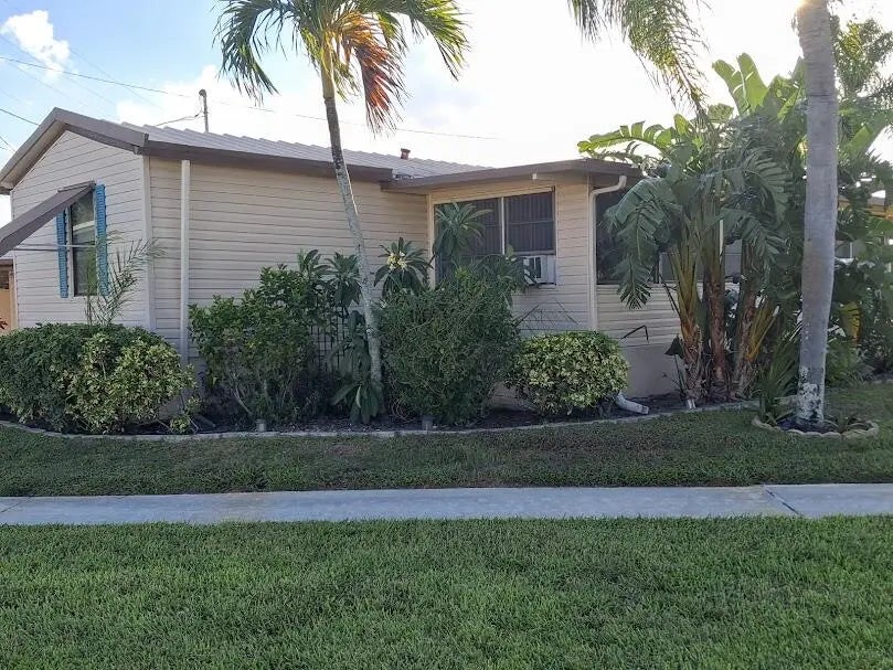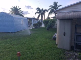 Corner lot sought after, well maintained manufactured home in a very friendly, active age 55+ community that's resident owned. NO lot fees! 1 time land share fee $750 refundable at resale. Turnkey all furniture and appliances included, full size washer/dryer in home, newer central A/C & water heater, Aluminum roof coated every few years, nice bright sunroom entry with wall A/C unit, kitchen island for entertaining, complex heated pool just refinished & clubhouse with many free concerts, BBQ's, games day, holiday parties, shuffleboard, bocce, petanque courts, golf driving cage, motorcycles & golf carts allowed, close to I95 and Turnpike, WPB & Ft Laud airports, 5 miles to beach, oversized shed 160 s.f. half bathroom & A/C unit, can be guest house or shelter, Sun shade patio, Hurry!