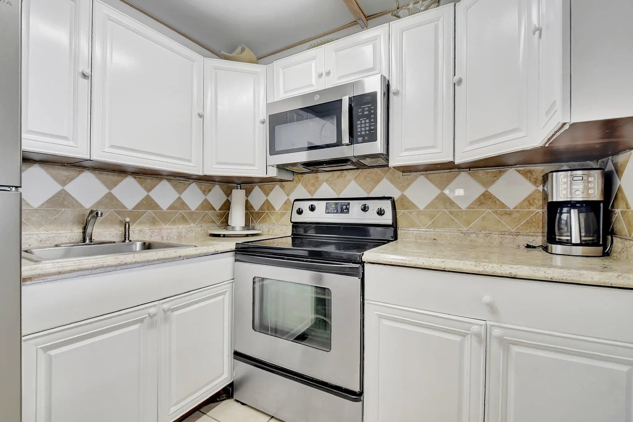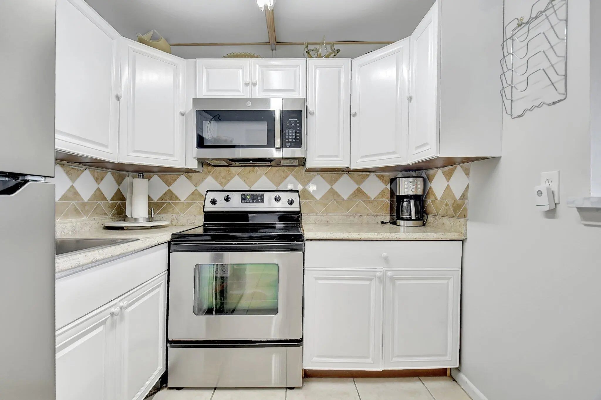 Charming 1-bedroom, 1.5-bath condo located on the 4th floor in the highly desirable Century Village community in West Palm Beach. Offering 792 sq ft of total space (702 sq ft under air), this bright and airy unit features tile flooring throughout and a fully renovated kitchen with granite countertops, stylish tiled backsplash, upgraded cabinetry, and stainless steel appliances. The enclosed porch provides a versatile space that can serve as a cozy guest room or a relaxing sitting area with views of the lush, tree-lined surroundings. The building is conveniently situated right next to the pool, with two laundry rooms on each floor and a trash chute for added convenience. Unit owners must be a minimum 55 years of age. A minimum monthly income of $2,200 for a single resident and $2,350 per couple is required for residency. No rentals. No pets (To qualify for an emotional support animal, an applicant must prove that they have a disability related need for a support animal, by submitting an ESA recommendation letter from a licensed health care. Century Village offers an incredible range of amenities including live shows, dancing, bingo, sailing, fitness classes, an indoor heated pool, resistance pool, yoga and weight rooms, woodworking shop, billiards, tennis, shuffleboard, bocce ball, and more. A community courtesy bus is also available to take you to nearby destinations. Please note: Rentals are not permitted in this building. Seller financing is available.