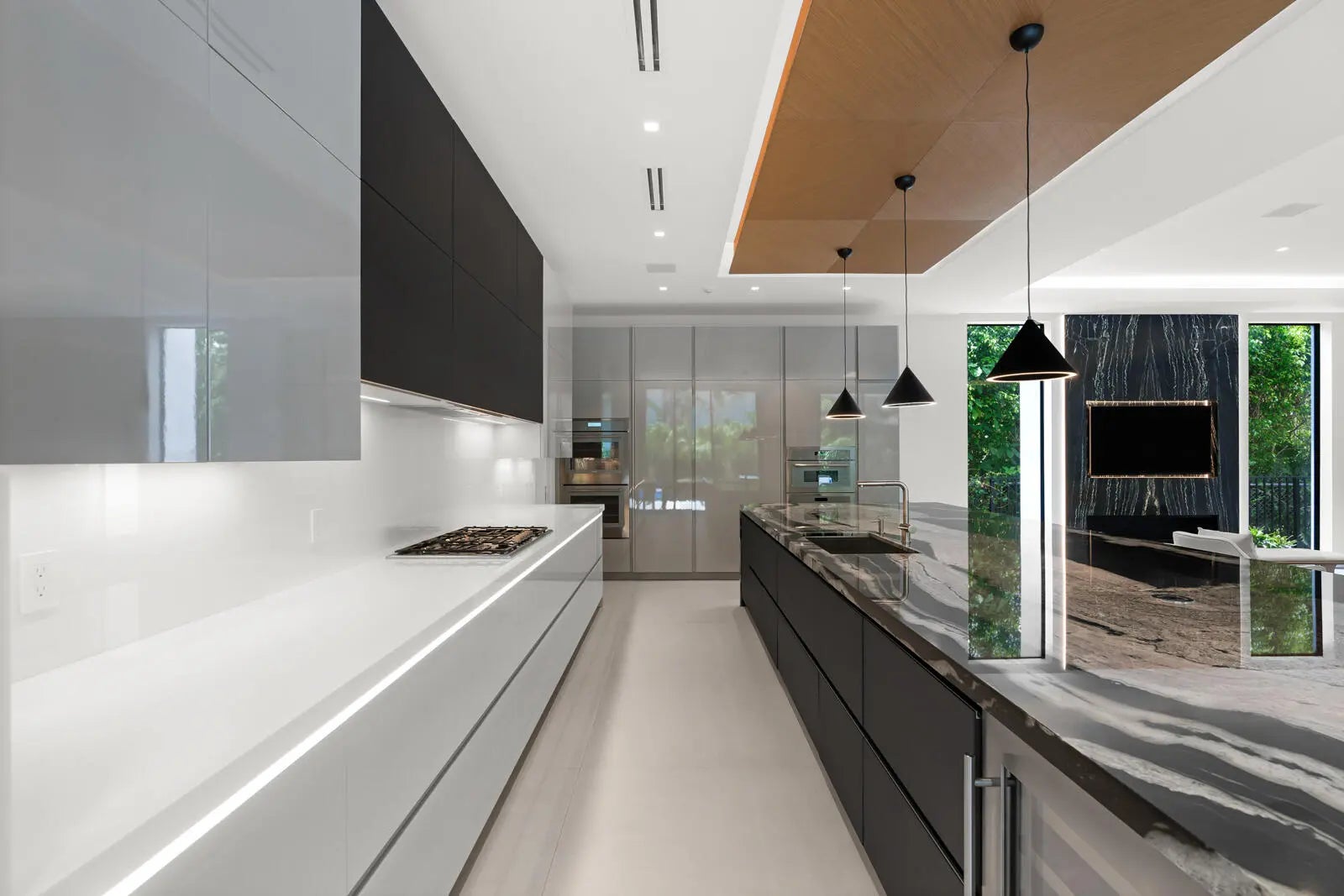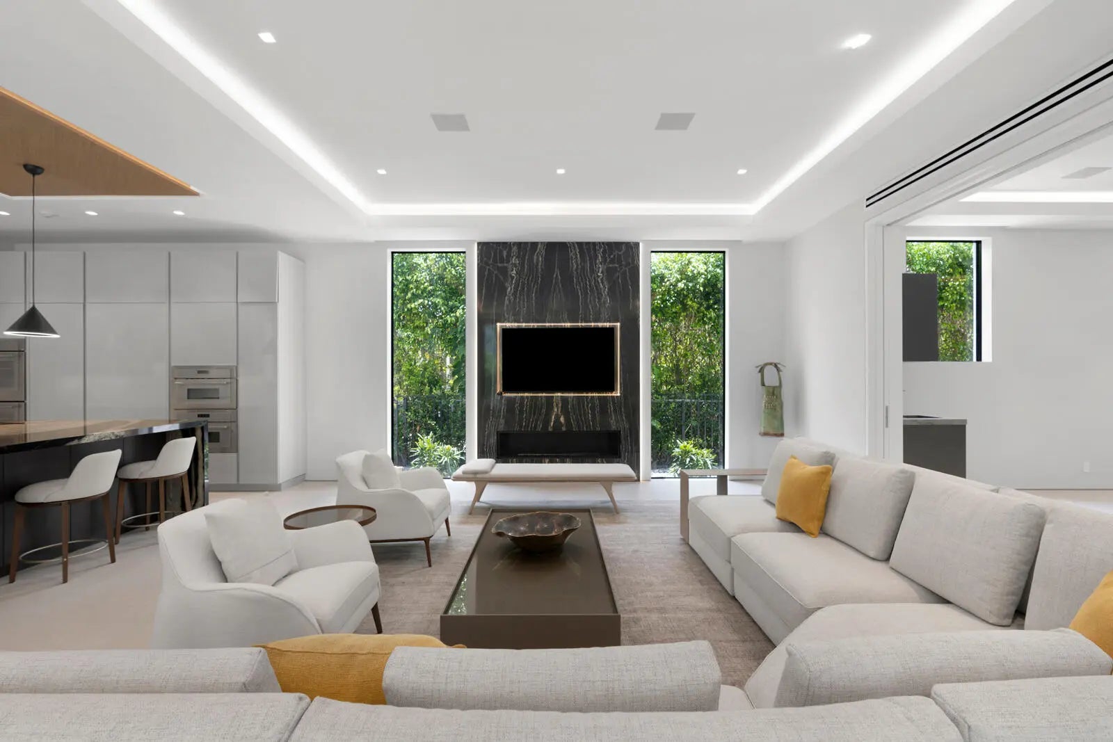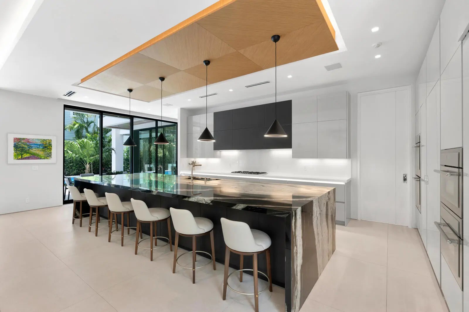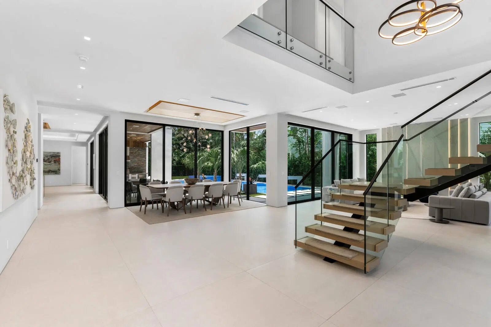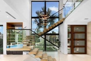 Experience cutting-edge design and comfort at 141 Cortez Rd. in W.P.B.'s prestigious SoSo area, near the Intracoastal. This 6,774 sq. ft. home epitomizes modern luxury, offering sophistication and ease. Highlights include a grand entry foyer with a magnificent staircase, a state-of-the-art media room, and a chef's kitchen with high-end appliances and wood-accented ceilings. The stylish dining area provides pool views. The living room features a fireplace and wet bar, perfect for entertaining. The attached guest house includes a kitchenette and private balcony. The owner's suite boasts dual baths and a balcony overlooking the pool. Enjoy the rooftop deck with stunning views. Additional features include a luxurious elevator, Control4 automation, laundry on both floors, and a 60 kW generator Welcome to 141 Cortez Rd., where cutting-edge design meets unparalleled comfort in the heart of West Palm Beach's prestigious SoSo area, just four homes away from the Intracoastal. This extraordinary home boasts 6,774 sq. ft. of air-conditioned space and is a testament to modern luxury, offering a lifestyle of sophistication and ease. As you approach, the sleek lines and contemporary architecture set the tone for what lies within. The grand two-story entry foyer and the sophisticated modern staircase to the right are truly magnificent. Inside, every detail has been thoughtfully designed for contemporary living, with the finest LED cove lighting and accent lights from Environmental Lights enhancing the ambiance throughout the home. The state-of-the-art media room is wired for an immersive cinematic experience, while the spacious first-floor office offers a tranquil workspace bathed in natural light. The chef's kitchen is a modern culinary haven, boasting wood-accented ceilings, high-end appliances, and an inviting eat-in island perfect for casual gatherings. The separate dining area, accented with a decorative wood ceiling and complemented by floor-to-ceiling glass views of the pool, adds a touch of elegance to every meal, while the living room's fireplace and wet bar make it the ultimate space for entertaining. The attached guest house is a modern marvel, featuring its own kitchenette and private balcony. Overlooking a stunning 36 ft. pool with a 10 ft. sun shelf and spa, this space ensures your guests enjoy luxury on par with the main residence. The poolside area also includes a fully equipped outdoor kitchen, perfect for al fresco dining and entertaining. The owner's suite redefines opulence with its dual side-by-side master baths and grand balcony overlooking the pool, creating a serene retreat for relaxation. All three guest bedrooms feature deluxe ensuite bathrooms, offering privacy for family members and guests. Imagine sipping your morning coffee on the tiled roof deck, where glass railings offer uninterrupted views of the tranquil waters. The deck is perfect for entertaining, equipped with gas and water hookups for future use like a summer kitchen. Technological innovation and convenience are at the forefront of this home's design. The home features a luxurious elevator and laundry facilities on both the first and second floors. It is also equipped with Control4 automation and lighting and is wired for Lutron Sivoia QS shades, making every aspect of this residence controllable with ease. There is also a wired security system and high definition cameras as well as built-in speakers that play streaming media throughout the home and loggia. A whole home 60kW Kohler generator ensures that comfort and convenience are never compromised. 141 Cortez Rd. is more than just a home; it's a sanctuary of modern luxury. Whether you're lounging by the pool, enjoying a film in the media room, or simply relaxing in your master suite, this residence offers a perfect blend of cutting-edge technology and refined elegance. Welcome to the future of living in one of West Palm Beach's most sought-after neighborhoods.