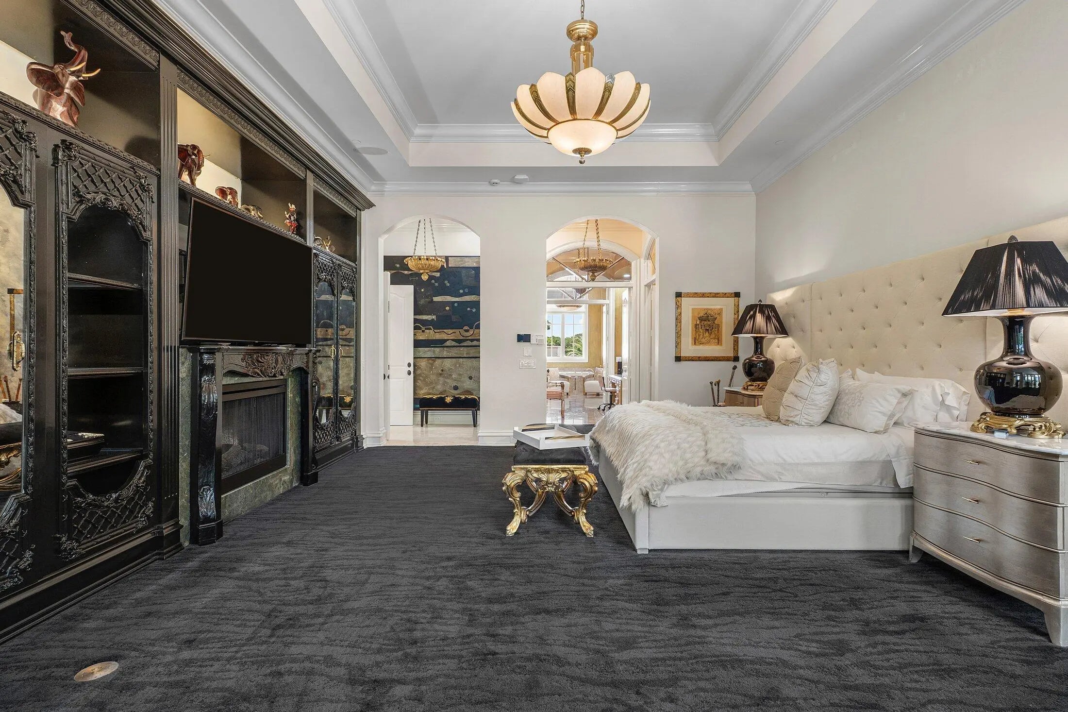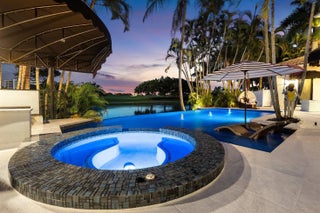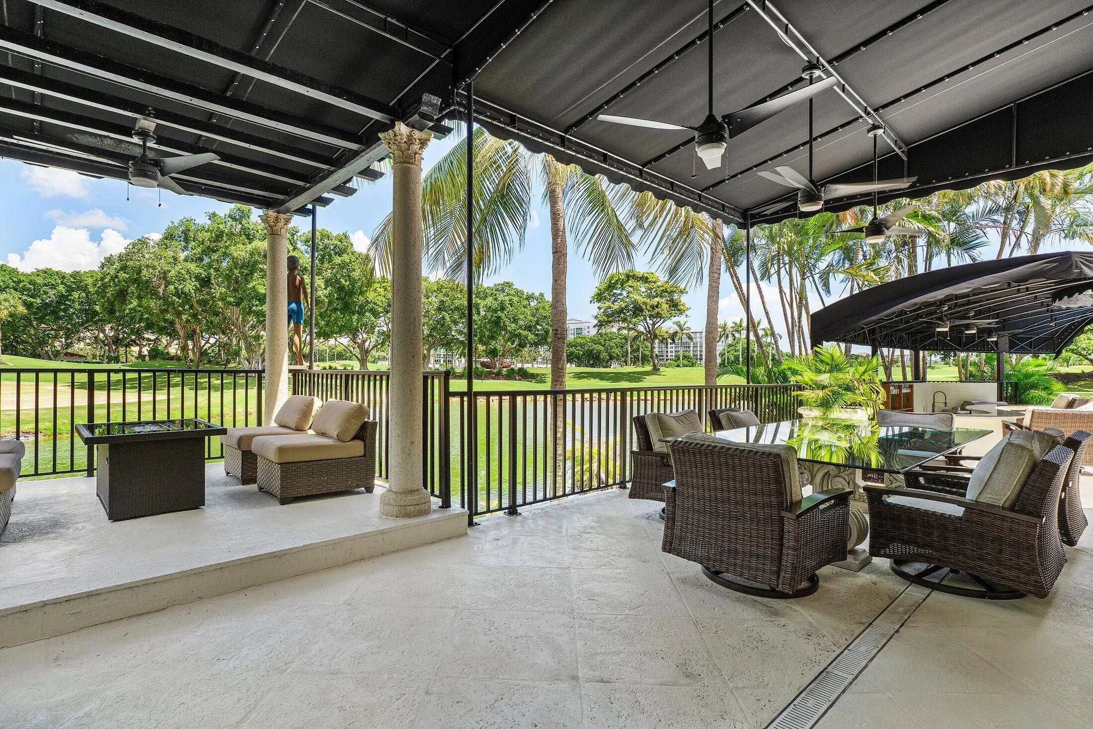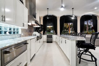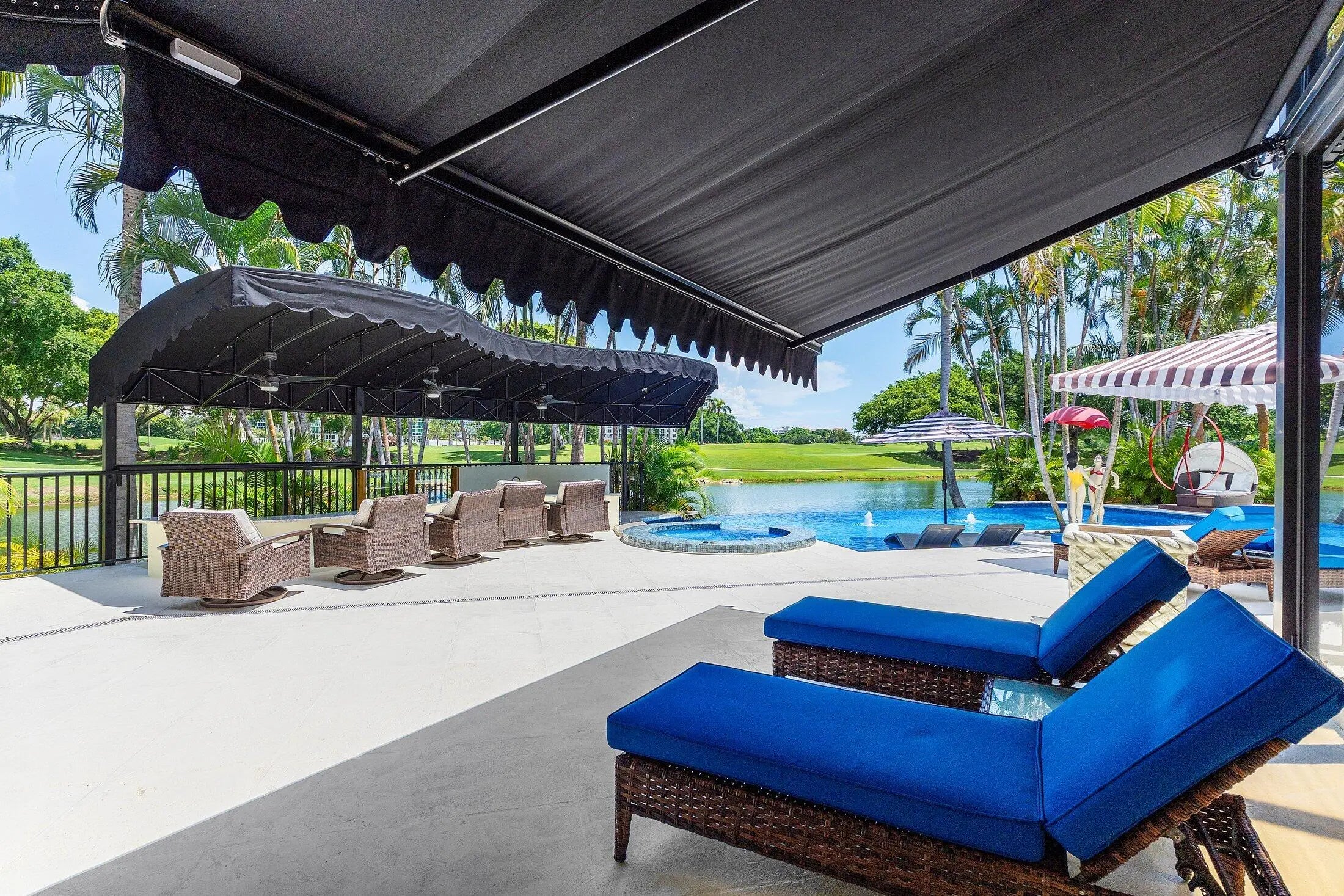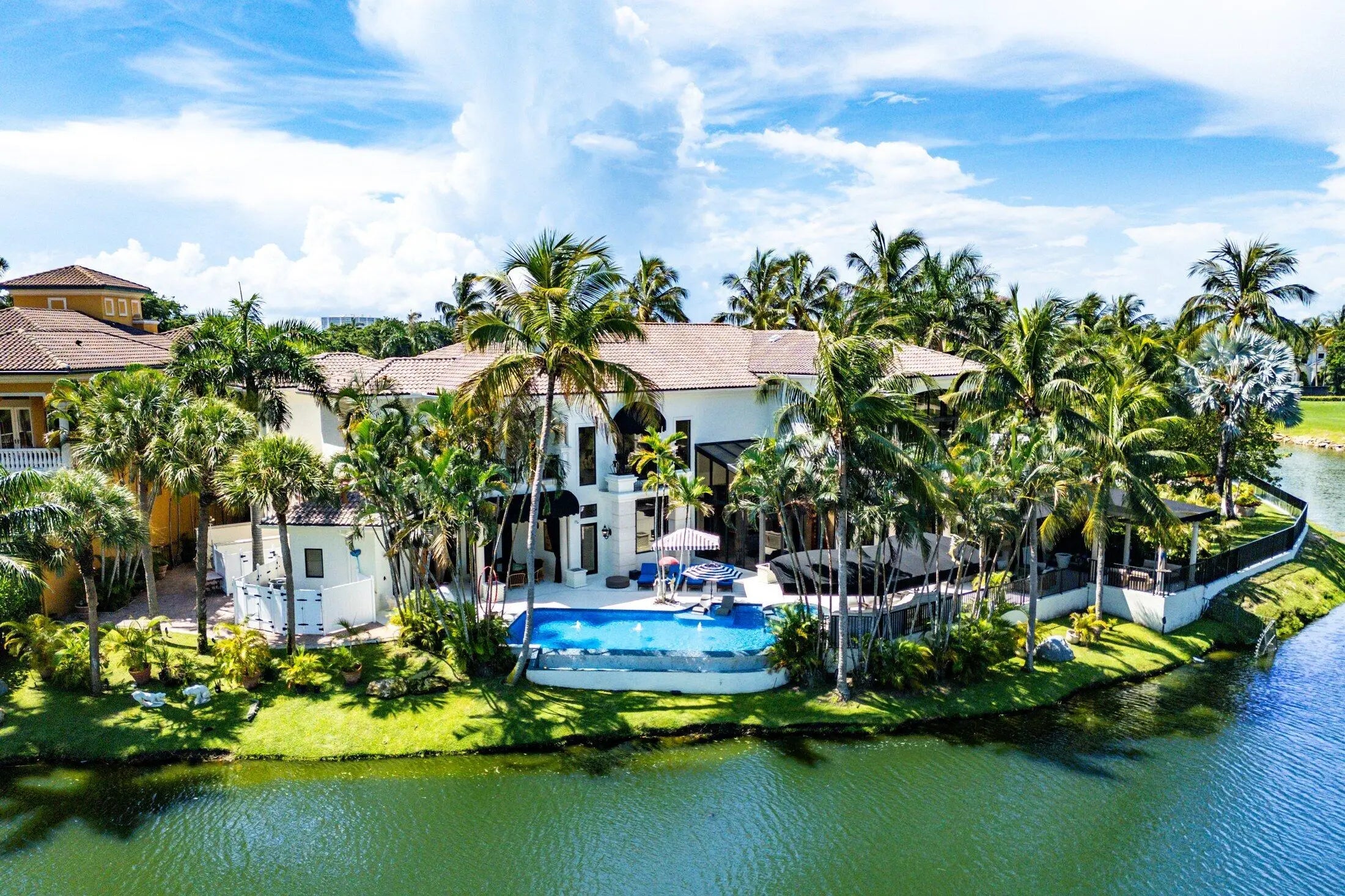 A Masterpiece Within the Iconic Grounds of The Boca Raton. Set behind the gates of the ultra-exclusive Mizner Lake Estates, nestled within the iconic grounds of The Boca Raton Hotel & Club, this extraordinary estate is a masterclass in timeless luxury and architectural sophistication. Encompassing 8,125 square feet under air and 11,285 total square feet, the residence overlooks a lake and renowned championship golf course. Designed for effortless entertaining and refined everyday living, the resort-style outdoor retreat centers around an infinity-edge, sun-drenched pool with a sunken bar and in-water stools. The expansive summer kitchen features a 50-foot bar, built-in grill, and commercial-grade ice maker. Numerous covered lounge areas with motorized overhang awnings provide comfort and shade, while a private lakefront overhang delivers mesmerizing views of the 8th green. Every element has been curated to take full advantage of the breathtaking water and golf course vistas. Inside, the home is equally impressive. The gourmet kitchen is a culinary dream, outfitted with top-of-the-line appliances, a large walk-in pantry, and a separate butler's pantry. A custom hand-crafted hidden door reveals the formal dining room a striking architectural feature that adds a sense of intrigue and design pedigree. The estate features five bedrooms and seven and a half baths, including a showstopping primary suite with dual spa-style baths and boutique-style closets for the ultimate private sanctuary. Included in the bedroom count is a detached guest house as well as a private-entry suite with balcony access perfect for hosting guests or multi-generational living. A richly appointed home office, with its own ensuite bathroom, completes the versatile layout. An attached, oversized three-car garage offers air-conditioned comfort and ample room for luxury vehicles and storage. A separate, detached, fourth garage, also air-conditioned, provides additional flexibility with space ideal for a home gym, private office, or workshop. Every element of this estate has been thoughtfully curated to deliver an unparalleled lifestyle experience in one of Boca Raton's most prestigious enclaves. Seller has updated home to a smart home and the home has a full house generator.