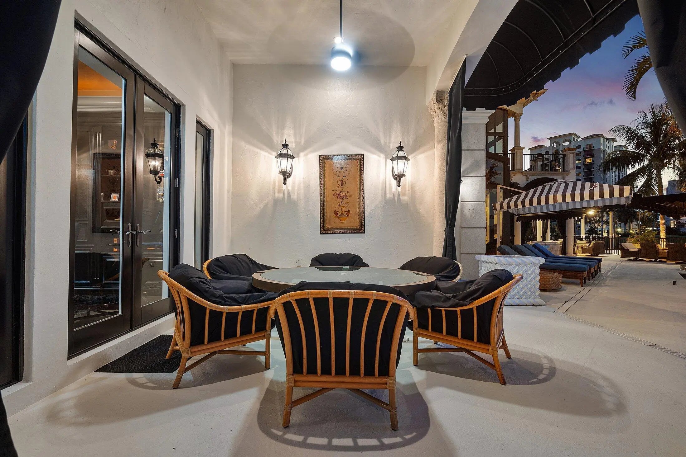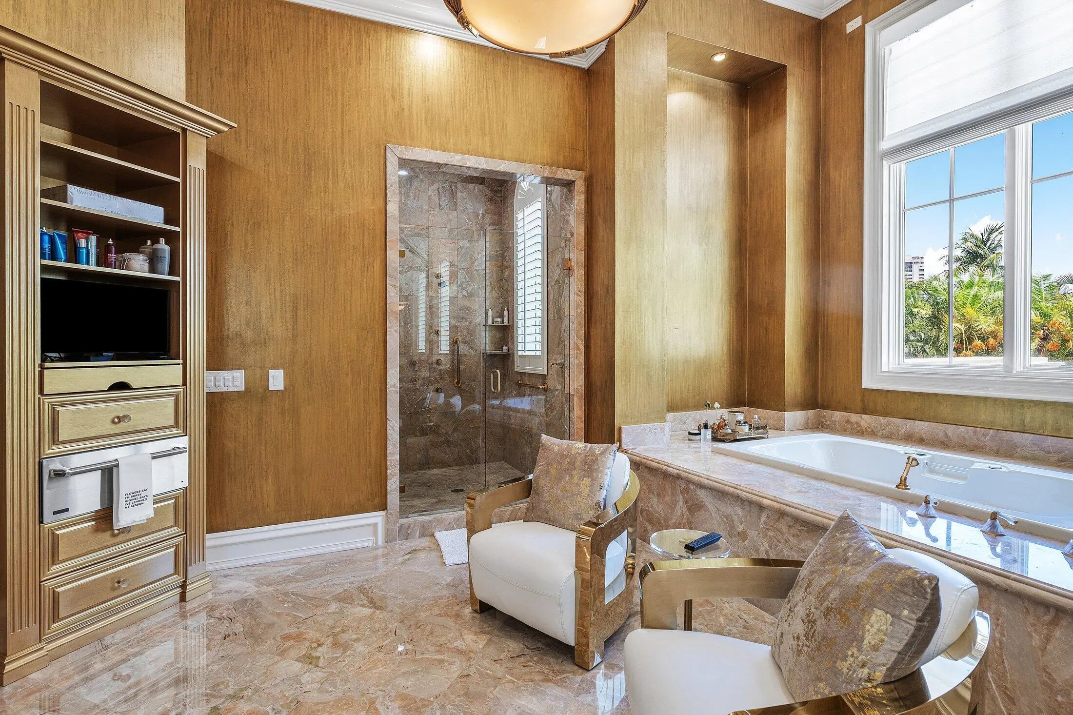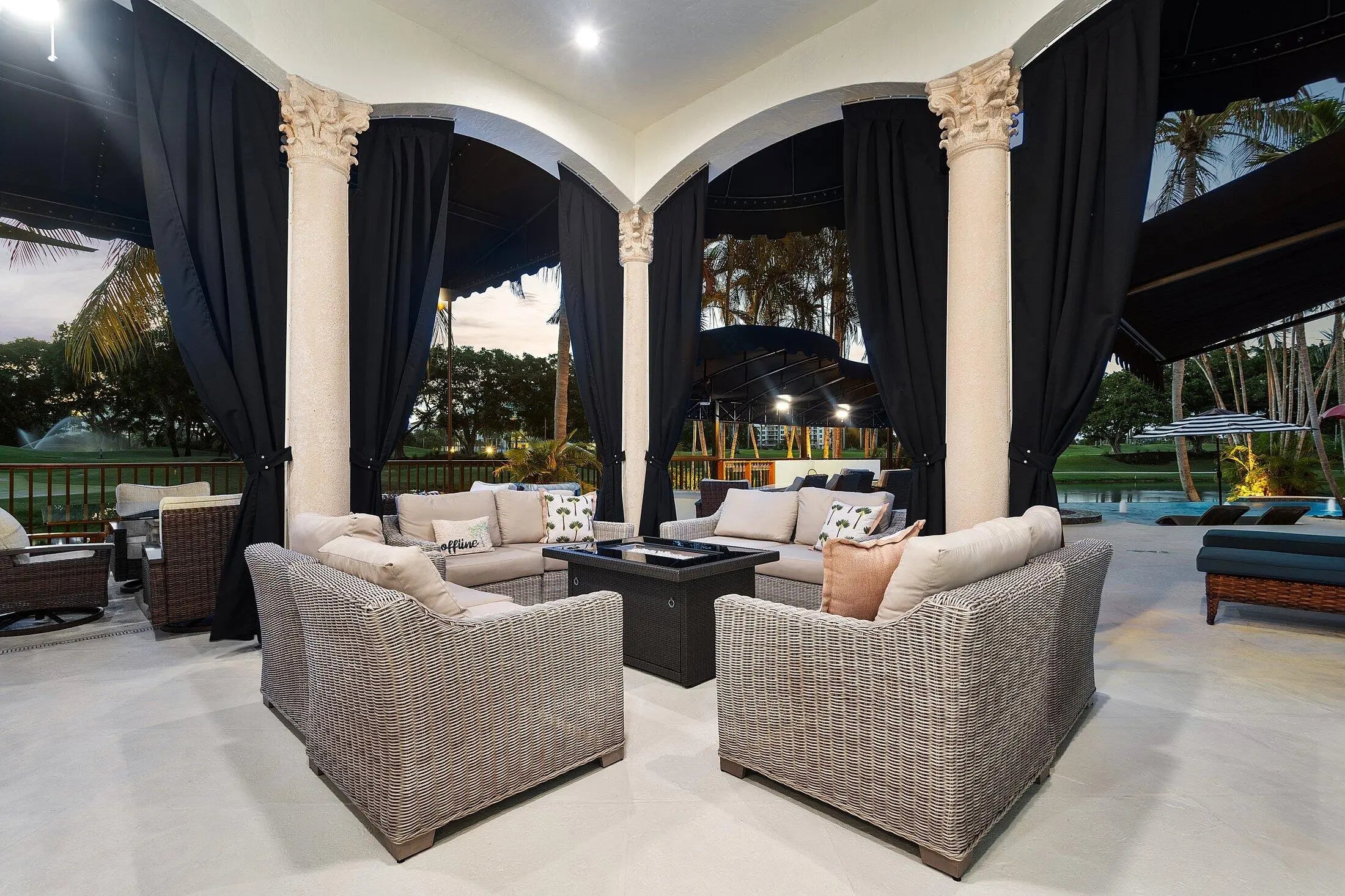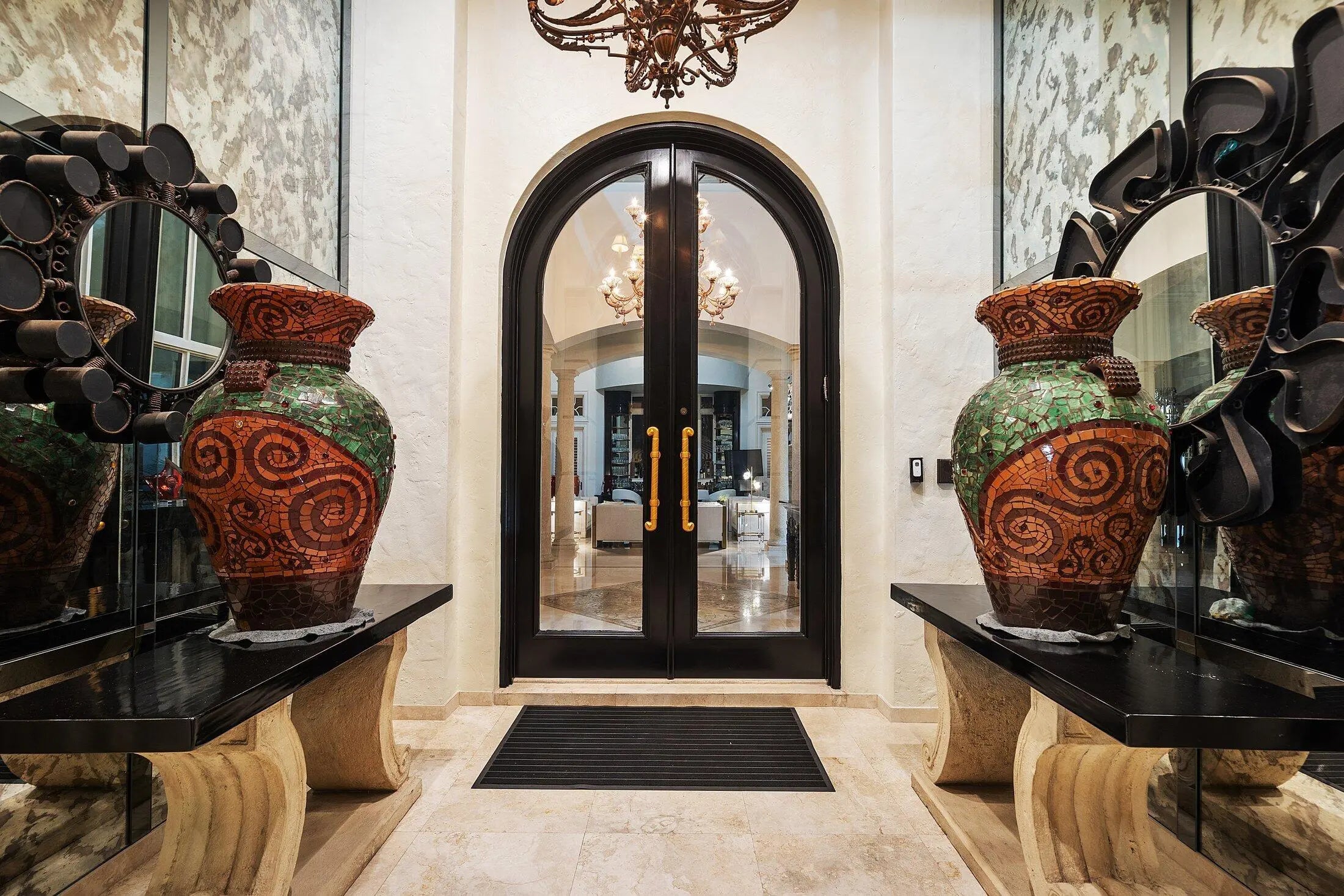 A Masterpiece Within the Iconic Grounds of The Boca Raton. Set behind the gates of the ultra-exclusive Mizner Lake Estates, nestled within the iconic grounds of The Boca Raton Hotel & Club, this extraordinary estate is a masterclass in timeless luxury and architectural sophistication. Encompassing 8,125 square feet under air and 11,285 total square feet, the residence overlooks a lake and renowned championship golf course. Designed for effortless entertaining and refined everyday living, the resort-style outdoor retreat centers around an infinity-edge, sun-drenched pool with a sunken bar and in-water stools. The expansive summer kitchen features a 50-foot bar, built-in grill, and commercial-grade ice maker. Numerous covered lounge areas with motorized overhang awnings provide comfort and shade, while a private lakefront overhang delivers mesmerizing views of the 8th green. Every element has been curated to take full advantage of the breathtaking water and golf course vistas. Inside, the home is equally impressive. The gourmet kitchen is a culinary dream, outfitted with top-of-the-line appliances, a large walk-in pantry, and a separate butler's pantry. A custom hand-crafted hidden door reveals the formal dining room a striking architectural feature that adds a sense of intrigue and design pedigree. The estate features five bedrooms and seven and a half baths, including a showstopping primary suite with dual spa-style baths and boutique-style closets for the ultimate private sanctuary. Included in the bedroom count is a detached guest house as well as a private-entry suite with balcony access perfect for hosting guests or multi-generational living. A richly appointed home office, with its own ensuite bathroom, completes the versatile layout. An attached, oversized three-car garage offers air-conditioned comfort and ample room for luxury vehicles and storage. A separate, detached, fourth garage, also air-conditioned, provides additional flexibility with space ideal for a home gym, private office, or workshop. Every element of this estate has been thoughtfully curated to deliver an unparalleled lifestyle experience in one of Boca Raton's most prestigious enclaves. Seller has updated home to a smart home and the home has a full house generator.