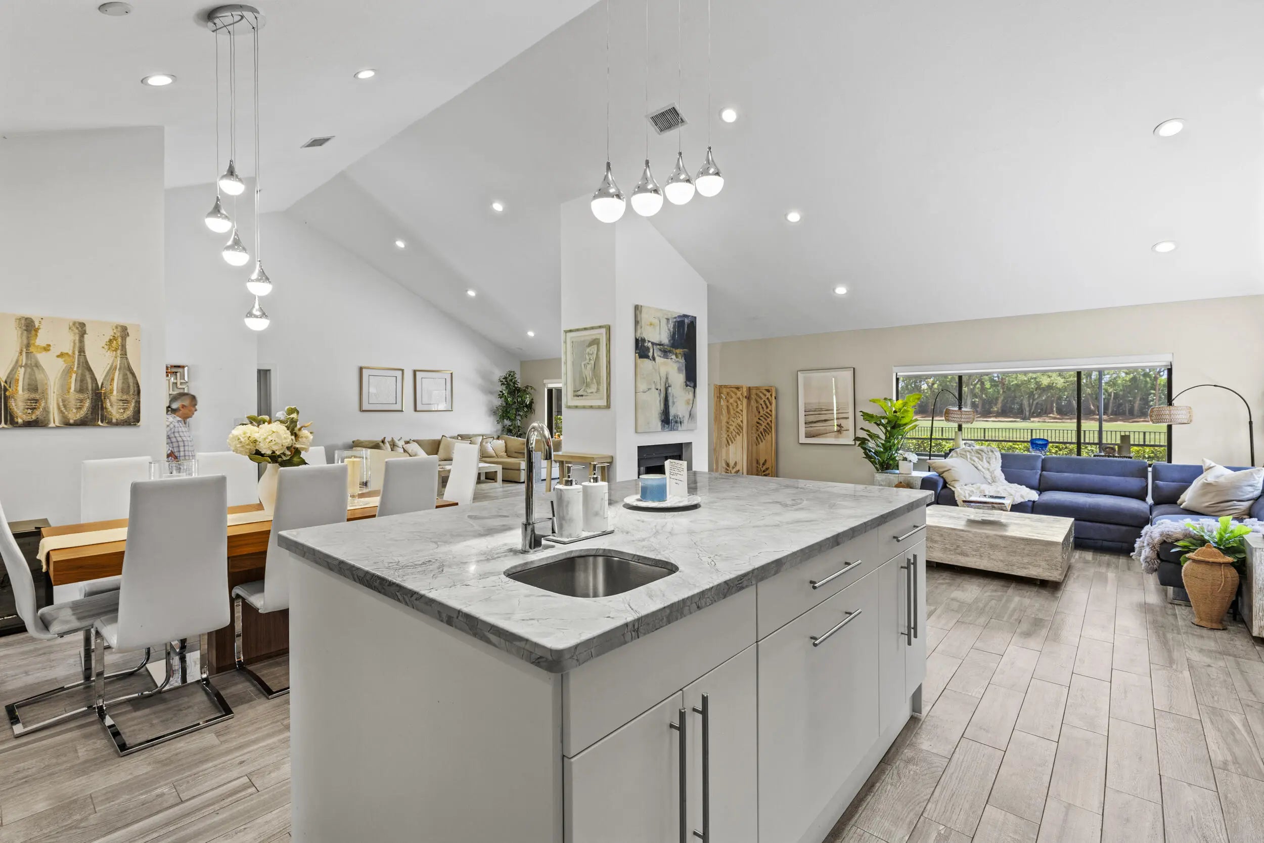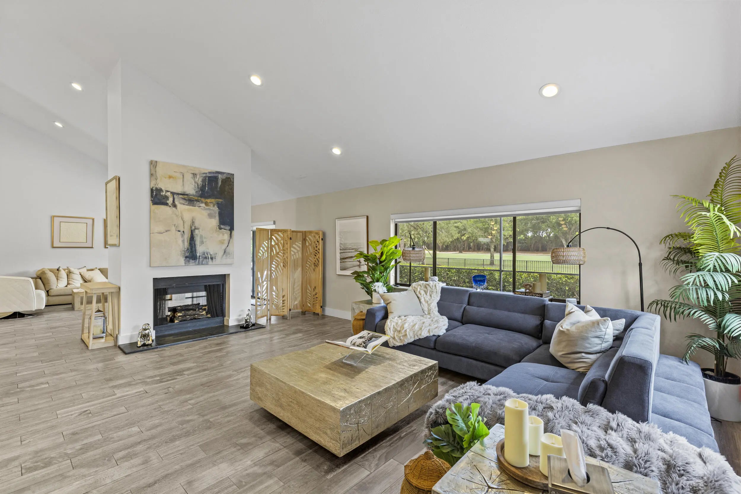 Best lot in Boca Woods Country Club with expansive golf-course views and a fenced rear yard. This beautifully updated home offers over 2,400 sq. ft. with 3 bedrooms, 2.5 baths, and bright, open living spaces. Enjoy sweeping views of Hole 3 on the recently remodeled championship golf course from the large screened patio. High ceilings, a contemporary kitchen with quartz countertops, and seamless indoor-outdoor flow enhance everyday living. One bedroom is currently a luxury dressing suite and can easily convert back. Gated community with two championship courses, a stunning renovated clubhouse, and an impressive full-scale fitness center. Ready for a quick close before the club capital contribution/equity buy in goes up on March 1st to 150K. " Two championship golf courses " Recently remodeled championship course (Hole 3 views) " Beautifully renovated luxury clubhouse " Expansive, full-scale fitness center " Spa with hair & nail services, sauna, and steam rooms " Game room " Tennis & pickleball " Pool & dining " 24-hour gated security " POA includes common area maintenance, Hotwire cable & internet, and alarm monitoring " Pool plans available upon request