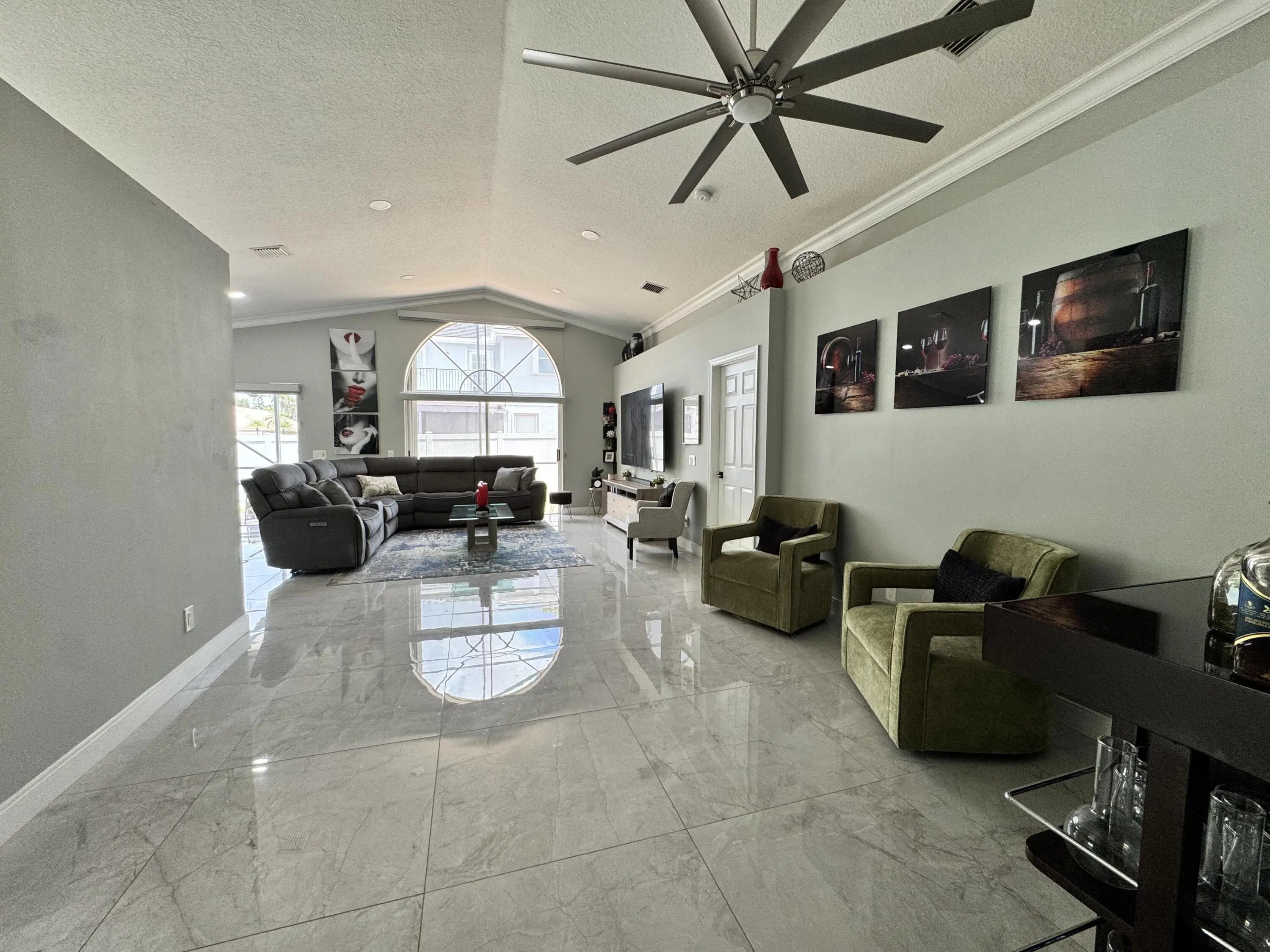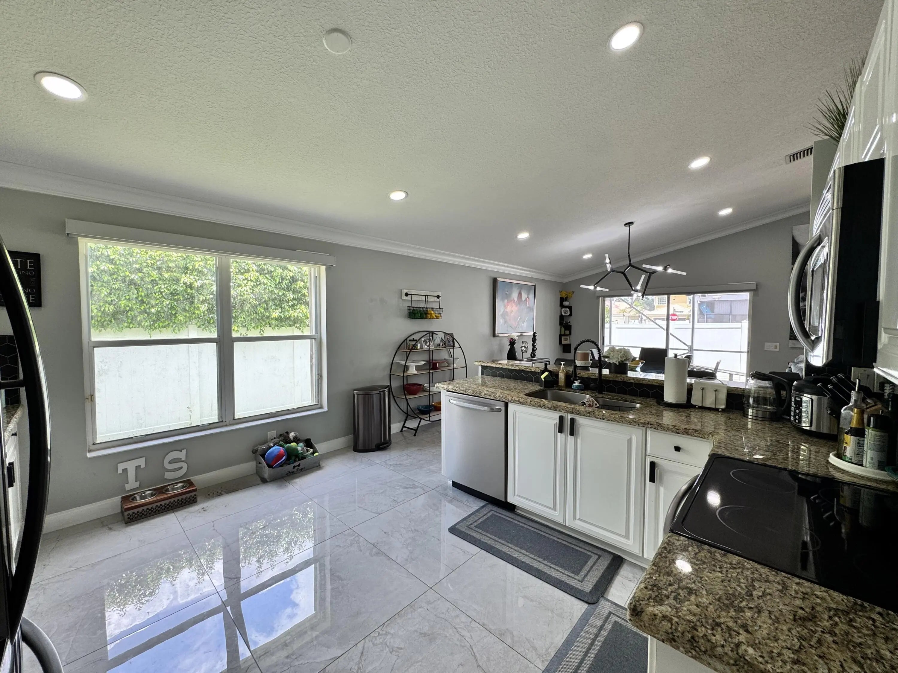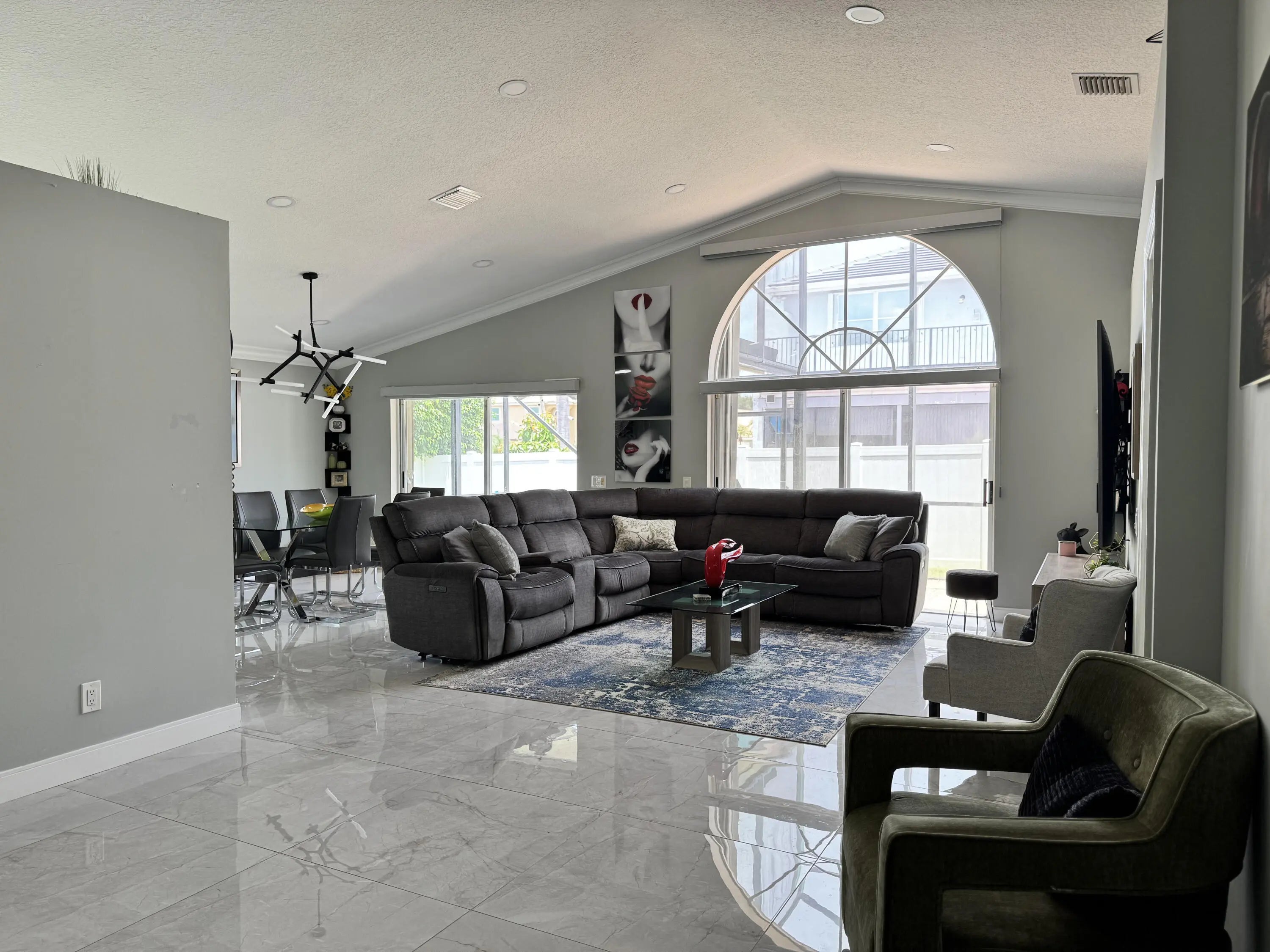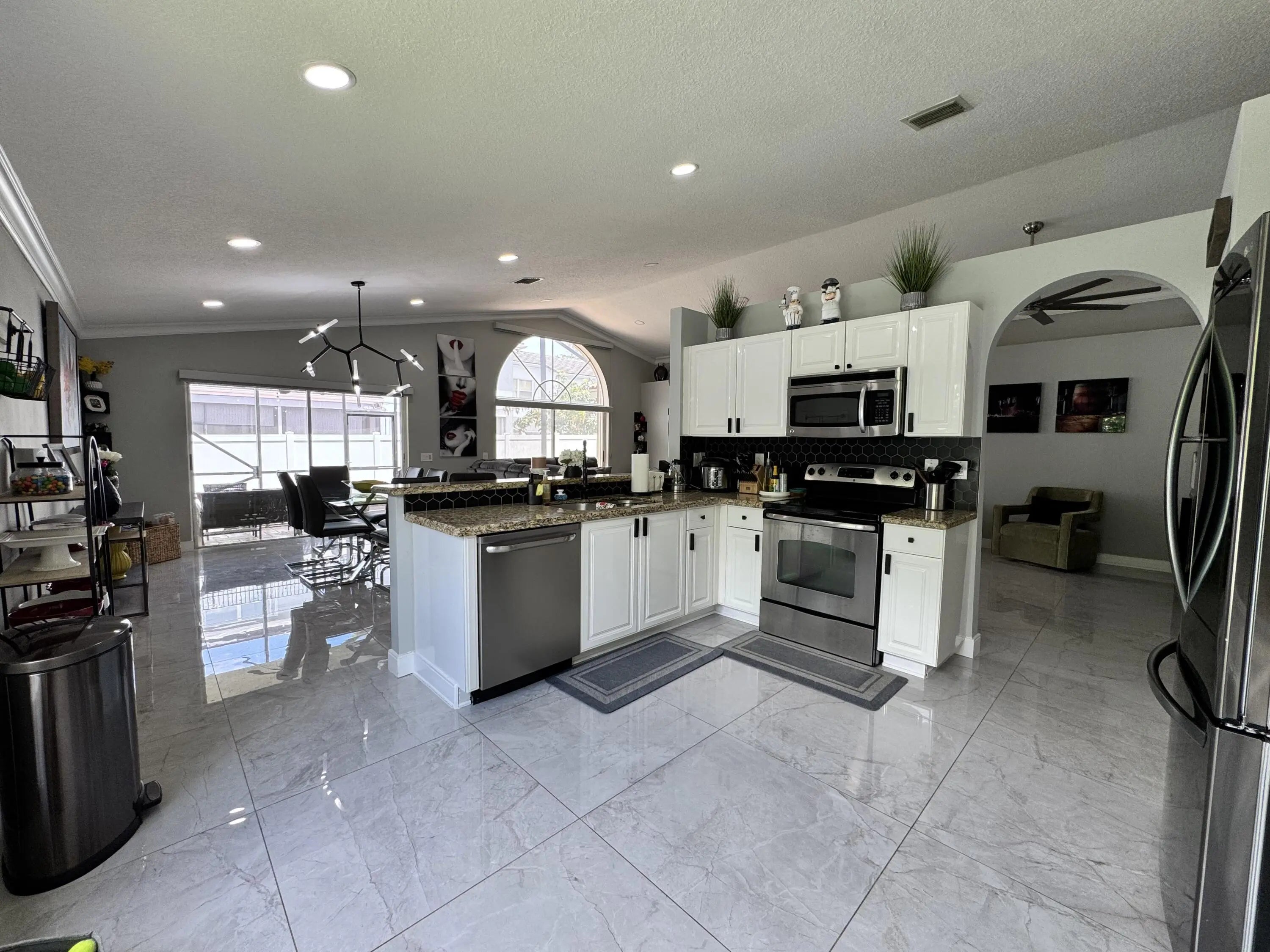 Completely remodeled 3-bedroom, 2-bath single-story home with a 2-car garage in the highly desirable gated community of Symphony Bay. This light and bright home features vaulted ceilings, a spacious open layout, and a split floor plan. Situated on a corner lot with a screened patio, lanai, and grassy yard—perfect for outdoor living. The updated kitchen boasts granite countertops, crisp white cabinets, tiled backsplash, and stainless-steel appliances. Recessed lighting throughout adds a modern touch. The luxurious primary suite includes tray ceilings, walk-in closet, dual sinks, soaking tub, and separate shower. Full accordion shutter storm protection. Enjoy resort-style amenities: pool, tennis, basketball, pickleball, playground, gym, and clubhouse. Zoned for A-rated schools and just steps from Publix and The Reserve at Boca shopping center with easy access to highways. Tenant to pay Electric, Water, Cable, Internet & Renters Insurance.
