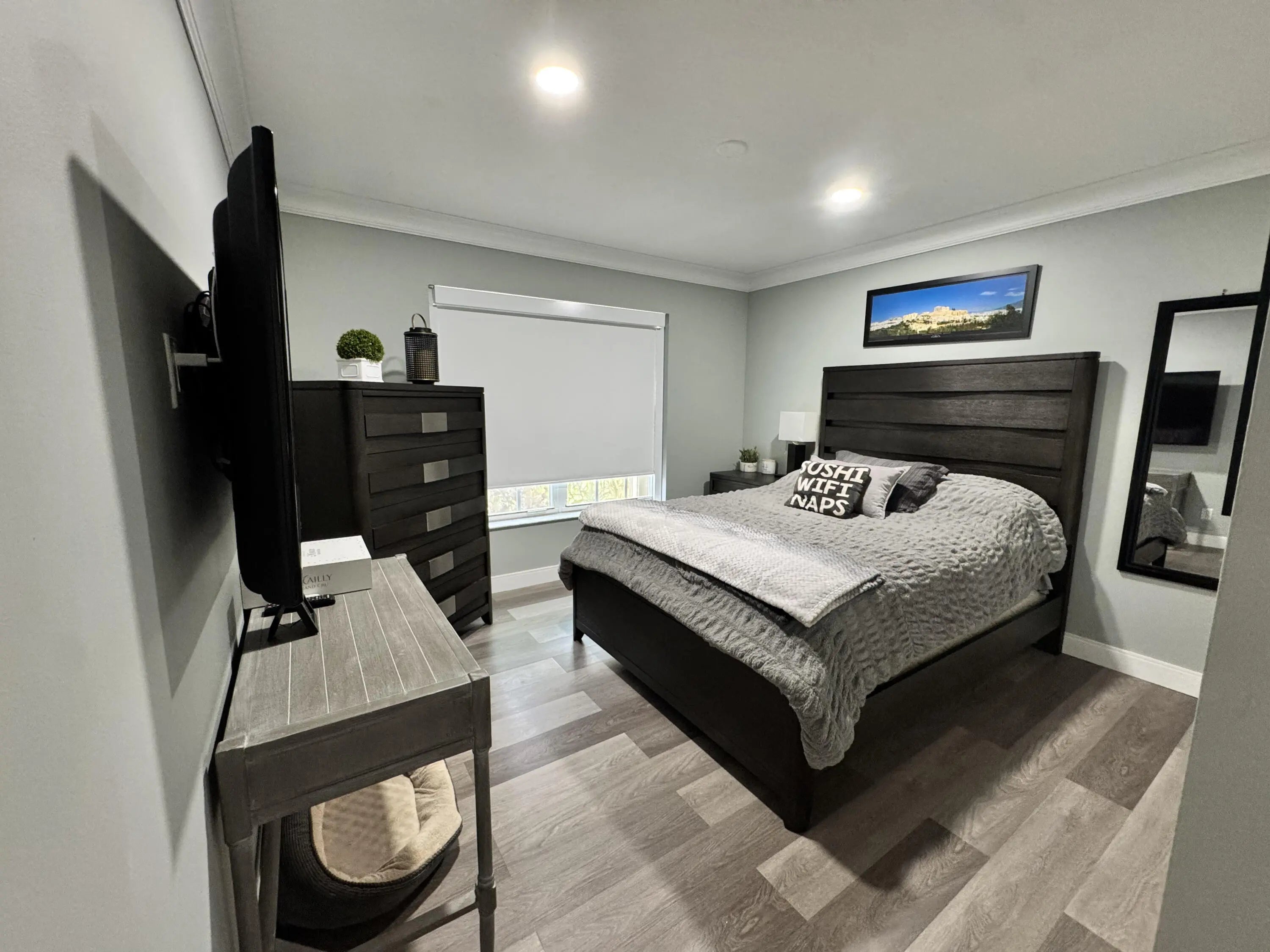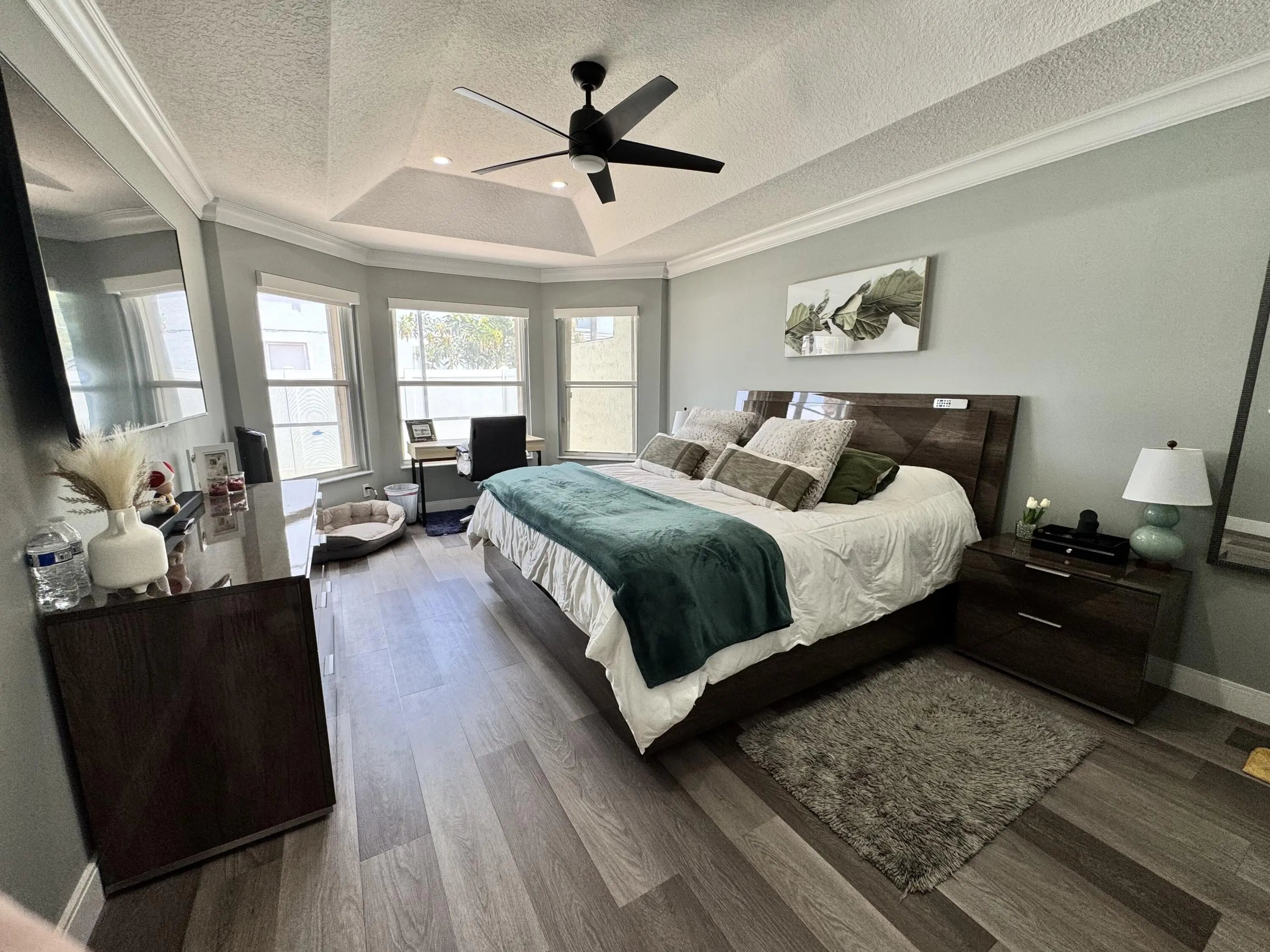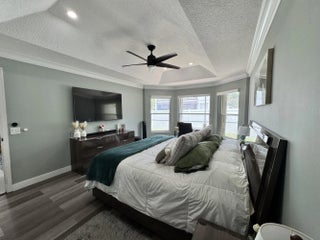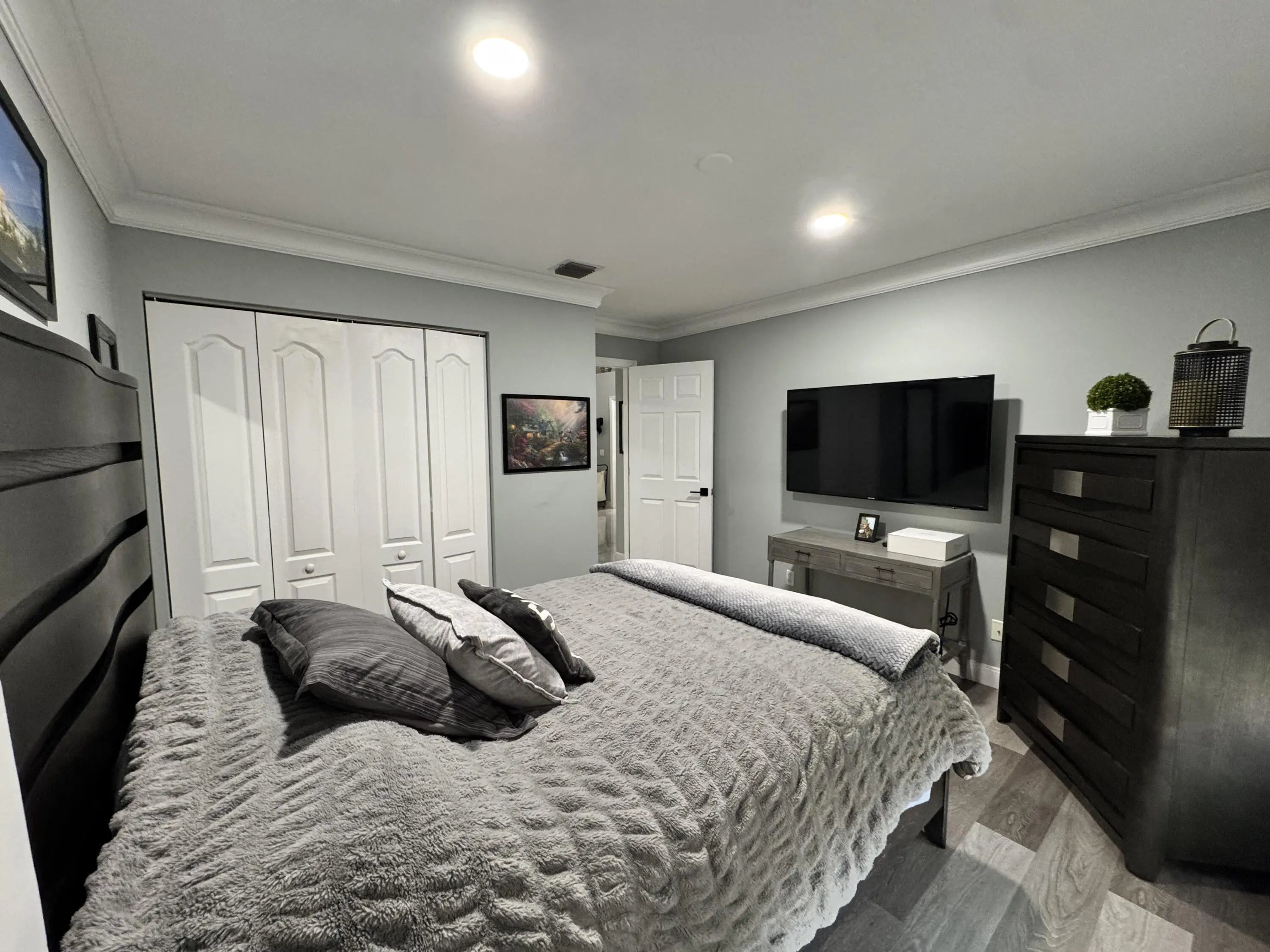 Completely remodeled 3-bedroom, 2-bath single-story home with a 2-car garage in the highly desirable gated community of Symphony Bay. This light and bright home features vaulted ceilings, a spacious open layout, and a split floor plan. Situated on a corner lot with a screened patio, lanai, and grassy yard—perfect for outdoor living. The updated kitchen boasts granite countertops, crisp white cabinets, tiled backsplash, and stainless-steel appliances. Recessed lighting throughout adds a modern touch. The luxurious primary suite includes tray ceilings, walk-in closet, dual sinks, soaking tub, and separate shower. Full accordion shutter storm protection. Enjoy resort-style amenities: pool, tennis, basketball, pickleball, playground, gym, and clubhouse. Zoned for A-rated schools and just steps from Publix and The Reserve at Boca shopping center with easy access to highways. Tenant to pay Electric, Water, Cable, Internet & Renters Insurance.