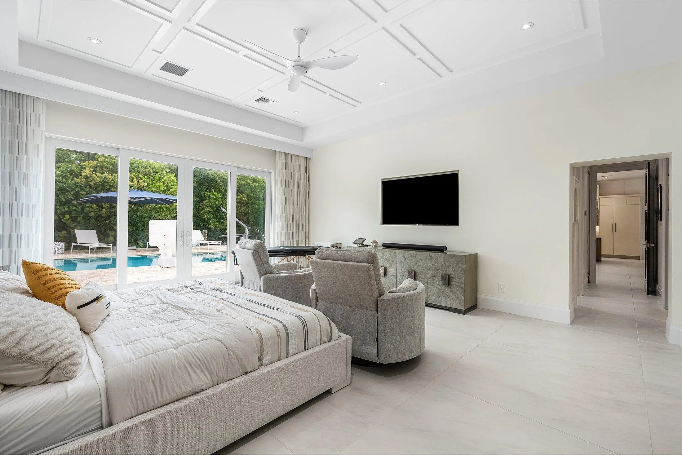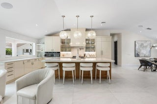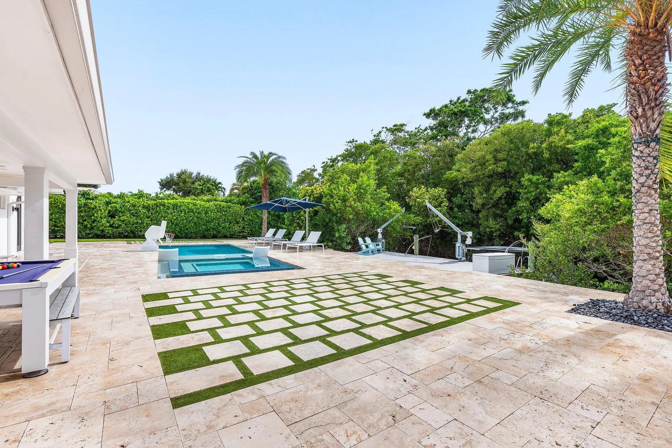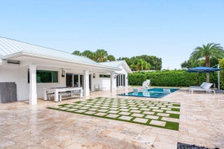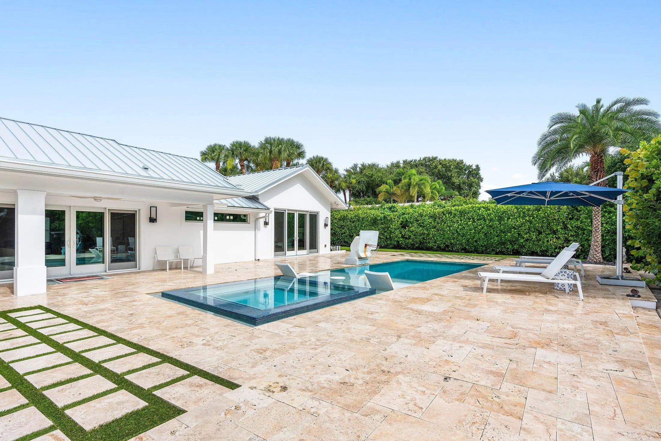 Completely Renovated Waterfront Estate in Hidden Key 5 Bedrooms | 4.5 Baths | Guest House | 146' of Waterfront Located in the prestigious, gated enclave of Hidden Key, this exceptional residence was fully renovated in 2022, including the addition of a luxurious primary suite. With 5 bedrooms, 4.5 bathrooms, and a thoughtfully designed 2-bedroom guest house, the home offers both space and flexibility for family, guests, or multigenerational living. Every detail has been elevated—from the new roof, HVAC systems, electrical, and plumbing to the raised 12-foot ceilings with new trusses, creating a bright, open interior that feels both expansive and refined. Designed for the discerning buyer, the home features Miele appliances, custom solid wood cabinetry, quartz countertops throughout. The expansive outdoor area is your private retreat, complete with a saltwater pool with sun shelf, a 16-person spa, and a brand-new outdoor kitchen and barperfect for entertaining in style. Enjoy 146 feet of private canal frontage, a new synthetic dock ideal for a boat up to 22 feet, and no fixed bridges to the Intracoastaloffering seamless access to open water. With no HOA fees, gated privacy, and a prime location just minutes from world-class beaches, dining, golf, and shopping, this immaculate property offers the best of the Florida lifestyleelegantly and effortlessly.