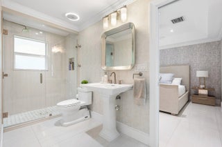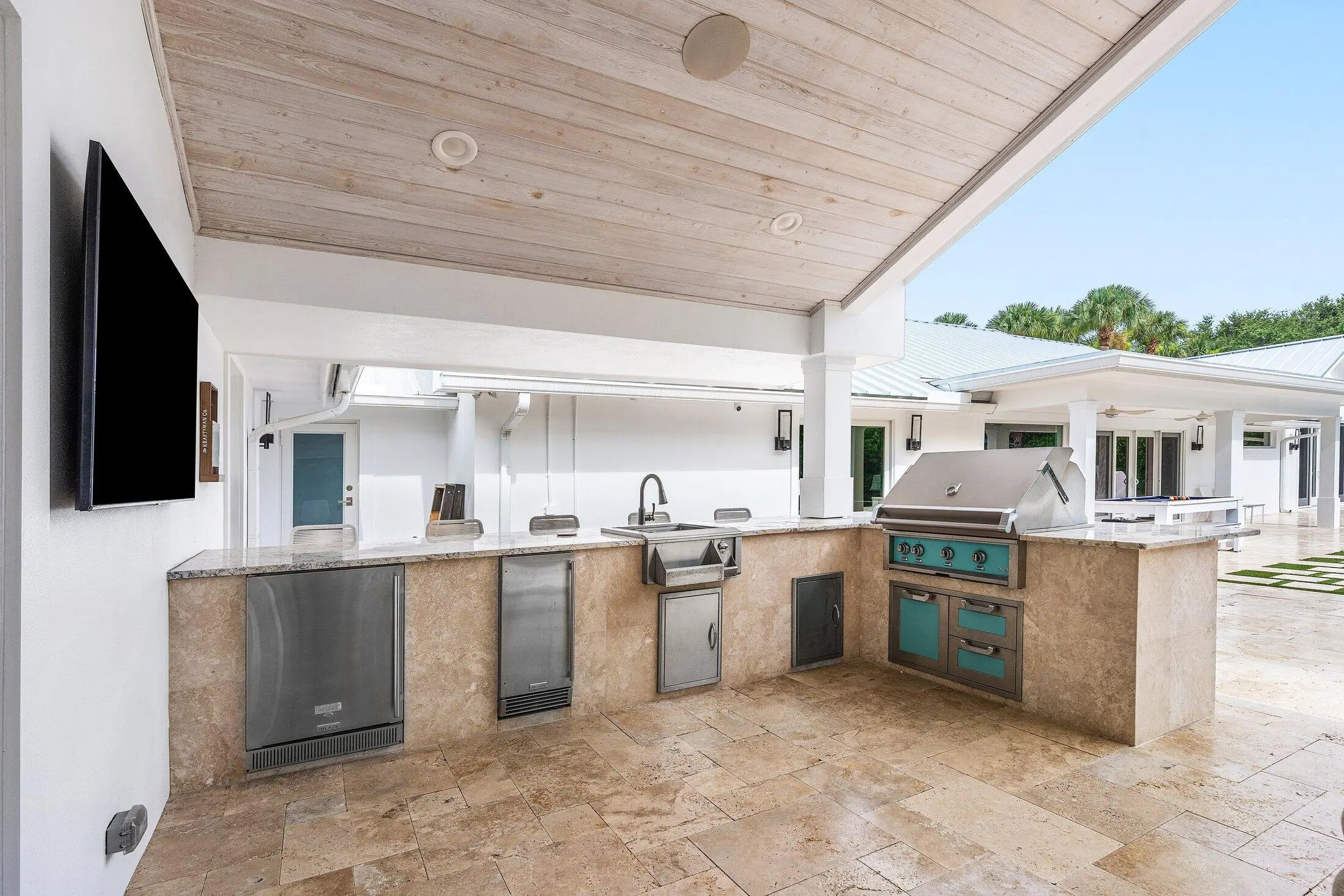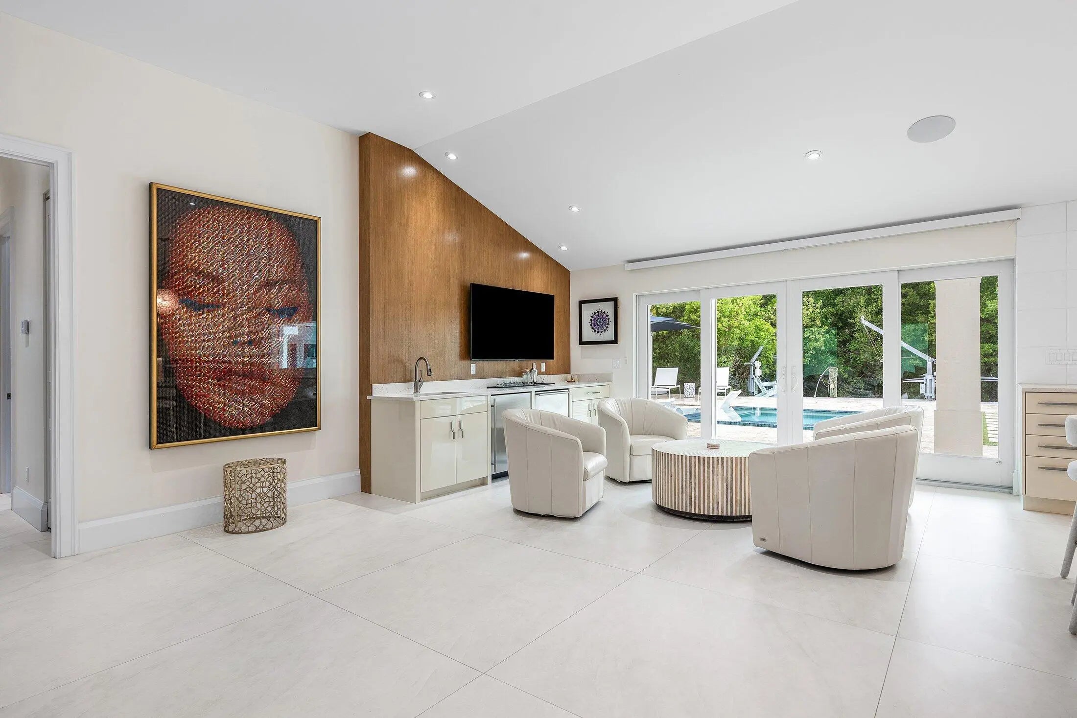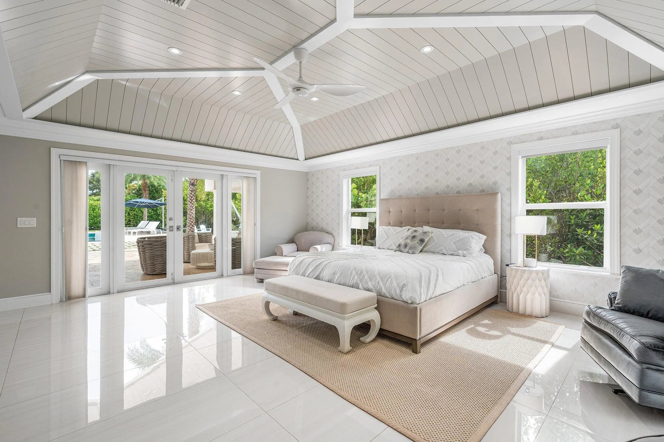 Completely Renovated Waterfront Estate in Hidden Key 5 Bedrooms | 4.5 Baths | Guest House | 146' of Waterfront Located in the prestigious, gated enclave of Hidden Key, this exceptional residence was fully renovated in 2022, including the addition of a luxurious primary suite. With 5 bedrooms, 4.5 bathrooms, and a thoughtfully designed 2-bedroom guest house, the home offers both space and flexibility for family, guests, or multigenerational living. Every detail has been elevated—from the new roof, HVAC systems, electrical, and plumbing to the raised 12-foot ceilings with new trusses, creating a bright, open interior that feels both expansive and refined. Designed for the discerning buyer, the home features Miele appliances, custom solid wood cabinetry, quartz countertops throughout. The expansive outdoor area is your private retreat, complete with a saltwater pool with sun shelf, a 16-person spa, and a brand-new outdoor kitchen and barperfect for entertaining in style. Enjoy 146 feet of private canal frontage, a new synthetic dock ideal for a boat up to 22 feet, and no fixed bridges to the Intracoastaloffering seamless access to open water. With no HOA fees, gated privacy, and a prime location just minutes from world-class beaches, dining, golf, and shopping, this immaculate property offers the best of the Florida lifestyleelegantly and effortlessly.
