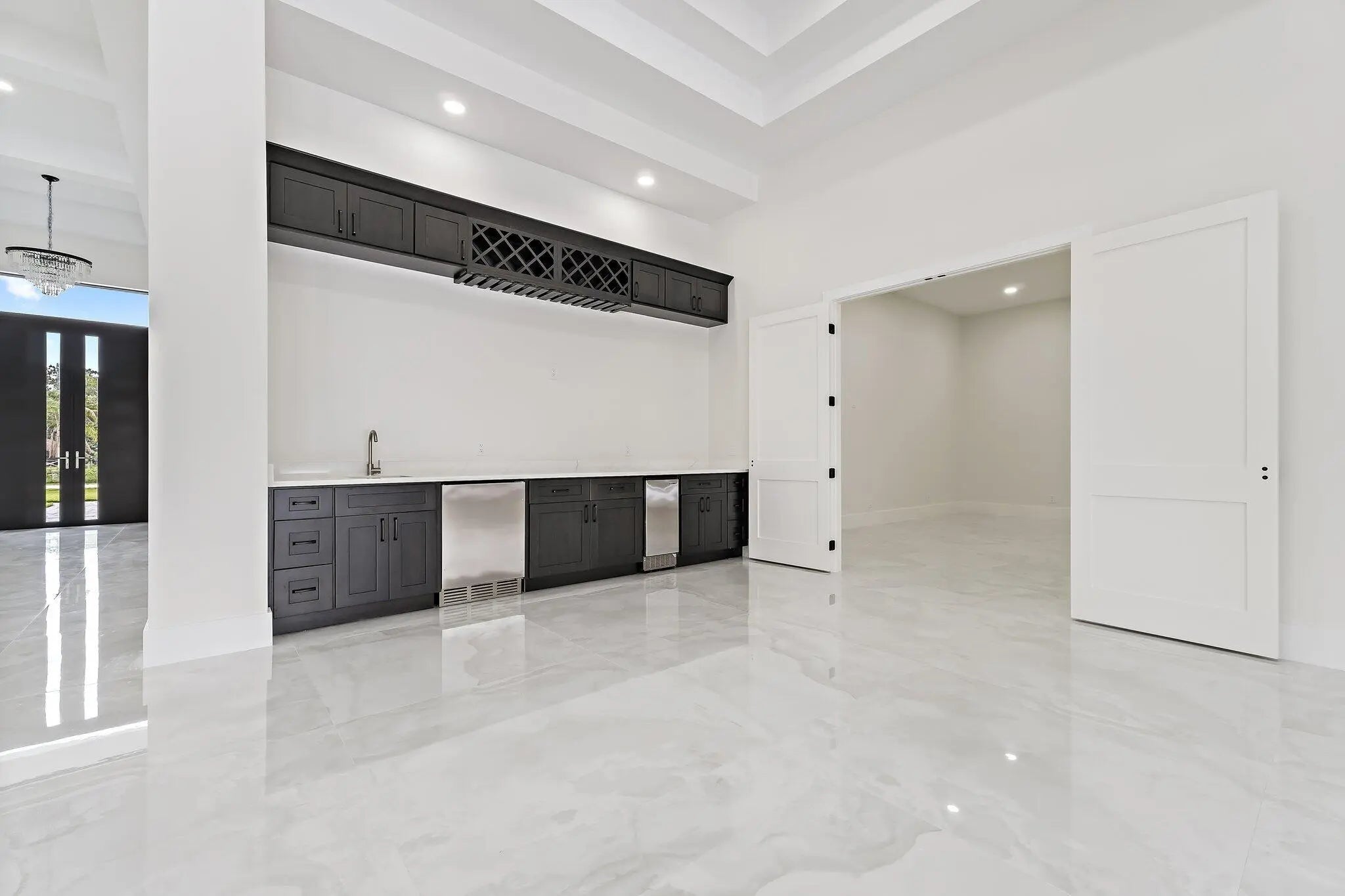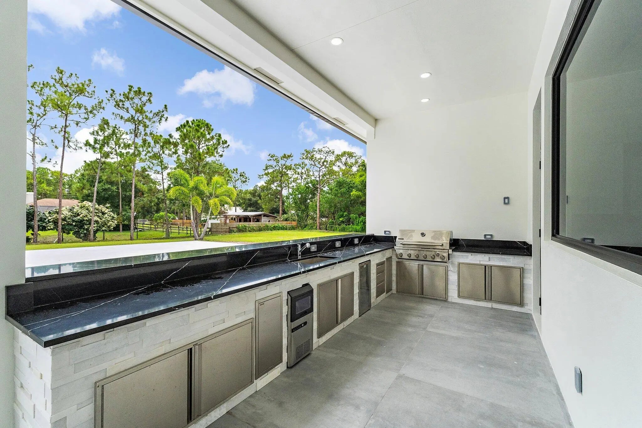 Brand-new 2025 luxury estate on 2.5 acres in Jupiter Farms. Offering 8,230 sq ft of living space + guest house, 6 bedrooms, 8 full & 2 half baths, and over 10,900 total sq ft under roof. Built with uncompromising quality: steel-reinforced CBS construction, impact glass, charcoal metal roof, and foam insulation. Interiors feature 48x48 marble-look tile, soaring 10-16 ft ceilings, custom closets, and level 5 finishes. Gourmet kitchen with dual refrigerators, double ovens, pot filler, wet bar, and 10' cabinetry. Resort-style pool with 6,250 sq ft marble deck, summer kitchen, sauna, gym, billiards, media room, and wine cellar. Guest house with full kitchen & living. Horses permitted, no HOA. A rare opportunity for modern luxury on acreage in Jupiter. Brand-new 2025 luxury estate on 2.5 acres in Jupiter Farms. With over 8,200 sq ft of living space (10,900+ total), this one-of-a-kind property delivers both scale and sophistication. Inside, soaring 10-16 ft ceilings, 48"x48" porcelain tile, and 8' solid-core doors set a refined tone. The gourmet kitchen is a showpiece: dual Samsung bespoke refrigerators, two ranges, pot filler, 10' cabinetry, quartz counters, and a walk-in pantryanchored by a wet bar with wine fridge and ice maker. Flex spaces abound: media room, gym with sauna, executive office, billiards/family lounge, and even a dedicated dog wash. Each of the 5 ensuite bedrooms offers marble bathrooms and custom closets; the primary suite features dual walk-ins, a spa-style shower, and freestanding tub. A self-contained 1-bedroom guest house with its own entrance, kitchen, laundry, and living room makes this property ideal for multigenerational living, extended guests, or private work quarters. Outdoor living rivals a resort: heated saltwater pool & spa, 6,250 sq ft marble pool deck, full summer kitchen, and a 14' covered patio for entertaining. A 4-car garage, 7,500 sq ft driveway, and 2,000 sq ft of paver walkways provide ample parking and function. Practical features include foam insulation, Daikin high-SEER AC units, Rheem water heaters, full impact glass, reverse-osmosis water system, and ethernet wiring in 12 locations. Horses and RVs welcomeno HOA. All of this just minutes from A-rated schools, Riverbend Park, shopping, dining, and Jupiter's beaches. Luxury, lifestyle, and acreage freedom12850 152nd Street N is Jupiter Farms at its absolute best.