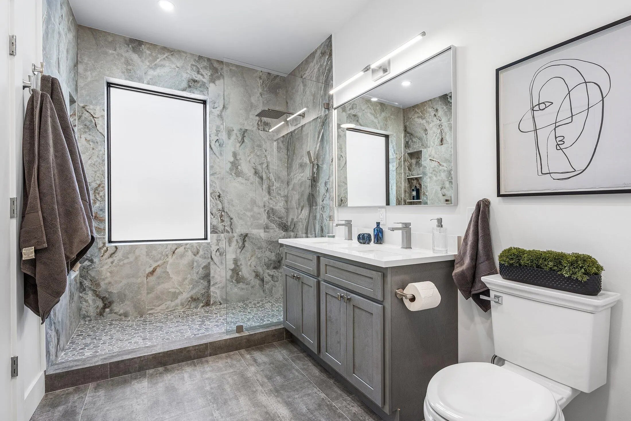 Welcome to your Dream Home in highly sought after gated Estancia South community. This completely renovated and expanded 7 Bedroom and 4 1/2 Bath house is ideally located for walking to shops, restaurants and places of worship. It offers the perfect combination of convenience, community and modern luxury. Kosher kitchen double sink and dishwasher. Designed with functionality and elegance in mind. Abundance of natural light. A split floor-plan, two primary suites in separate parts of the house. Custom built closets in all bedrooms. An outdoor covered kitchen including a BBQ and fridge. Newly remodeled pool with travertine Marble pool deck. Covered seating area overlooking a huge landscaped backyard, perfect for play or relaxation. LOCATION!! Brand NEW house!!