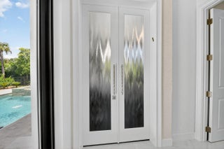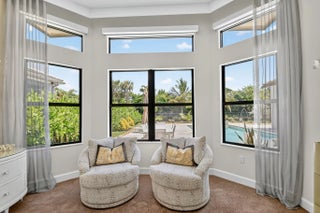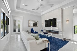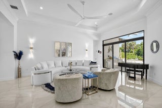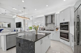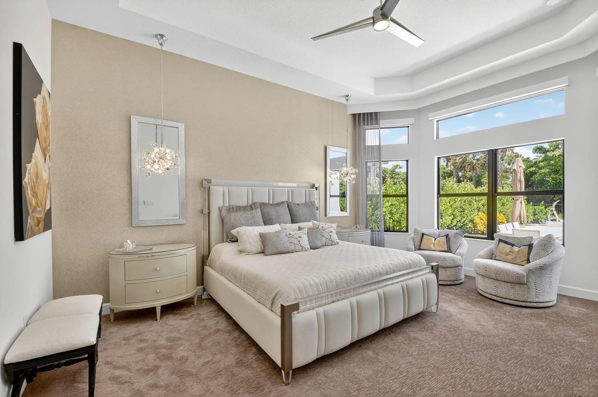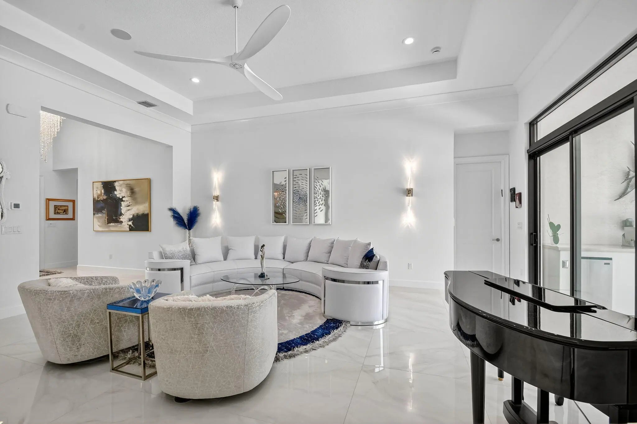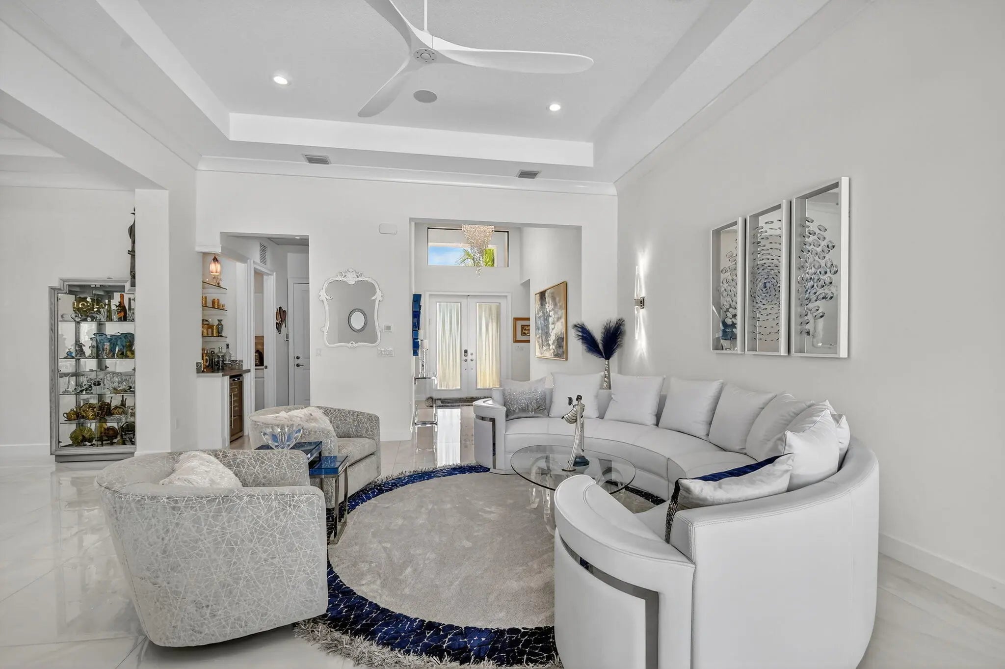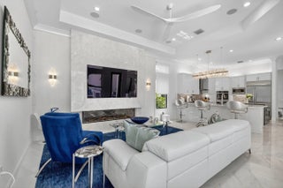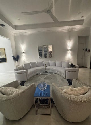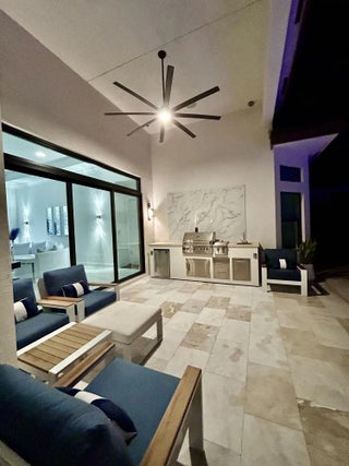 Special 1-story 4 Bedroom/4 Bath Charleston Grande Crown model is a 3,277 sqft WOW HOME in Valencia Grand !! Easy to convert to a 5bd/5bath. Move-in Ready! Live the Active country club lifestyle with NO EQUITY, NO ANNUAL DUES! SEE ATTACHED FEATURES LIST ON THIS NEARLY NEW GORGEOUS HOME -- the ONLY CROWN model with straight-in expanded 3-bay garage for easy drive-in. The backyard is a PRIVATE boutique resort, landscaped - serene with ceiling speakers for your spa or music listening pleasure. Open expanse with a courtyard feel for ultimate privacy and luxury! Step past the specialty-glass double doors and you'll see a glamorous private backyard offering magnificent pool and stone hot-tub spillover, soothing bubbler and deck fountains, an extra wide lot, beige marble patio, it's your own private paradise! The pool has a rare 5-step entry for ease on knees and kids, an in-pool walking path, a swim lane featuring sandblasted marble deck and matching artisan handrail. Front of house feels open just off the cul de sac with no house directly across the street -- a rarity in these gated communities. House comes with Natural Gas for stovetop, outdoor grill so no propane tank inconveniences. Outdoor Kitchen has sink, side-burner, storage & minifridge. High tray ceilings throughout. Features include: 36'x36" white marble-like porcelain tiles, crown molding, soaring ceilings, mini-bar, marble electric fireplace focal wall unit, designer wallpaper, and DAZZLING name-brand lighting fixtures, Arctic White glossy modern cabinets with pullouts in kitchen and all bathrooms, Walk-in Pantry with pullouts, Quartz waterfall kitchen Island, Spectacular Natural Mother-of-Pearl Silver Minibrick backsplash. Designed for Easy Entertaining at Kitchen bar or in Formal Dining Room, Eat-In Kitchen, or Outdoor Patio. GE Profile appliances. Club Room converted to 4th bedroom/home gym/office with 2 closets and Specialty Glass 96" doors, Equipped with 5-zone Sonos System throughout home inc. Surround Sound Media in Family Room. Upgraded shimmering Blue Pearl Granite Countertops in Bathrooms, Listello accent tiles, Undermount Tub with Granite Counter (for Safe & Easy Sitting on side and for entry into tub), and Framed Mirrors throughout. All Toto toilets. Crystal-like Shower handle in Main bathroom. Motorized Shades throughout. Expanded and finished 3-car garage with straight-in entry, storage cabinets and EV charger. Whole House RainSoft Water Purification System. Closet Factory systems in Main Bedroom and Garage. Home Warranty and Transferable CAC Service Contract. House vibrates incredible aura DAY AND NIGHT with natural light, magnificent chandeliers, sconces, pendants and outdoor lighting. Lighting fixture top brands are Swarovski, Allegri, Eurofase, Dale Tiffany, Modern Forms and others. The roof has been specially sealed to reduce color fade and prolong roof life. This model features a spacious laundry room and a large hidden storage room. Walkable and quick drive, closest section to clubhouse and mailboxes!!! 3-bay garage plus widened and long driveway accommodates 9 cars. A Dream Home within a Country Club Lifestyle without the fees! Landscaped for easy maintenance! Active community boasting INDOOR Pickleball courts, full tennis program, FULL restaurant, social clubs and fulltime activities director, natural gas cooktop, full service salon and spa and MORE in this 44,000 sqft modern clubhouse! Click link to see upcoming CLUB ACTIVITIES at VALENCIA GRAND! https://mailchi.mp/grsmgt/valencia-grand-clubs-6750548?e=03e2d101ad