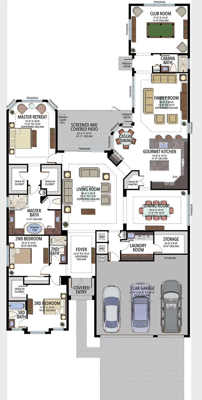 High Ceilings, Pantry, Walk-In Closet(s), Bedroom Layout - Split, Closet Cabinetry, Custom Mirrors, Pull Down Stairs, Roman Tub, Cabana Bath, Storage