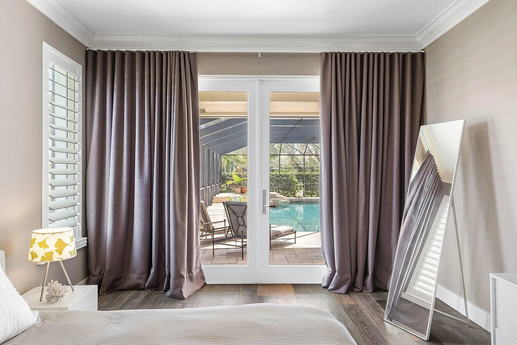 Drapes, Plantation Shutters, Arched, Sliding, Skylight(s)