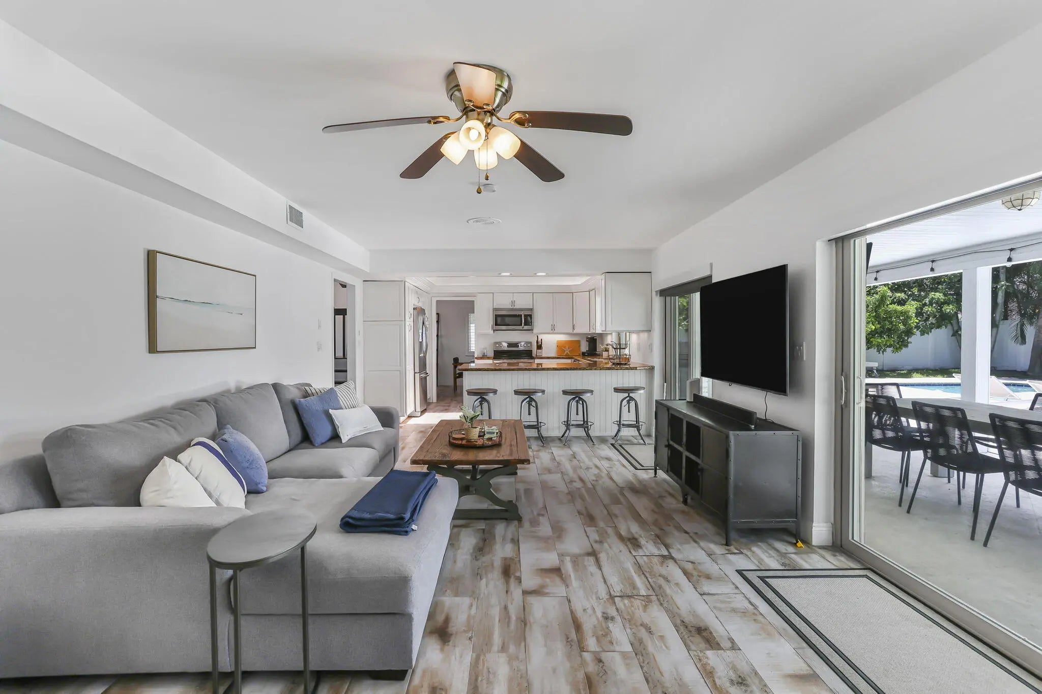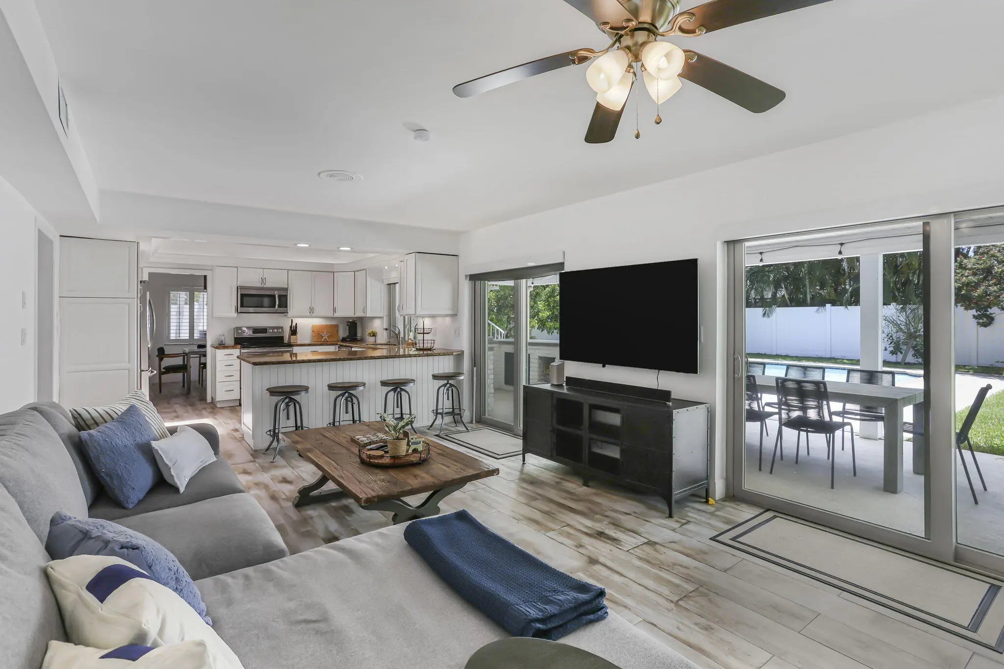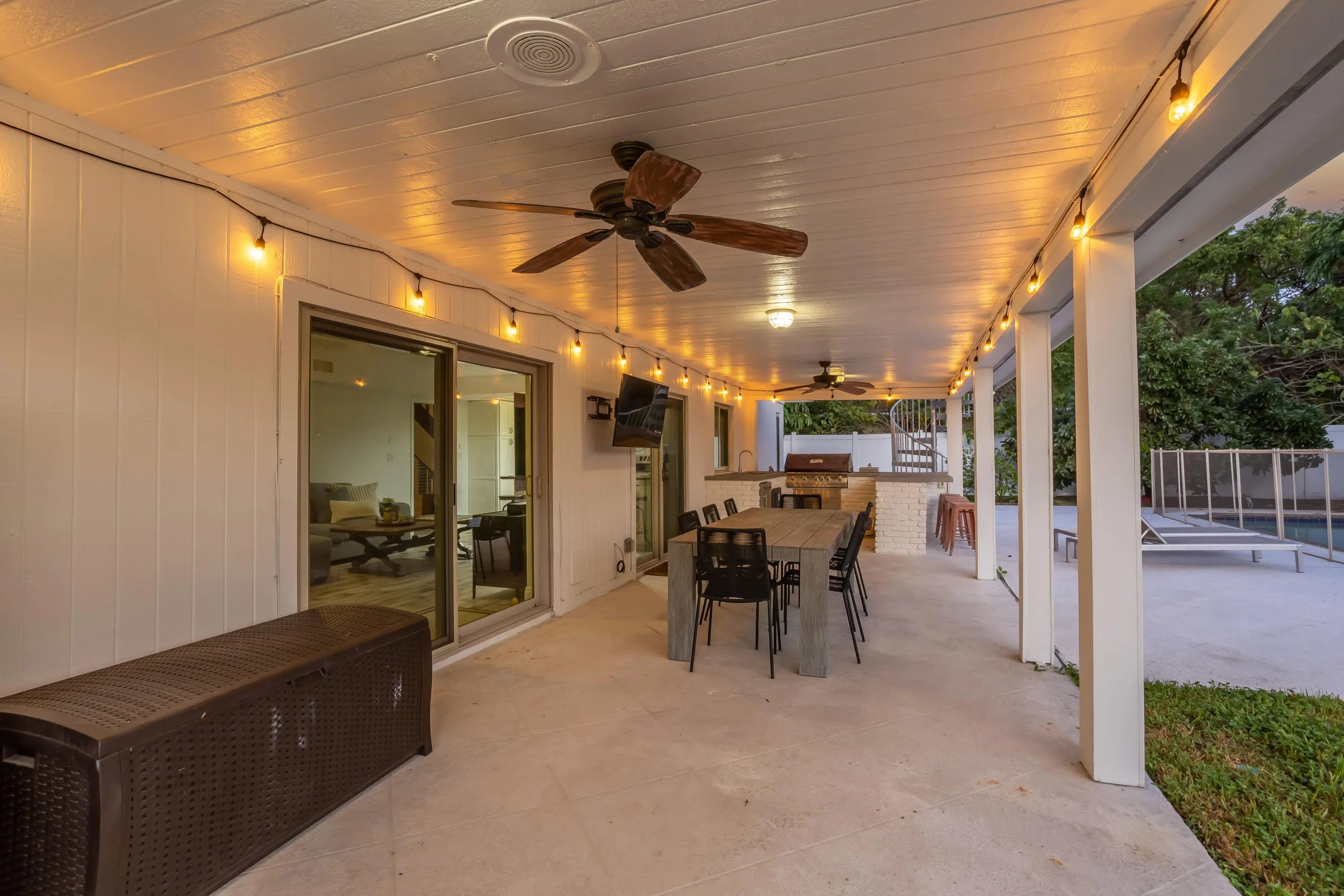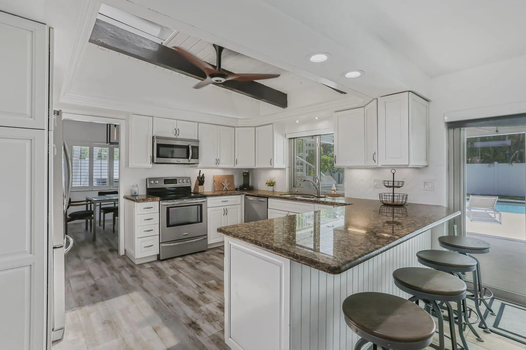Discover this exceptional home in the highly sought-after East Boca's Pinelands North with no HOA. This charming residence features impact windows & doors, plantation shutters ,exquisite exposed wood beams, custom lighting & cozy fireplace The bright natural light kitchen boasts skylights, premium appliances that flows seamlessly into the spacious living perfect for entertaining. The living area opens through sliding glass doors to the private huge backyard outdoor oasis. Upstairs offers a large primary suite with a renovated bath, along with two guest rooms & an updated guest bathroom. Recent upgrades include a new upstairs HVAC (2025), a roof (2018). New deck, an outdoor staircase, & a new pool heater. The backyard has a new fenced large yard, outdoor kitchen, firepit, & lush fruit Tree Walking distance to Boca Raton High school and Boca Middle School, and Across the street from FAU College. Additional features include outdoor security cameras, a WIFI sprinkler system. Located close to pristine beaches, Florida Atlantic University, Mizner Park, and top-rated schools, this home offers the perfect blend of luxury, convenience, and privacy. Whether you're relaxing by the pool, hosting gatherings, or enjoying the serene surroundings, this residence provides a truly elevated lifestyle in one of Boca Raton's most desirable neighborhoods.