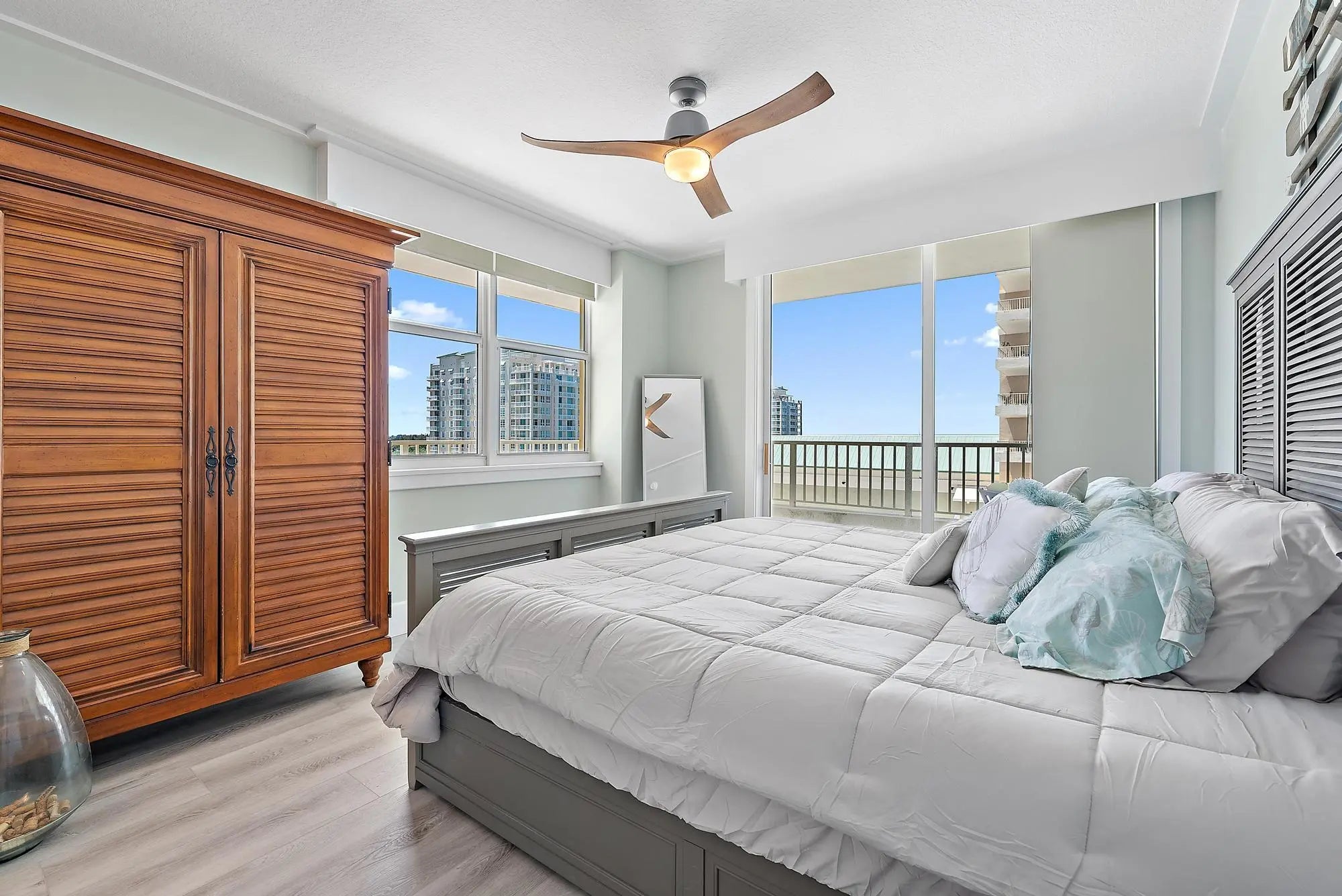 Experience the best of waterfront living in this beautifully updated corner unit located in the highly desirable Marina Village community. This spacious condo features (2) ensuites, (2) side-by-side covered garage parking spaces, perfect for the executive or seasonal lifestyle. Just steps from the marina & (2) popular seafood & bar waterfront restaurants. Location offers unbeatable convenience & coastal charm. 2024/25 renovations throughout the unit, ceramic 36x16 tiled flooring runs through main living areas, while the bedrms offer LVP flooring, thick baseboards, trim & crown molding add a high-end feel, custom ceiling fans & lighting fixtures, the kitchen is designed for both style & function, w/quartz countertops w/waterfall edge, custom cabinetry & matching SS appliances. Freshly painted throughout, all new interior doors with all Emtek high end luxury lockset hardware, custom closets. As a corner unit, it offers an oversized, wraparound covered tiled balcony, ideal for enjoying both sunrises & sunsets with sweeping ocean, Intracoastal, and city views. A/C replaced 2022, water heater replaced 2023. Maintenance fees include water, cable, and Wi-Fi. Marina Village is a true resort-style waterfront community with amenities such as a heated pool and spa, state-of-the-art fitness center, steam room, movie theater, billiards room, community lounge, and business center.