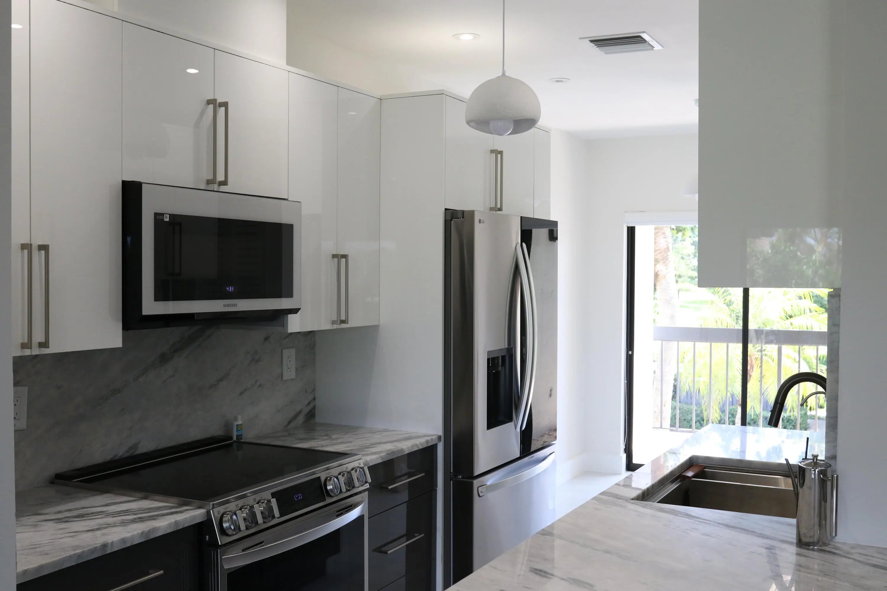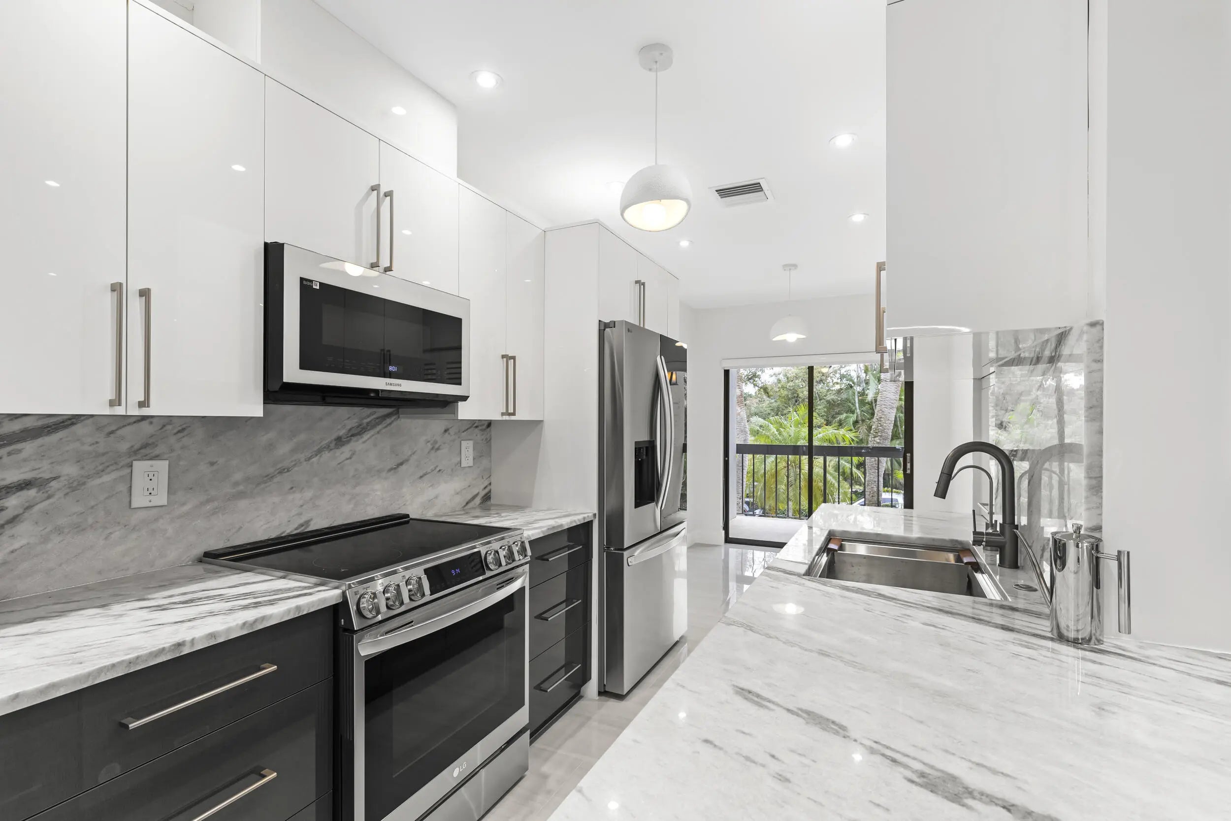 Fully Remodeled Condo. Bathroom extended across the hall way to give you the ultimate luxury experience. Enjoy two walk in closets off the master room, custom and frosted glass extensions, marble counters and two balcony breakfast spots. If that isn't enough for you enjoy the full wet bar with waterfall edges and pop up electrical sockets. Custom cabinetry and electric fireplaces. This home is designed like nothing else in the incredible polo club, across from the lovely gym and tennis courts.