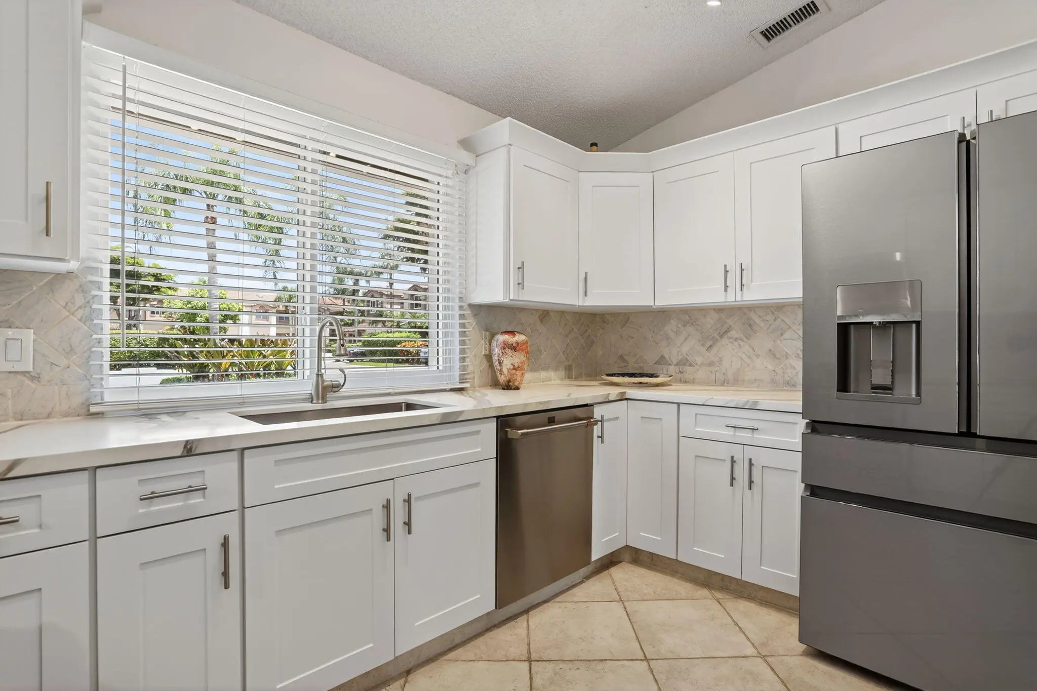WATERFRONT LUXURY! Rarely available 3BR/3BA CORNER Townhome w/garage on a PREMIUM LAKEFRONT lot in prestigious Cortina at Boca Pointe. Renovated with elegance and style--featuring an open-concept kitchen with custom quartz countertops, white shaker cabinetry, GE Café appliances, wonderful breakfast nook, impact windows throughout & an enclosed A/C lanai with sweeping water views. Designer-updated baths, new large-capacity W/D, Freshly epoxied garage floor. Immaculately maintained with a neutral palette to suit any décor. Select furnishings negotiable. Manned- gated community in prime central Boca near top schools, fine dining, shoppes, beaches, more! Walk to Community Pool. Sought after Boca Pointe offers an Optional club membership available. DON'T MISS! Schedule your Tour Today!