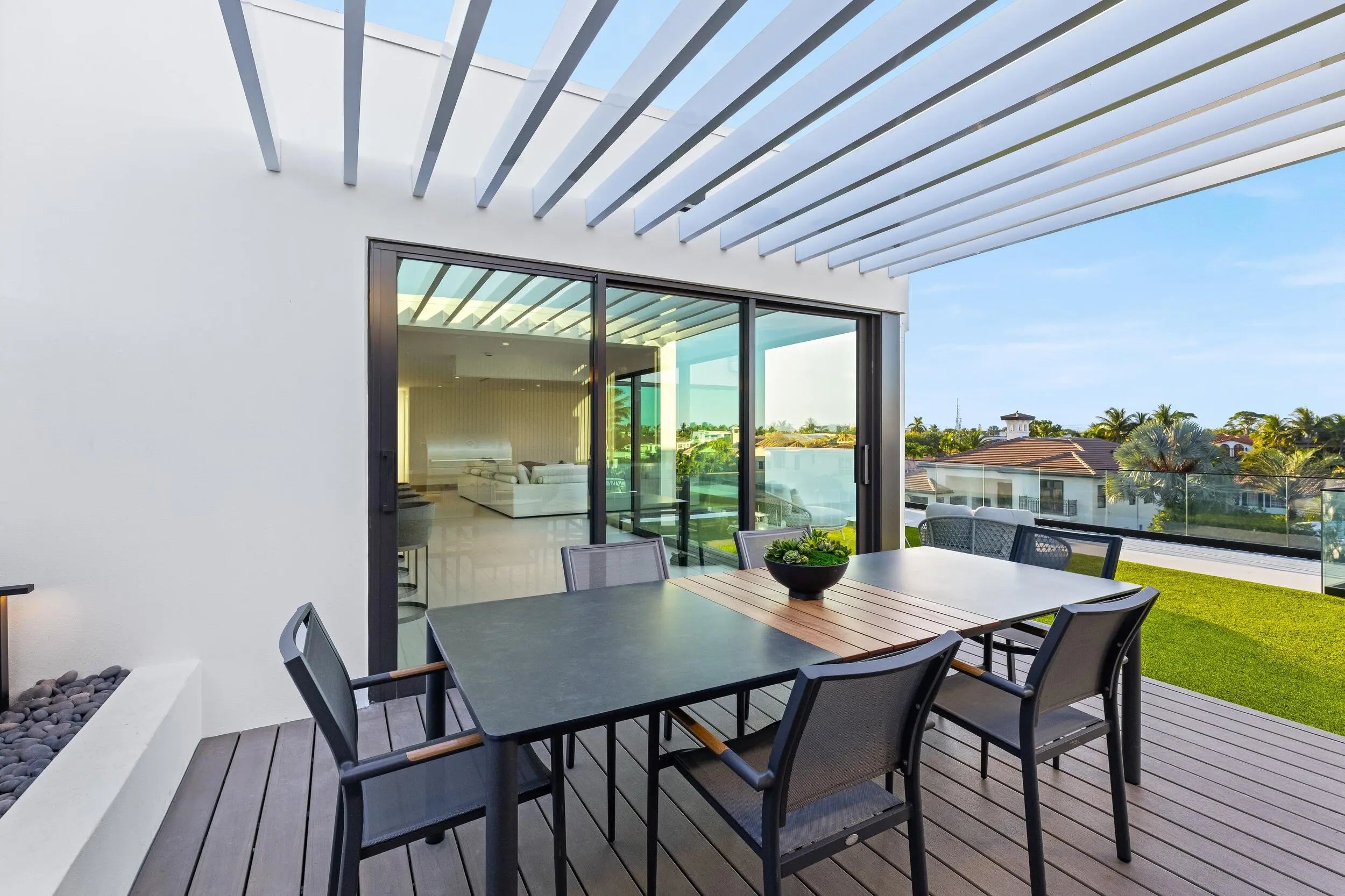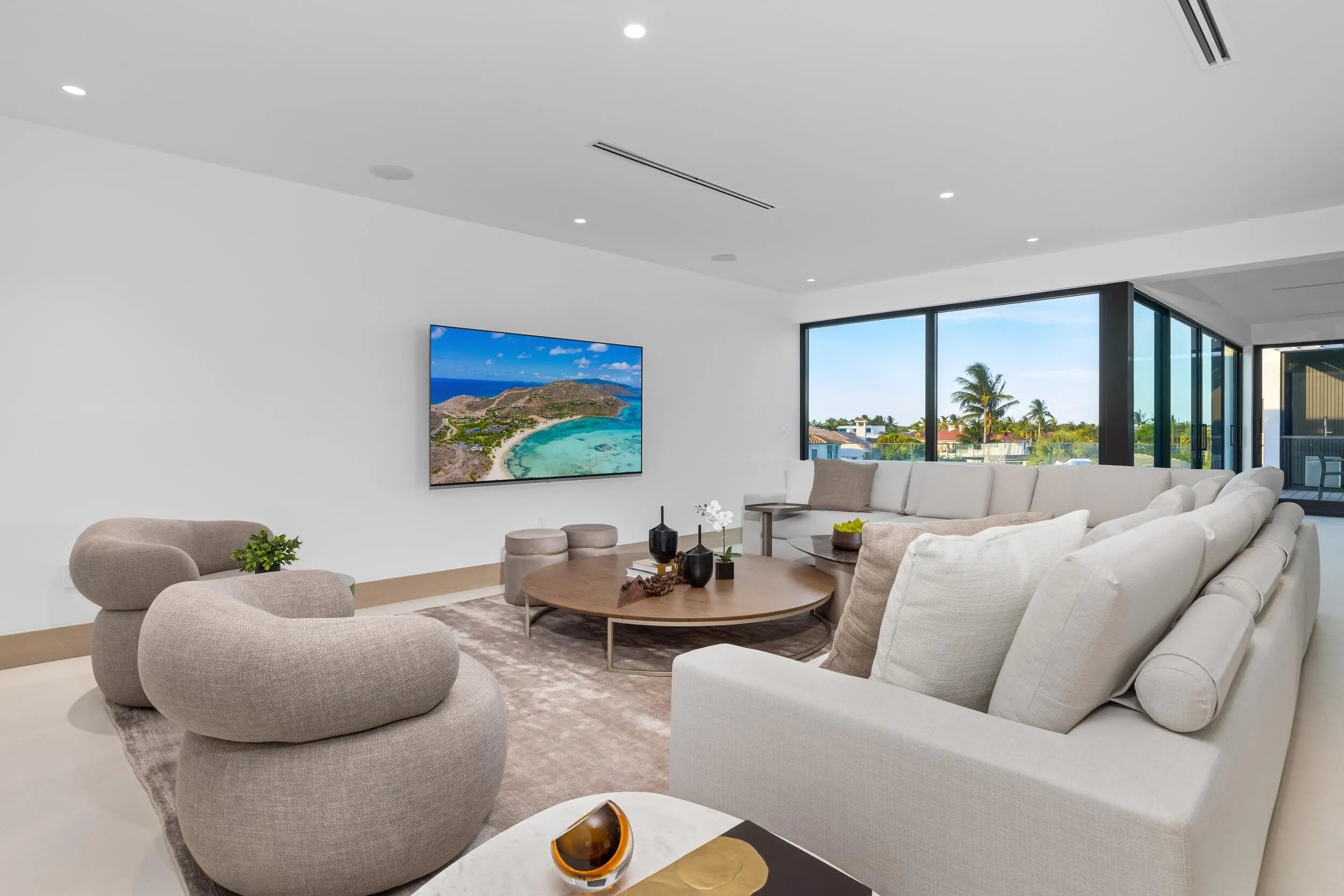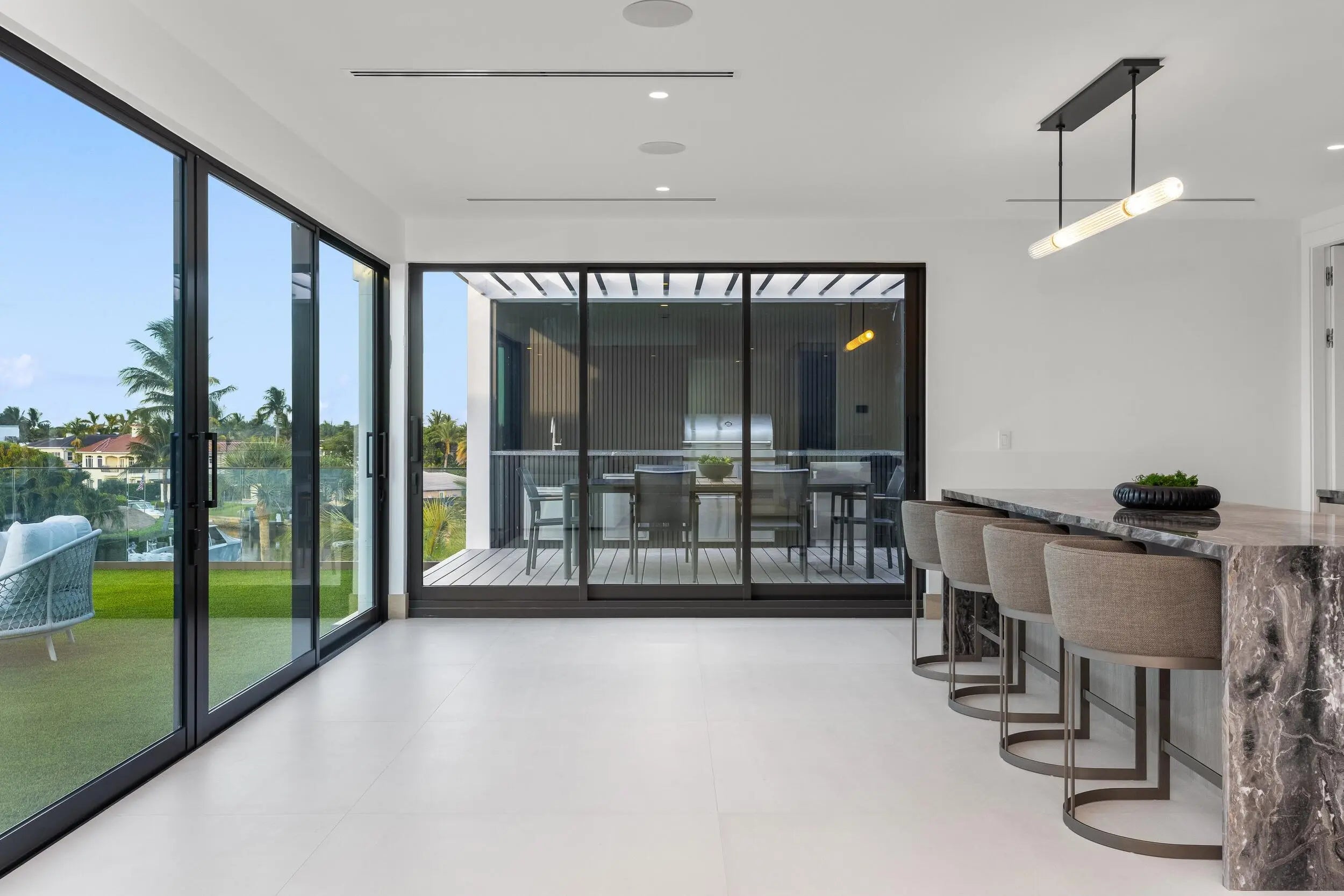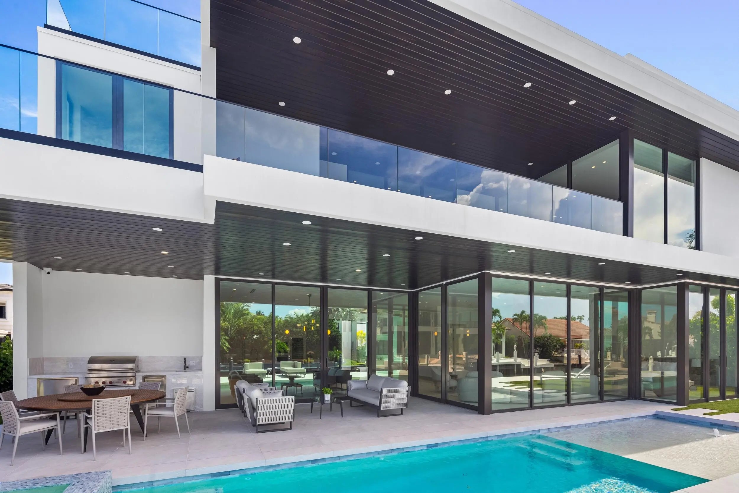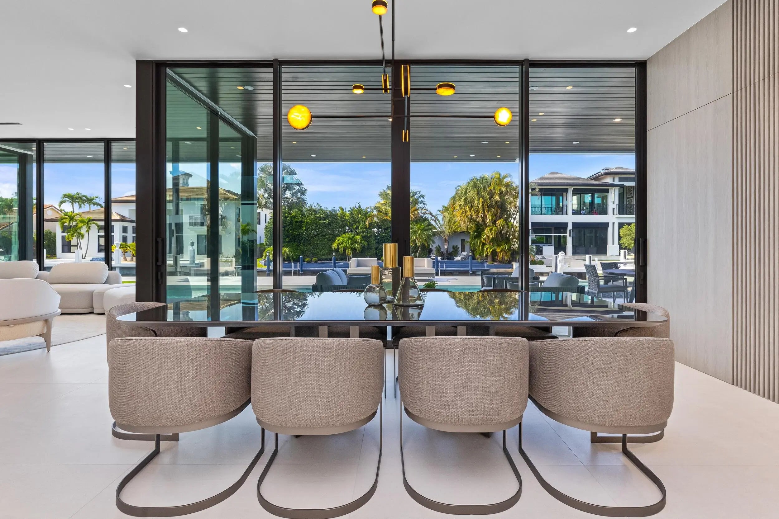 Exceptional Value - just reduced by $750,000.00. Brilliantly staged in Boca Raton's prestigious Golden Harbour enclave, this newly completed three-story estate by Empire Development redefines luxury waterfront living. Encompassing nearly 10,000 square feet of indoor-outdoor living space within a secure, gated setting, this architectural triumph showcases Empire's signature originality. From world-class finishes to unmatched amenities and a coveted location, every detail of this designer residence embodies modern elegance at its finest. Now complete and ready for its discerning owner, 541 Golden Harbour Drive is a newly unveiled masterpiece offering an unparalleled living experience defined by exceptional scale, masterful detail, and timeless luxury. Set on an expansive 85-foot waterfront lot just minutes from Lake Boca, with no fixed bridges, this residence is a haven for yachting enthusiasts and connoisseurs of waterfront living. Spanning 7,898 square feet of refined interiors and 9,169 total square feet across three elevator-accessible levels, this rare three-story estate is bathed in natural light and showcases sweeping views of the water and skyline. Each level unveils a new layer of luxury, culminating in a one-of-a-kind third floor, a blank canvas for creativity, wellness, or private retreat. The home's design blends contemporary elegance with functional sophistication. Towering 32-foot glass walls welcome you into a soaring foyer, offering a dramatic sense of arrival. Throughout the residence, glass expanses blur the line between indoors and out, framing lush tropical landscaping and tranquil water vistas. With five bedrooms, seven full bathrooms and two powder rooms, the estate features a palatial 1,500-square-foot primary suite that redefines indulgence. Dual spa-inspired bathrooms and spacious walk-in closets complete the sanctuary. The chef's kitchen is a showcase of exquisite craftsmanship, fitted with custom stonework, sleek cabinetry, and top-of-the-line Wolf and Sub-Zero appliances. A hidden secondary kitchen and laundry room are discreetly tucked behind matching millwork, enhancing both beauty and functionality. Every surface and material has been meticulously curated. Oversized 4' x 4' Italian porcelain tile defines the main level, while a sculptural floating staircase in white oak leads to upper floors adorned in the same rich wood tones, seamlessly tying the living spaces together. Outdoors, a resort-style pool and spa provide the perfect backdrop for relaxation and entertaining. The three-car garage, with hurricane-rated glass doors and high ceilings, accommodates up to six vehicles with the addition of lifts. Located in Boca Raton's coveted Golden Harbour community, residents enjoy easy access to South Florida's most exclusive amenities, including beaches, golf courses, Red Reef Park, and the world-renowned Boca Raton Resort & Beach Club. Nearby Mizner Park and Royal Palm Place offer fine dining, upscale shopping, and cultural destinations. This is more than a home, it is Empire Development's latest triumph in architectural artistry and a rare opportunity to own a statement of contemporary coastal luxury.