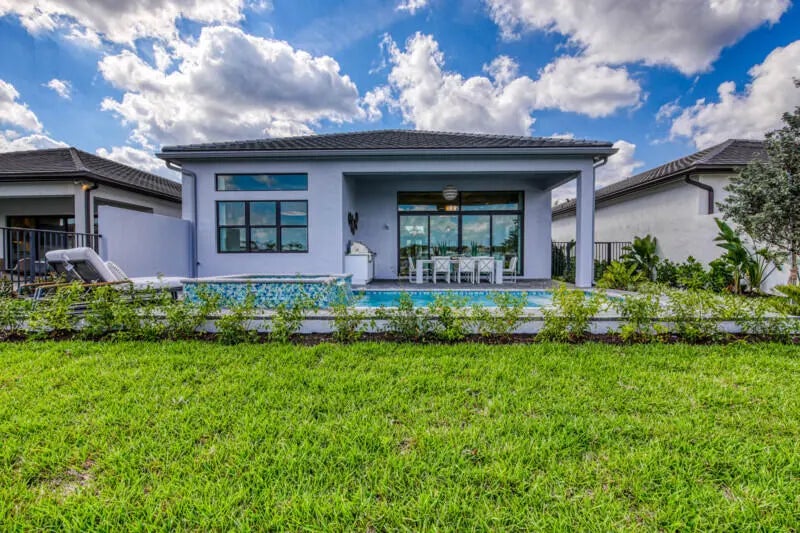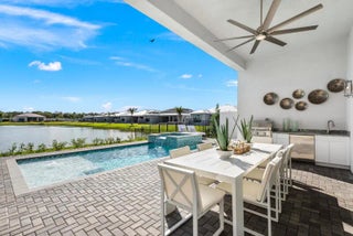 Rare opportunity to own the highly sought-after, designer curated fully furnished Venice Builder Model—luxury, location, and design in one. Situated on a premium lakefront lot w/ heated pool, spa, sun shelf, & summer kitchen. Features incl. a gourmet kitchen w/ oversized island, soaring ceilings, custom closets, designer window treatments, large-format porcelain tile+more. 3 Generous Bedrms, Plus Den/Office, Large Great Room, 3½ Baths, Split 3-Car Garage, Heated Pool. Enjoy your private oasis+world-class amenities: full-service restaurant, 44,000 sq. ft. clubhouse with spa/salon, indoor/outdoor bar, indoor pickleball, tennis, multiple pools, & more. Closing cost incentives may apply-subject to change. Est delivery: 2nd quarter of 2026.