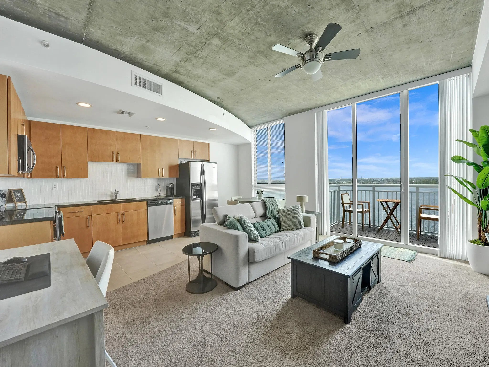 Breathtaking views of Clear Lake from this 10th floor 1/1 condo! With a modern industrial design, this fully furnished condo offers 10ft high ceilings, floor to ceiling impact windows, in-unit laundry & a fully appointed kitchen w/ granite counters, stainless appliances, & wooden cabinets. In addition to enjoying gorgeous sunsets from your private balcony, the building has a community pool & spa, pool deck & grills, game room, fitness room, business center, private gated garage, security, & a 24/7 manned lobby. Walking distance to the intracoastal, Rosemary Square, the Kravis Center, Flagler Drive, & numerous shops & restaurants. Easy access to the Palm Beach International Airport, Brightline, Tri-Rail, & all major roadways. Come experience the city lifestyle in downtown West Palm Beach!