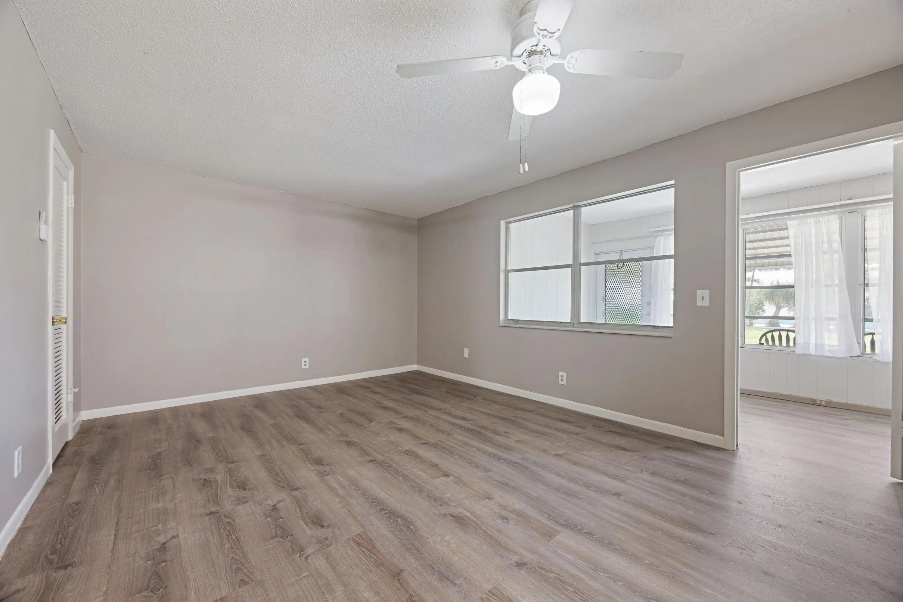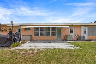 Spacious villa-style condo in High Point Section 3 of Boynton Beach. Freshly painted interior & exterior, 1-bedroom, 1.5-bathroom unit features newer laminate flooring throughout. Bright kitchen with stainless steel appliances. Beautiful built-ins on the dining room wall create a showcase feature wall sure to be the focus of the living areas. Bedroom offers 2 oversized closets plus a hall closet for storage needs Convenient half bath when company visits. Full hurricane protection plus a hurricane rated door. Enclosed lanai can be used as office space and large open patio with plenty of greenspace to enjoy the outdoors. Laundry room is adjacent to the unit.