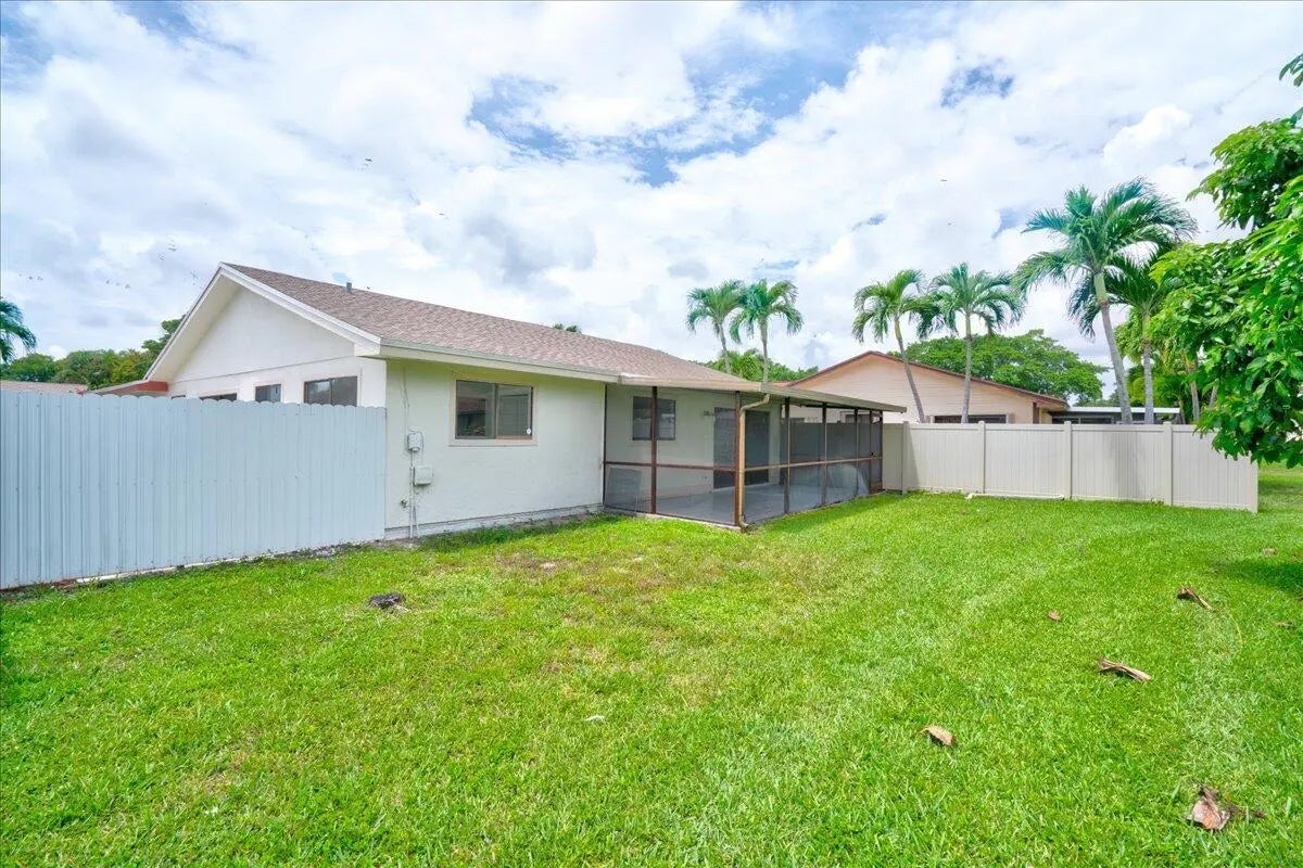 SINGLE FAMILY HOME 4-bed, 2-bath, 2-car garage located in the all-ages and desirable Boynton Lakes community. This bright and spacious home features an open floor plan, a new roof (installed in 2024), and a screened patio and porch perfect for relaxing or entertaining. The newly renovated kitchen and bathrooms showcase modern cabinets and elegant quartz countertops. The primary suite offers a walk-in closet, en-suite bath, private patio, and its own private entrance. Ideally situated near Congress Ave, shops, and restaurants, with convenient access to I-95. Community amenities include a pool, clubhouse, and walking trails. SELLER FINANCING AVAILABLE!