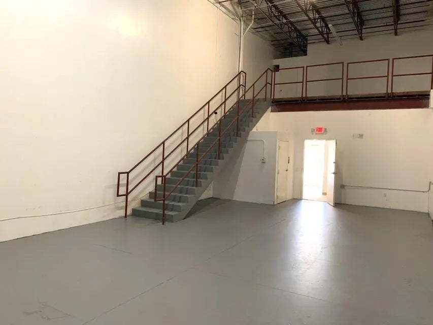 ONE OF A KIND OPPORTUNITY. 1300 SQUARE FEET, IN AN INDUSTRIAL PARK, LOCATED OFF BELVEDERE ROAD! ELEGANT ENTRANCE AND HUGE INDUSTRIAL OVERHEAD DOOR, CEILING HEIGHT OVER 20 FEET PLUS , STIARWAY TO A 20 FEET X 13 LOFT! LOBBY IS 17X11 WITH OUTLETS, CABLE READY, 10 FOOT CEILINGS, 2 SEPARATE OFFICES, 11X10, TILED AND 9X6, , ALL AIR CONDITIONED! PARKING FOR 3 CARS, PLUS GUESTS . INCLUDES WATER AND SEWER , and Hoa Fees. 2 FULL 1/2 BATH!s