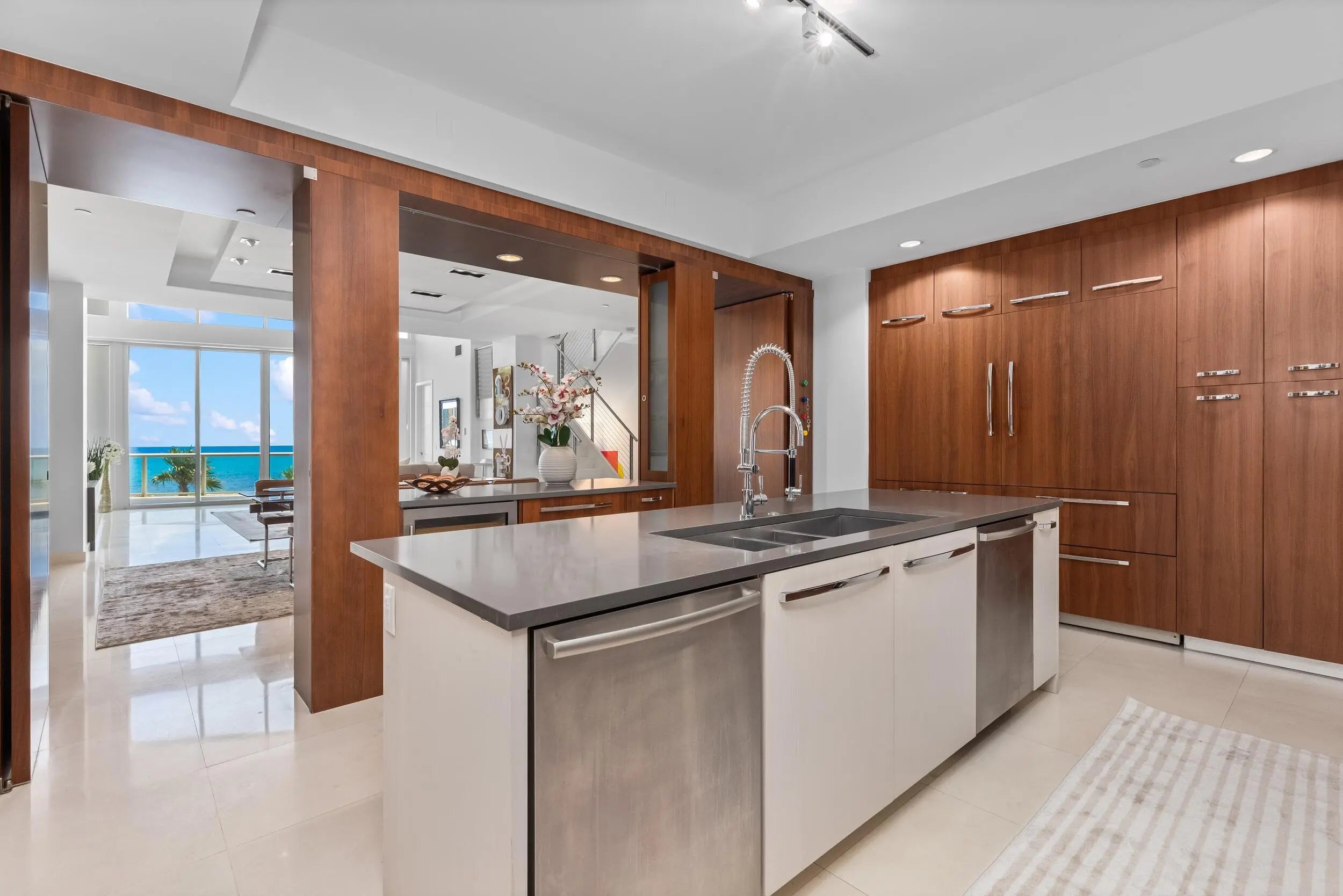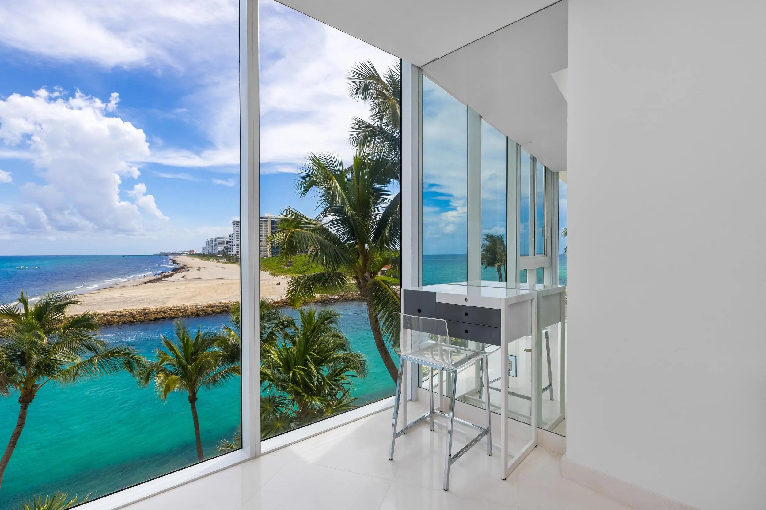 Set within the prestigious One Thousand Ocean, Beach Villa 103 is a true generational offering—an irreplaceable, two-level condominium whose rarity and distinction place it in a class of its own, unmatched both within the building and along the entirety of Boca Raton's oceanfront. As you step inside, you're greeted by dramatic ceiling heights and an infusion of natural light that flows effortlessly throughout the home, accentuating its sleek, modern aesthetic and amplifying the spacious ambiance. Thoughtfully designed with a seamless, open-concept layout and desirable southeast oceanfront orientation, this singular property captures expansive, tranquil views of the Boca Raton inlet and the Atlantic Ocean, offering a daily display of natural beauty that defines elevated coastal living. Spanning two levels, the home features four spacious bedrooms, complemented by six full baths and a powder room, each appointed with sophisticated finishes, as well as a full den which can be easily converted to a 5th bedroom. A unique private in-residence elevator serves both levels of the home and offers direct access to the garage, ensuring unparalleled privacy and effortless convenience. Four bedrooms are oceanfront private retreats, filled with light and designed to maximize comfort while showcasing the surrounding scenery. At the core of the home is the designer kitchen, where high-performance appliances, custom cabinetry, and streamlined details converge. From here, the kitchen flows seamlessly into the dining and family areas, creating a harmonious setting equally suited for sophisticated entertaining or the effortless enjoyment of everyday life. Expansive oceanfront terraces, one on each floor, provide curated outdoor living spaces, including a private plunge pool and a dedicated dining area, perfect for unwinding or hosting in an al fresco setting. A private cabana is available for purchase separately. Designed by world-renowned architects Garcia Stromberg, One Thousand Ocean stands as a symbol of timeless luxury and architectural excellence. Residents benefit from exclusive amenities such as 24-hour security and valet, along with the convenience of a private two-car garage and personal storage.