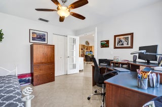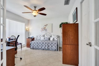 Come see this lovely three bedroom, two bathroom home in the all-age community of Boca Woods Country Club. From the moment you enter, you will feel the space and openness...there are cathedral ceilings in the main living area and the kitchen wall has been taken down - the island makes entertaining so easy. Stainless steel appliances and plenty of cabinets. The kitchen and bathrooms were renovated several years ago and they still look great. You will love the amazing primary bathroom with the added linen closet. For continuity, ceramic tile has been used throughout the house. The washer and dryer area has been enclosed and a laundry room was created where there is also an extra refrigerator. And there are no rear neighbors - just a beautiful view of the 6th green of the Lakes course. Membership is mandatory and allows you to enjoy the beautiful newly renovated clubhouse, two fabulous golf courses, Har-Tru tennis courts, state-of-the-art fitness center and spa (including nail and hair salon), Bocce ball, pickleball and fine dining in the clubhouse.